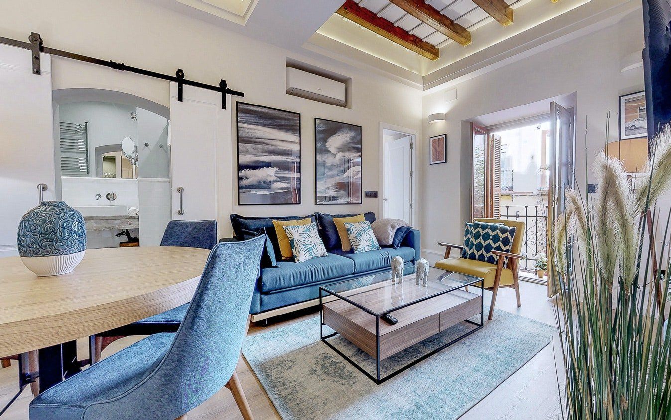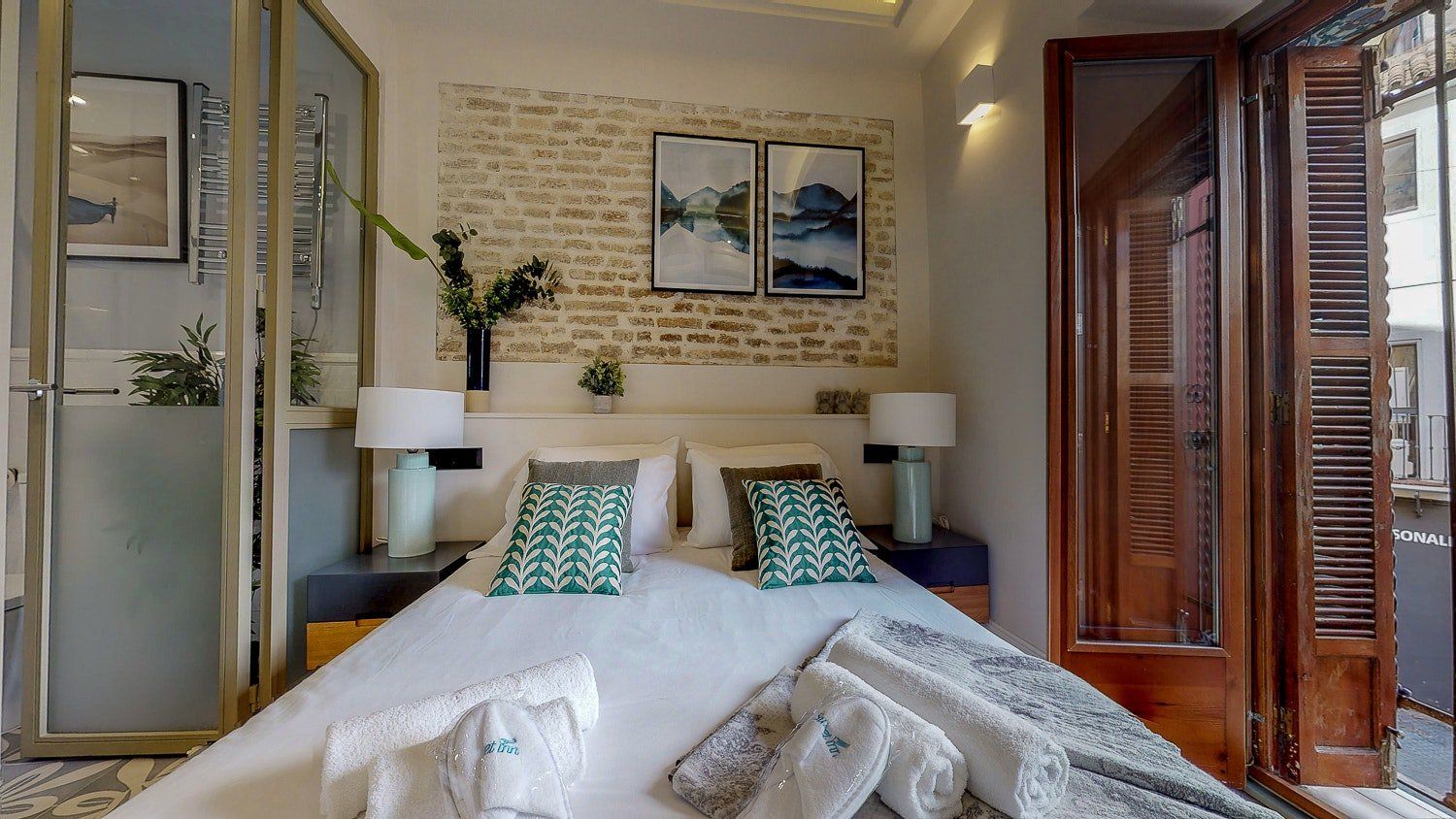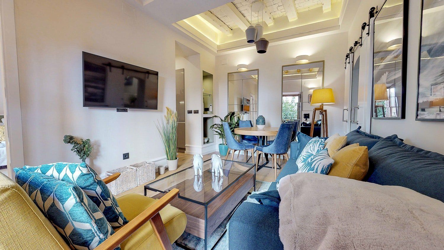 Slip effortlessly into the authentic Sevillian way of life during your stay at this beautiful home. Nestled in the heart of Seville’s trendy Alameda district, you’ll be surrounded by cultural goodies, artisan stores and eateries serving up the city’s most sumptuous classics. Inside the home, wonderful splashes of colour add to a sense of vibrancy that perfectly matches the city outside. Open up the wooden shutters to the charming Juliet balcony in the living room, and you’ll be treated to lovely views of traditional Sevillian streets. Of course, if you’d prefer to relax and recline from the comfort of your bed, each bedroom also features its very own set of French doors and Juliet balcony. When you’re ready to get your culture fix, you’re just a five-minute walk from the Alameda de Hercules square and only ten minutes from the Basilica of Jesus del Gran Poder.