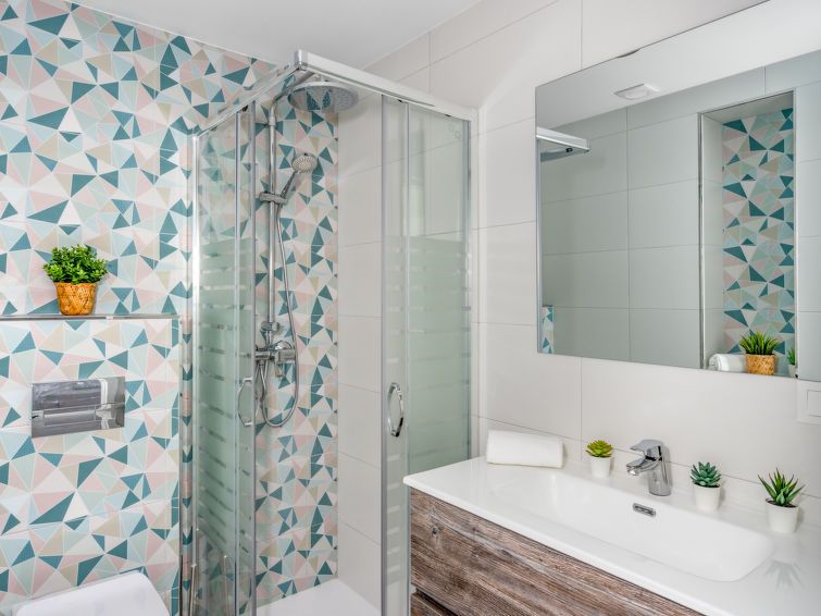 "Eurosol", 2-room apartment 46 m2. Object suitable for 2 adults + 2 children. Fully renovated in 2024, modern and tasteful furnishings: living/dining room with 1 sofabed (135 cm), satellite TV (flat screen), air conditioning and forced-air heating. 1 double bedroom with 1 french bed (135 cm).