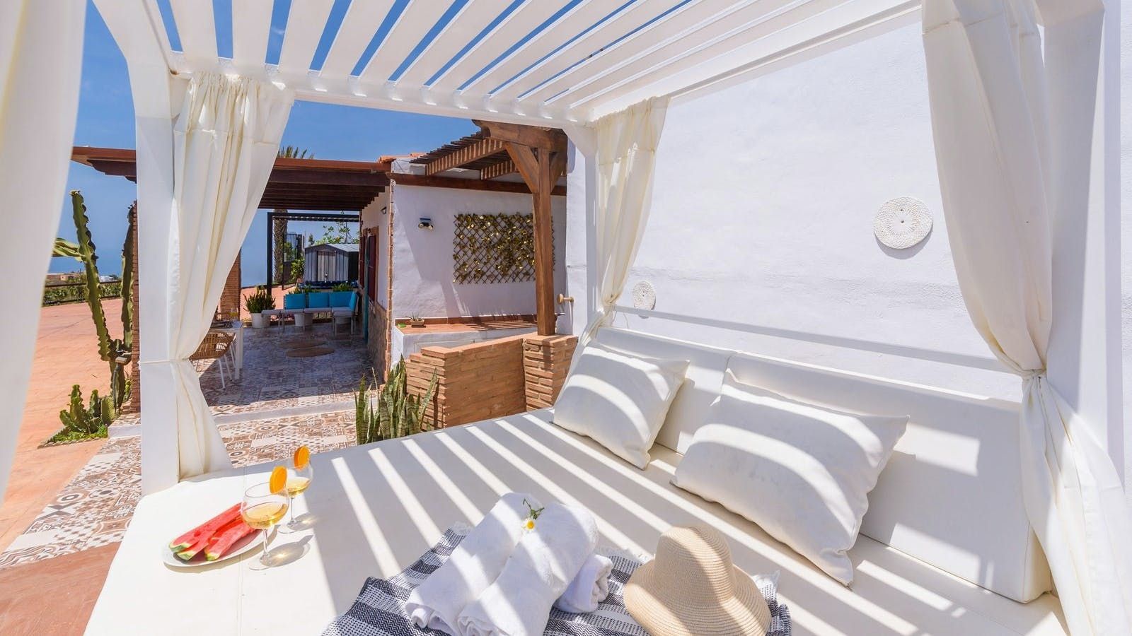 Gaze out at the blue of the sea and the rugged slopes surrounding it from your panoramic patio. This is where you’ll want to spend sun up till sun down, soaking up the rays from the loungers and plunge pool or enjoying some shaded reading from the comfort of the Balinese bed. Evenings call for alfresco barbecue meals to be enjoyed as the light fades over the horizon, while nothing says holiday bliss like ending the night with a starlit soak in the hot tub.