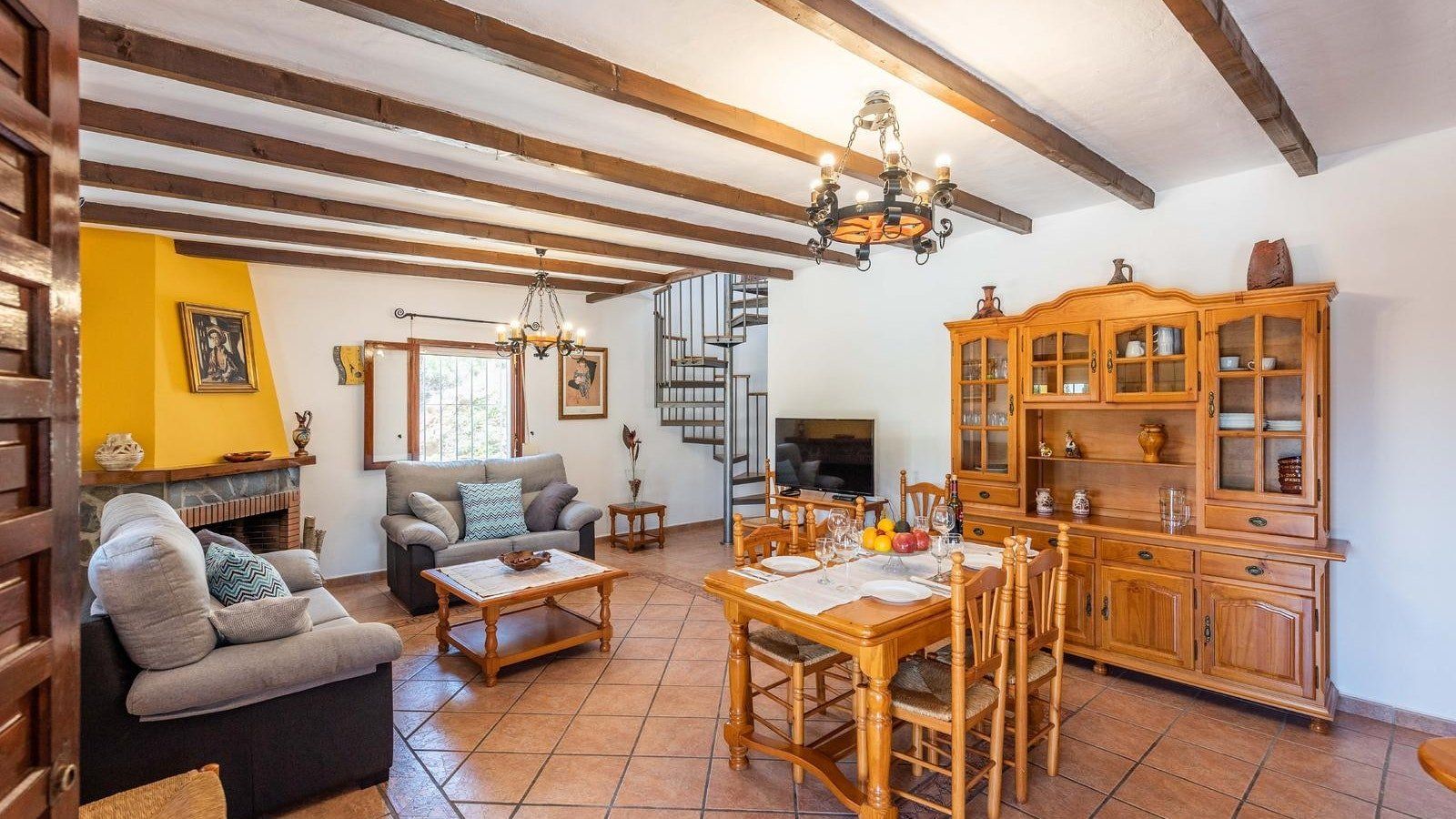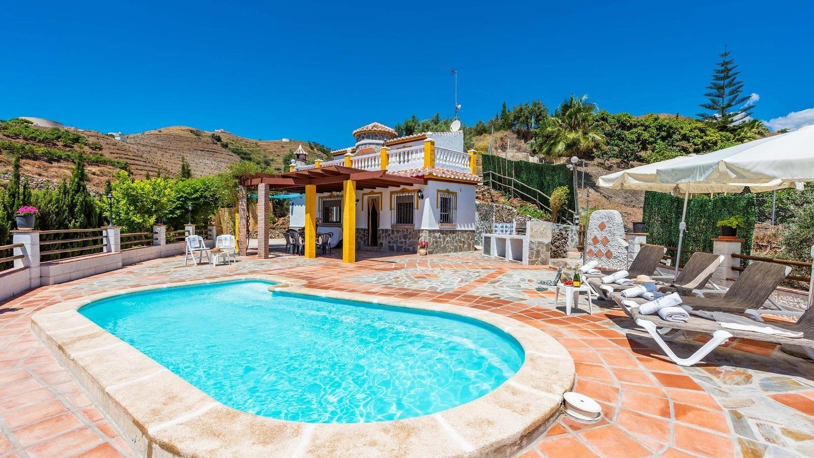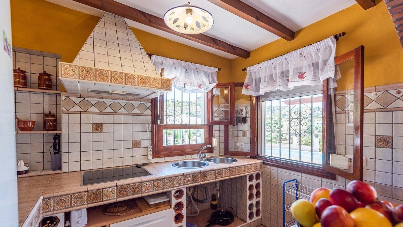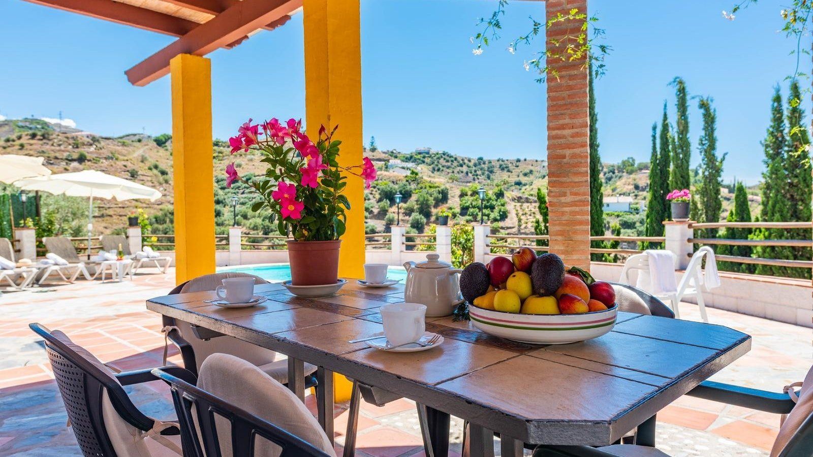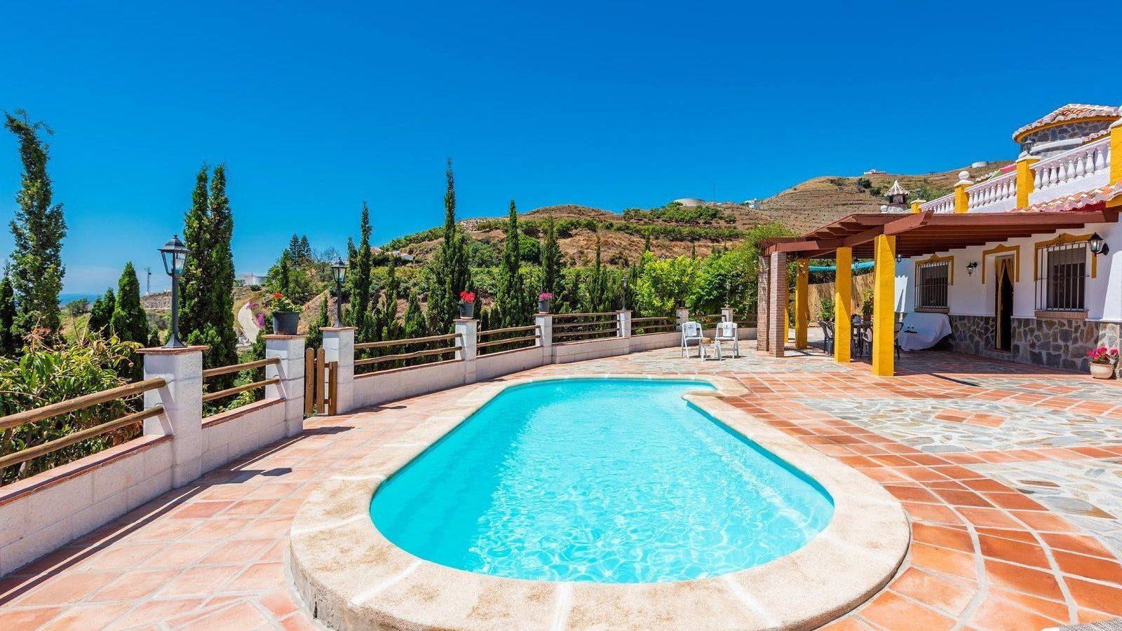 This charming villa is in perfect harmony with its surroundings – situated high in the Torrox hills, this characterful house sits amongst organic orchards and vineyards. Situated down a private rural track, you’ll experience unrivalled privacy in this impressive home adorned with stone mosaic and vibrant yellow pillars.