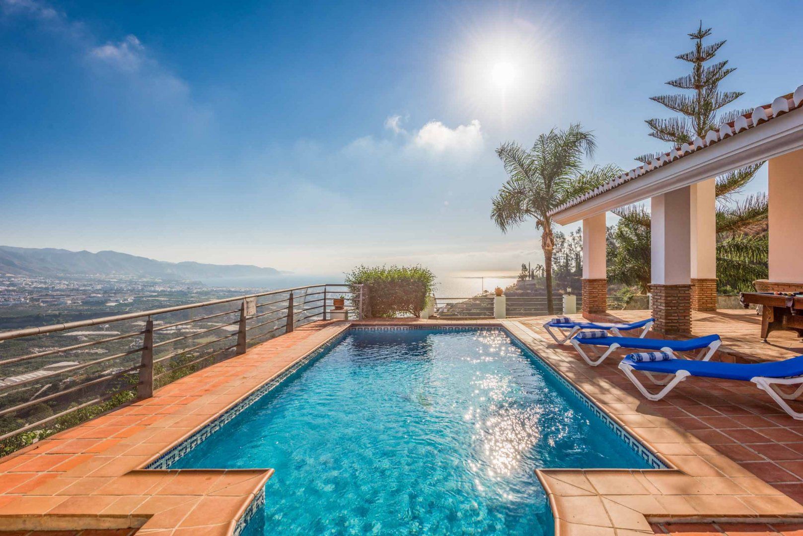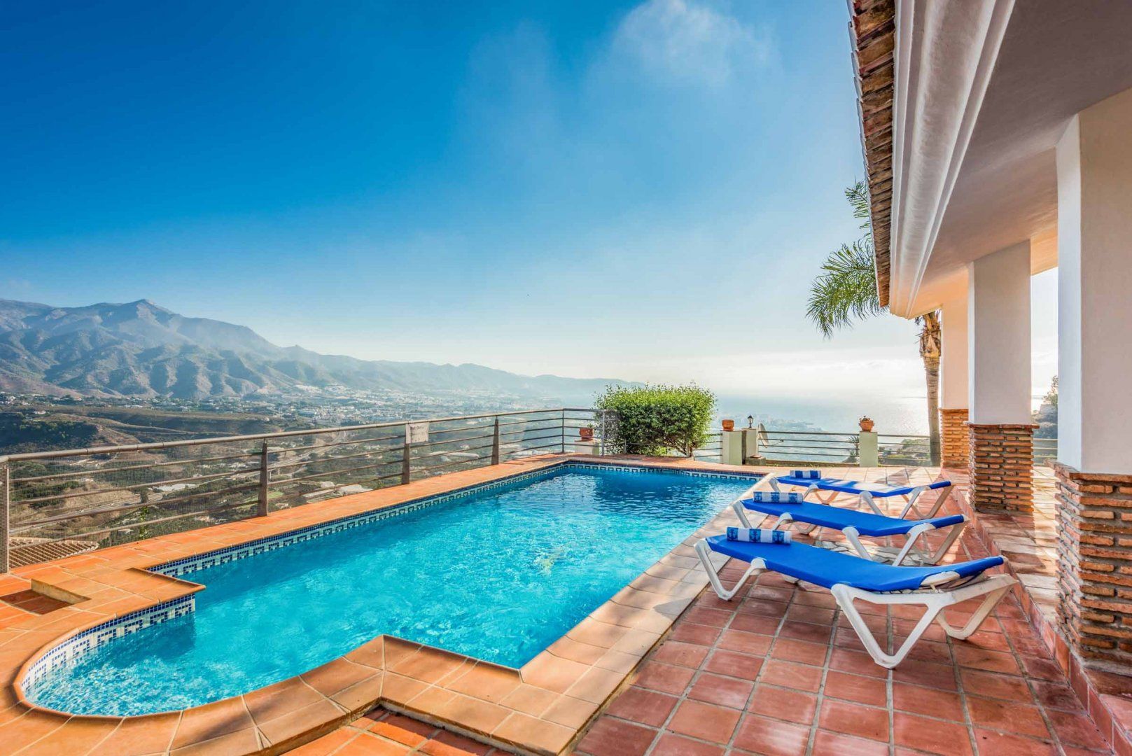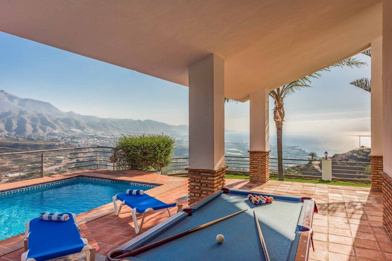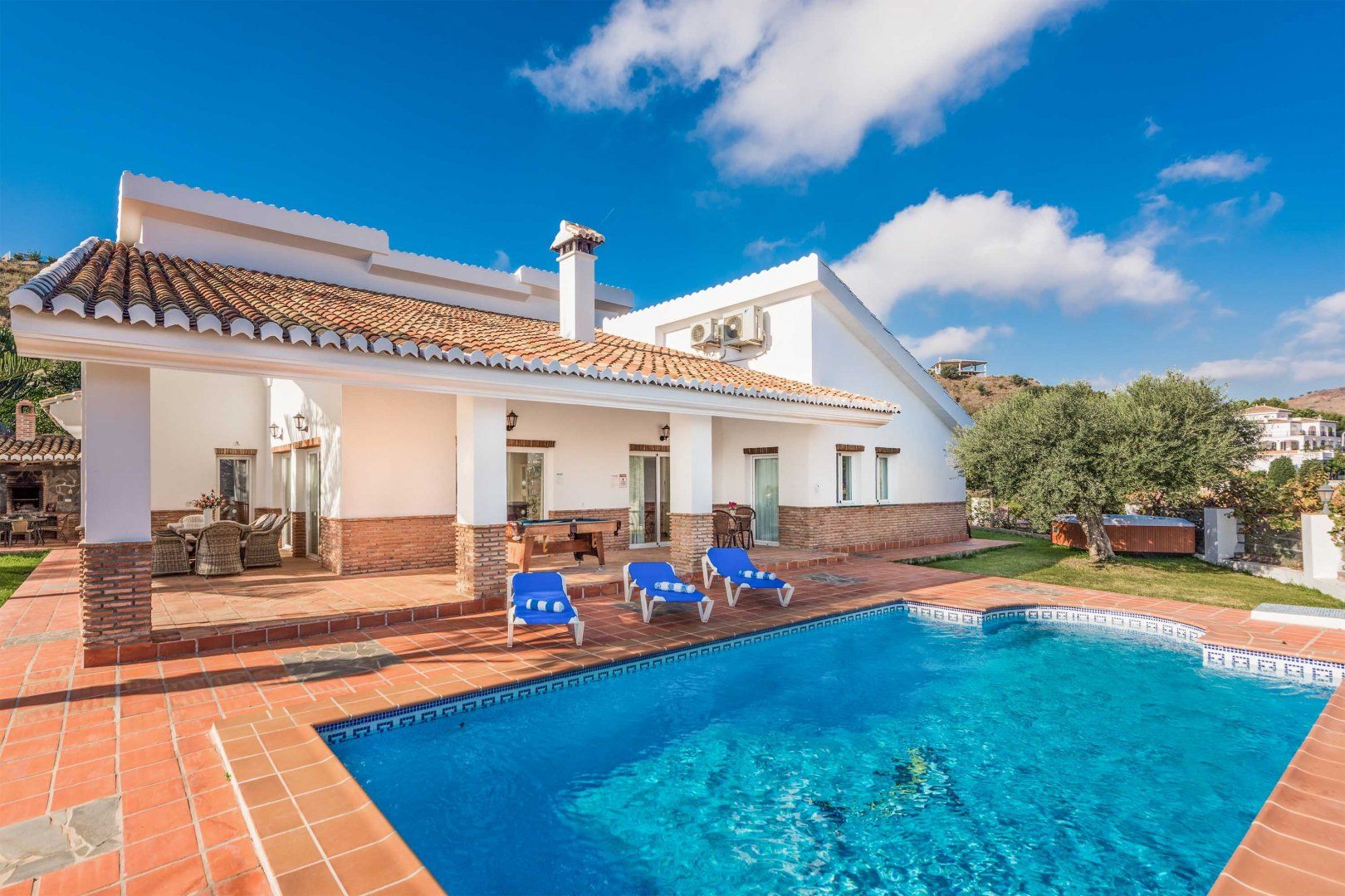 Just outside of Nerja, this stylish villa stands in an elevated position overlooking the beautiful countryside and coastline. High up in the hills, this home is located along a steep dirt track, so you’ll need a car to get in and out. If you ask us, it’s worth it for the views. Spectacular scenery can be admired from the private pool, terrace and hot tub, creating a sense of seclusion. There’s a lawned area and a pool table too, which are welcome additions if you’re travelling with children or teenagers.