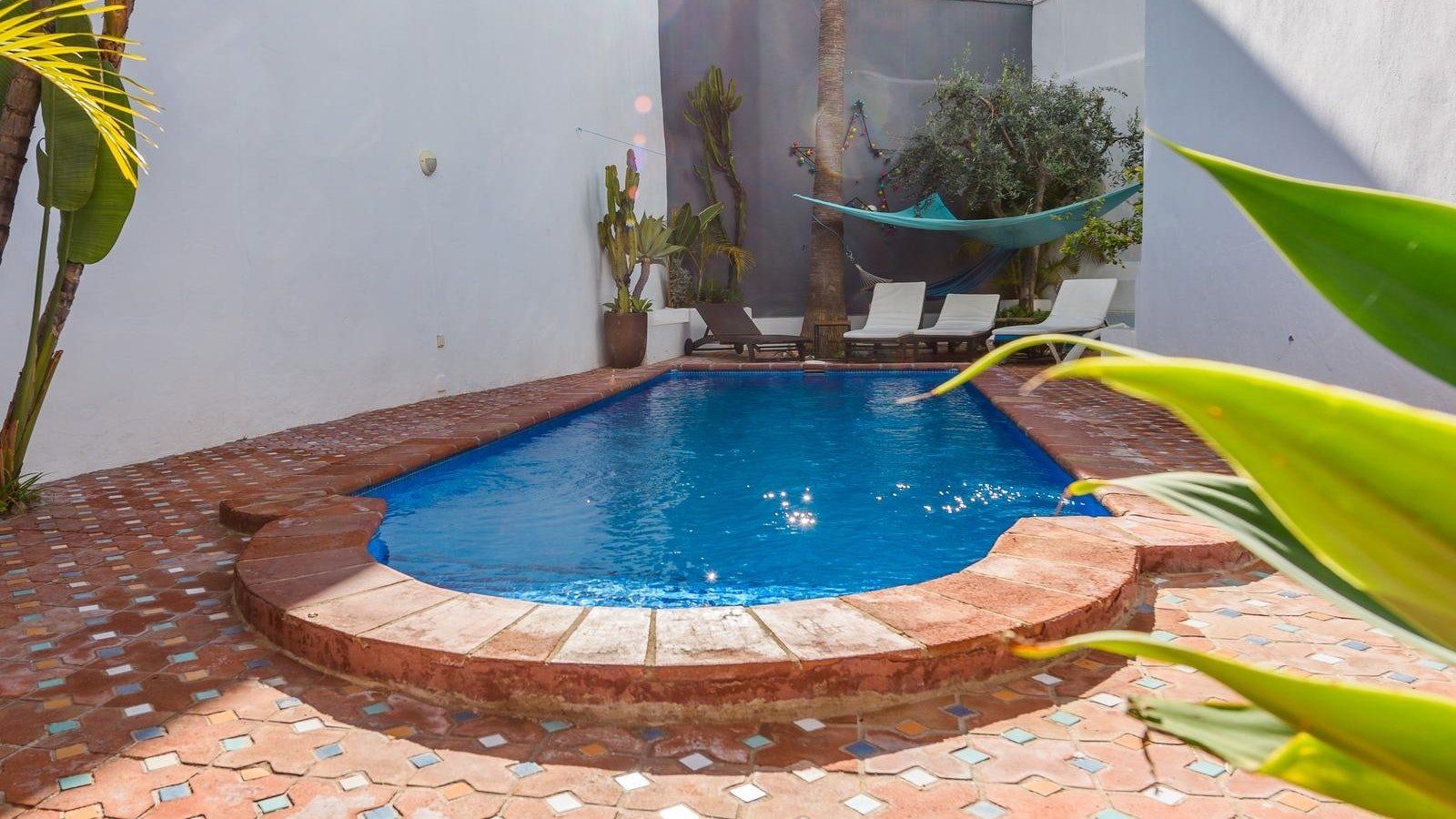 A palm-fringed and terracotta-tiled courtyard with a glorious pool is the star of the show. Not only is there an intimate outdoor dining area close to the house, but at the far end, you'll find several sun loungers, a built-in brick barbecue and a couple of hammocks for indulgent afternoon naps.