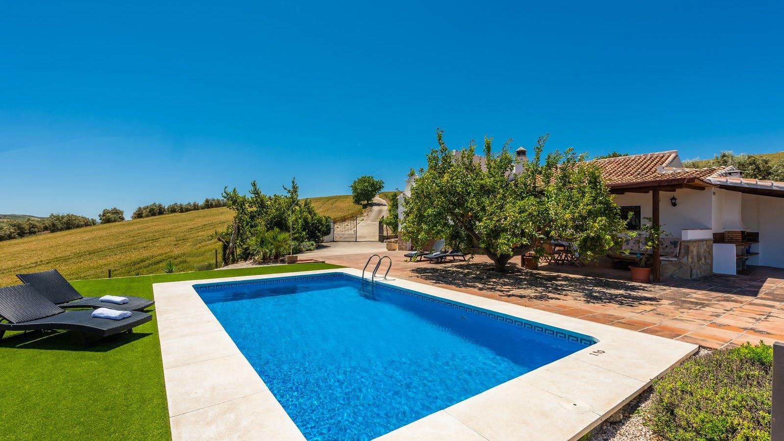 As a true Andalusian farmhouse, this home flaunts its traditional vaulted ceilings and rustic interior design. Wander over the terracotta tiles into your living room and pick a book from the shelf. We think that mornings were made for lazing around your private pool, but your garden gives you scenic views at every hour of the day. If you're planning to stay here in the colder months, why not sip horchata with your loved ones during a fire-lit movie night?