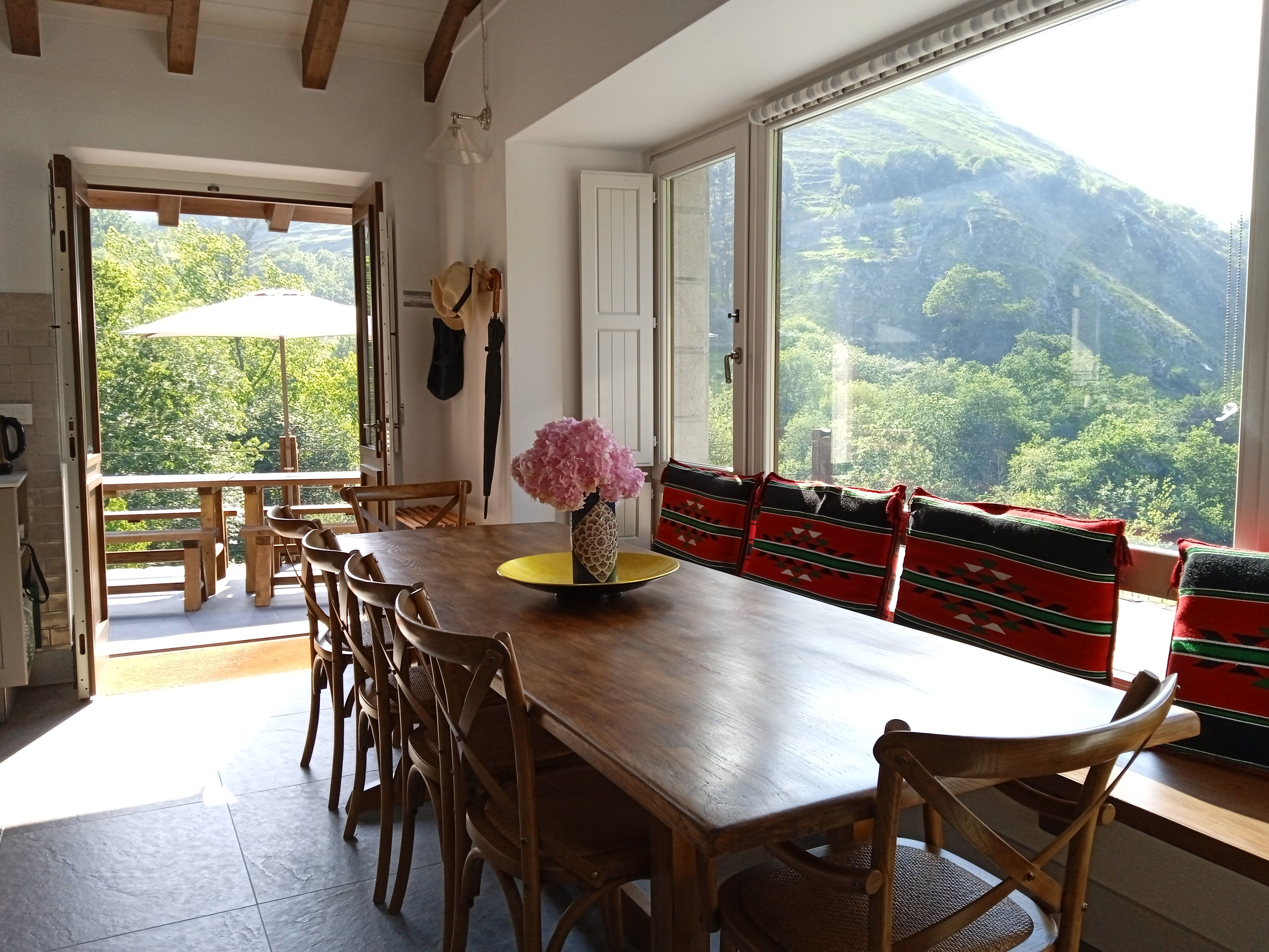 Nestled in the foothills of the Picos de Europa mountains, this rural retreat offers views in every direction. The setting is the definition of idyllic – a panoramic terrace is perfect for alfresco dining, a small pathway in the garden leads to the River Zardon, and clear skies make stargazing a breeze. You'll also find a six-person outdoor sauna and a cosy living space for indoor hangouts. Location-wise, it's just a thirty-minute drive to the beaches of Vega, Niembru, and Torimbia. Cangas de Onis and the famous Sunday Market are driveable in twenty – though if you prefer to stay home, soaking up the scenery, we don't blame you.