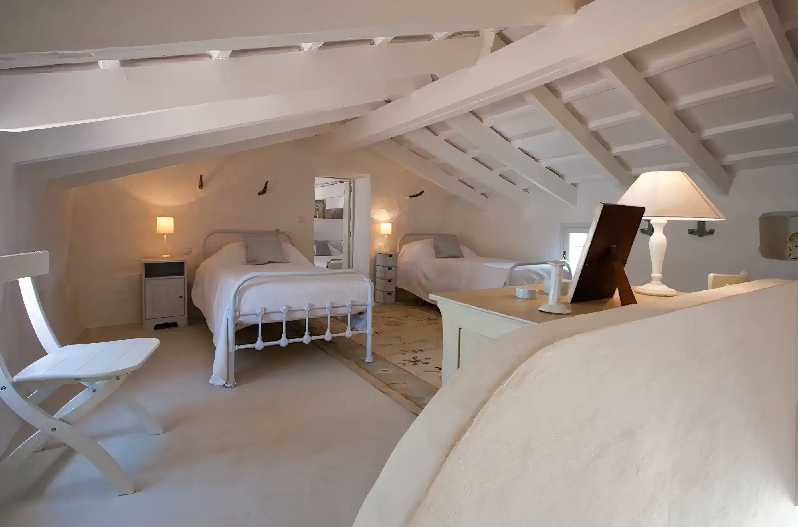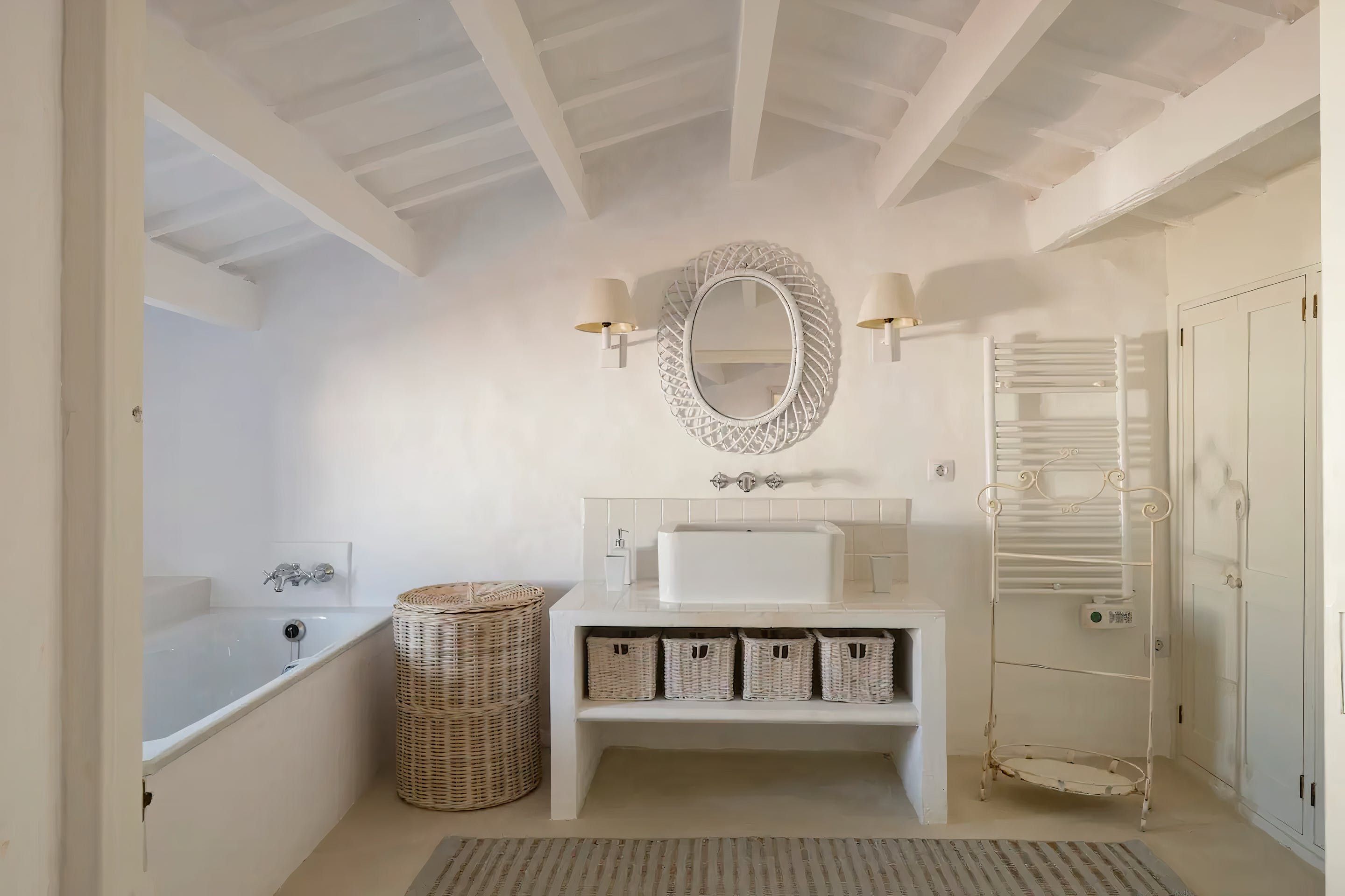 By day you can swim in the pool or play on the private tennis court, explore the land or head to the nearby town – just seven minutes away by car – for lunch. Just a fifteen-minute drive from the airport, you'll be in the heart of rural Menorca here. Mahon is around twenty minutes away and the coast is even closer – we recommend the dreamy, white-sand beach at Son Bou.