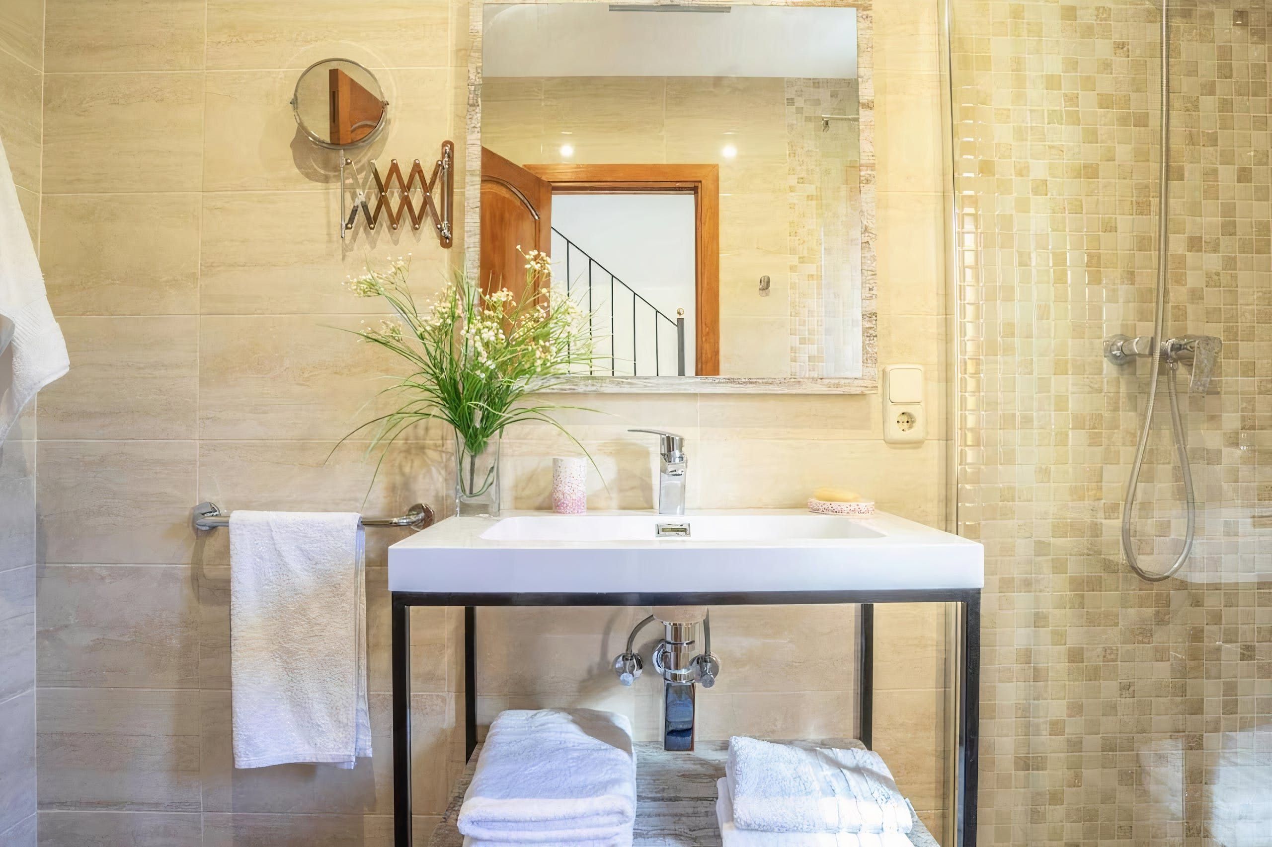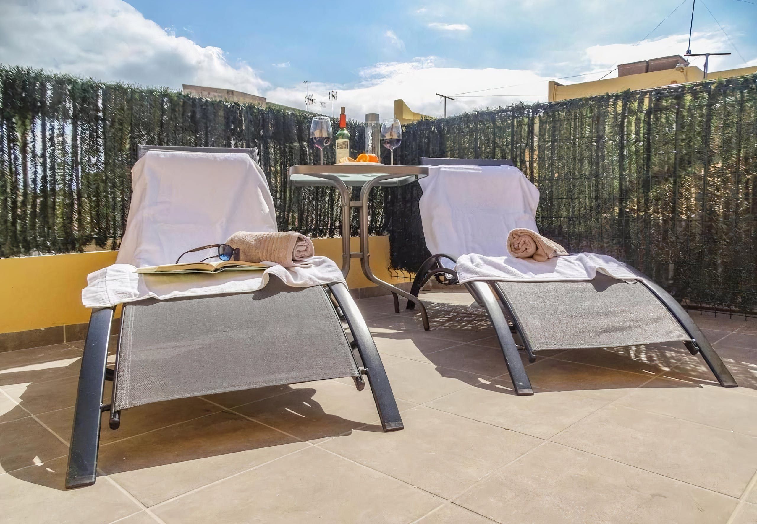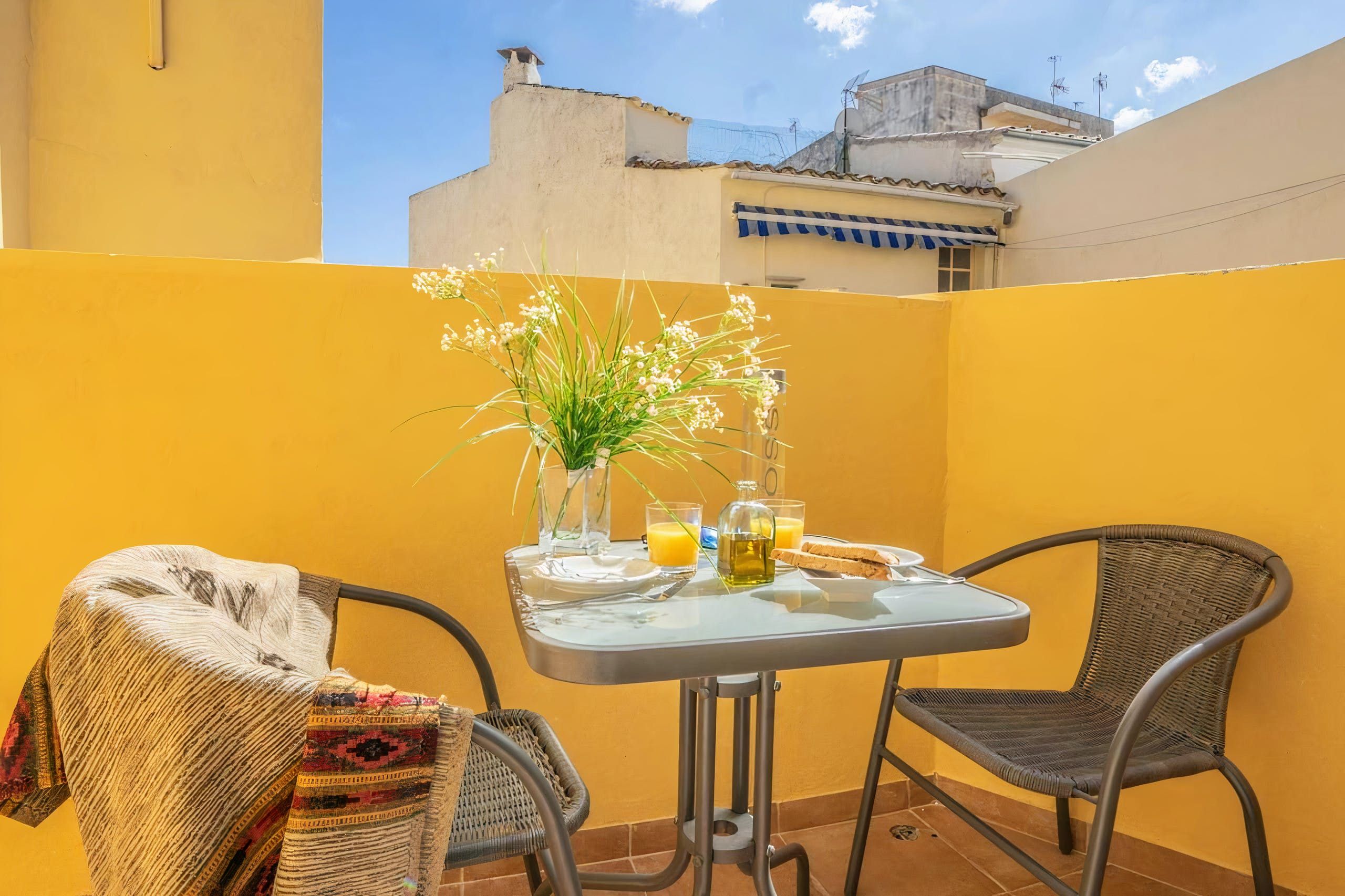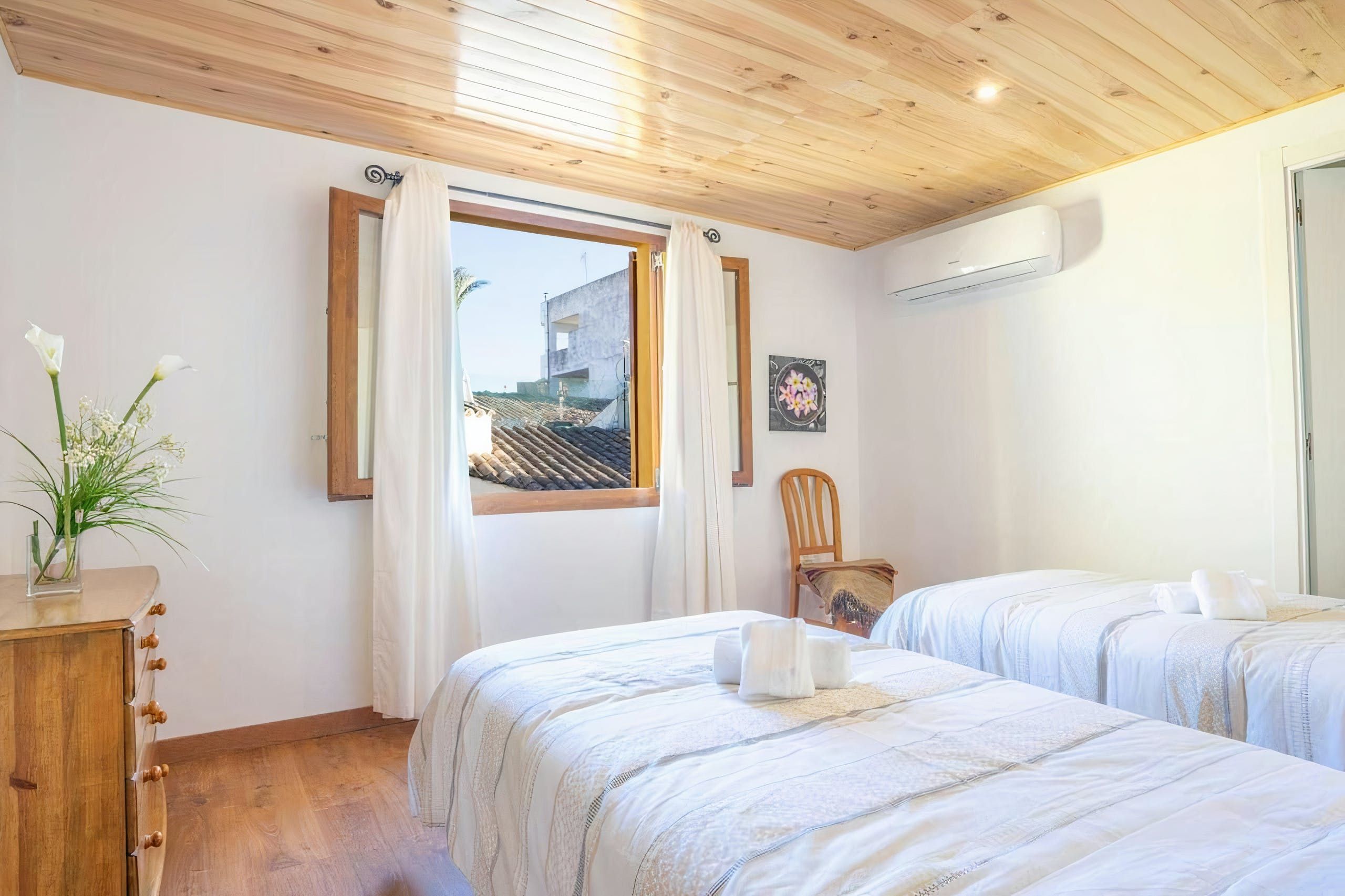 This sunshine yellow house in the historic town of Alcudia is the perfect family getaway. Set across four floors, there’s plenty of room for everyone. The main bedroom has a little balcony, which is the perfect place for a quiet moment at the start of the day with a cup of coffee and a book. On the top floor there is a magnificent roof terrace, with commanding views of the town, stretching down to the sea. Up here you can sunbathe in the deck chairs, or fire up the barbecue and enjoy alfresco lunches. There’s also a kids’ play area upstairs for the little ones.