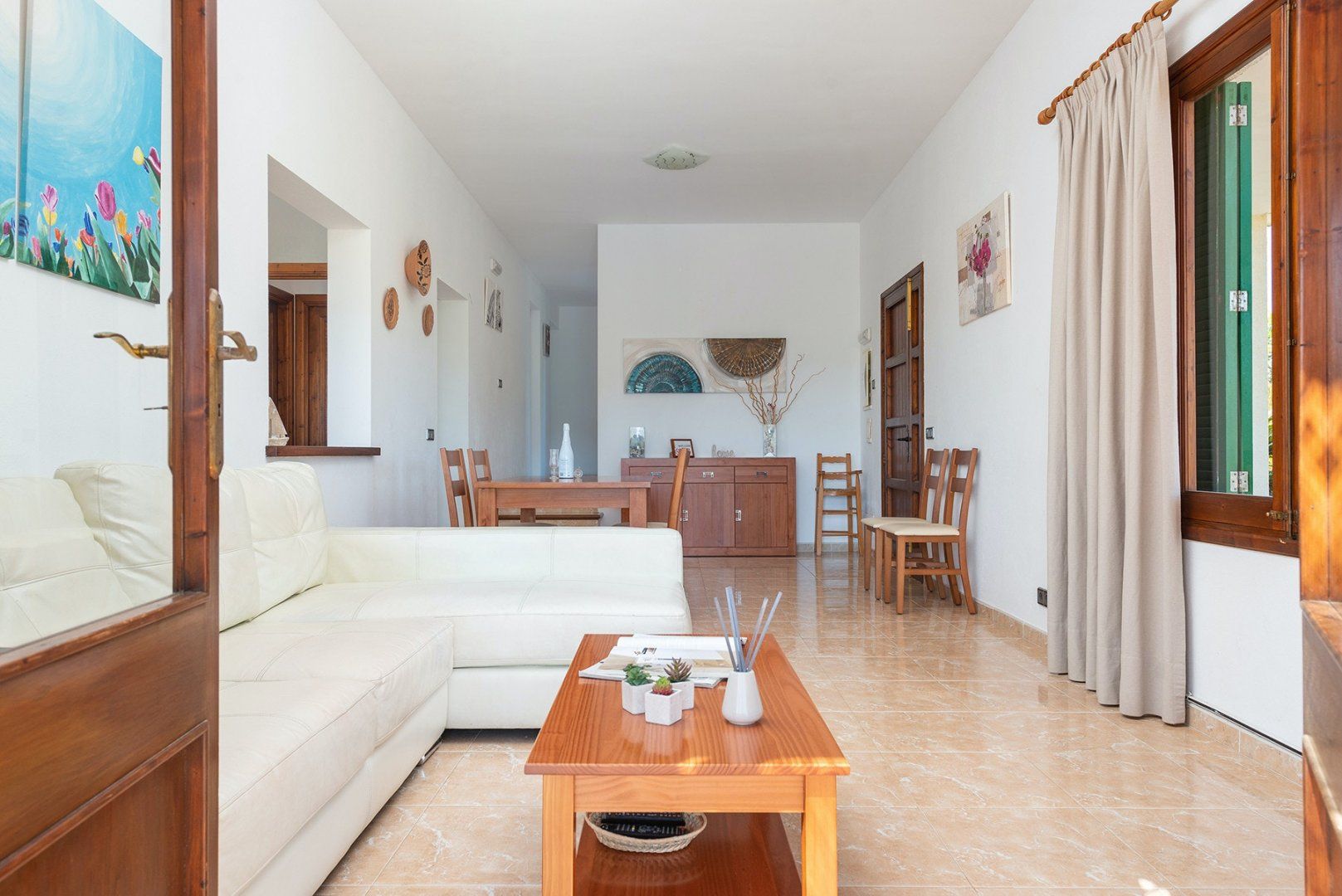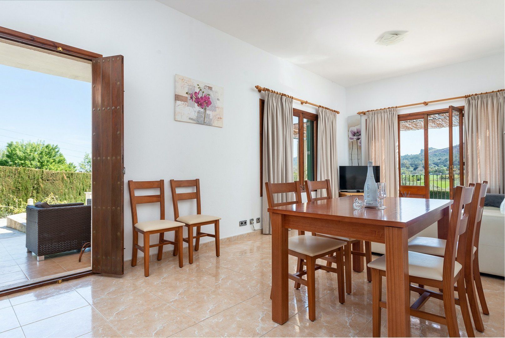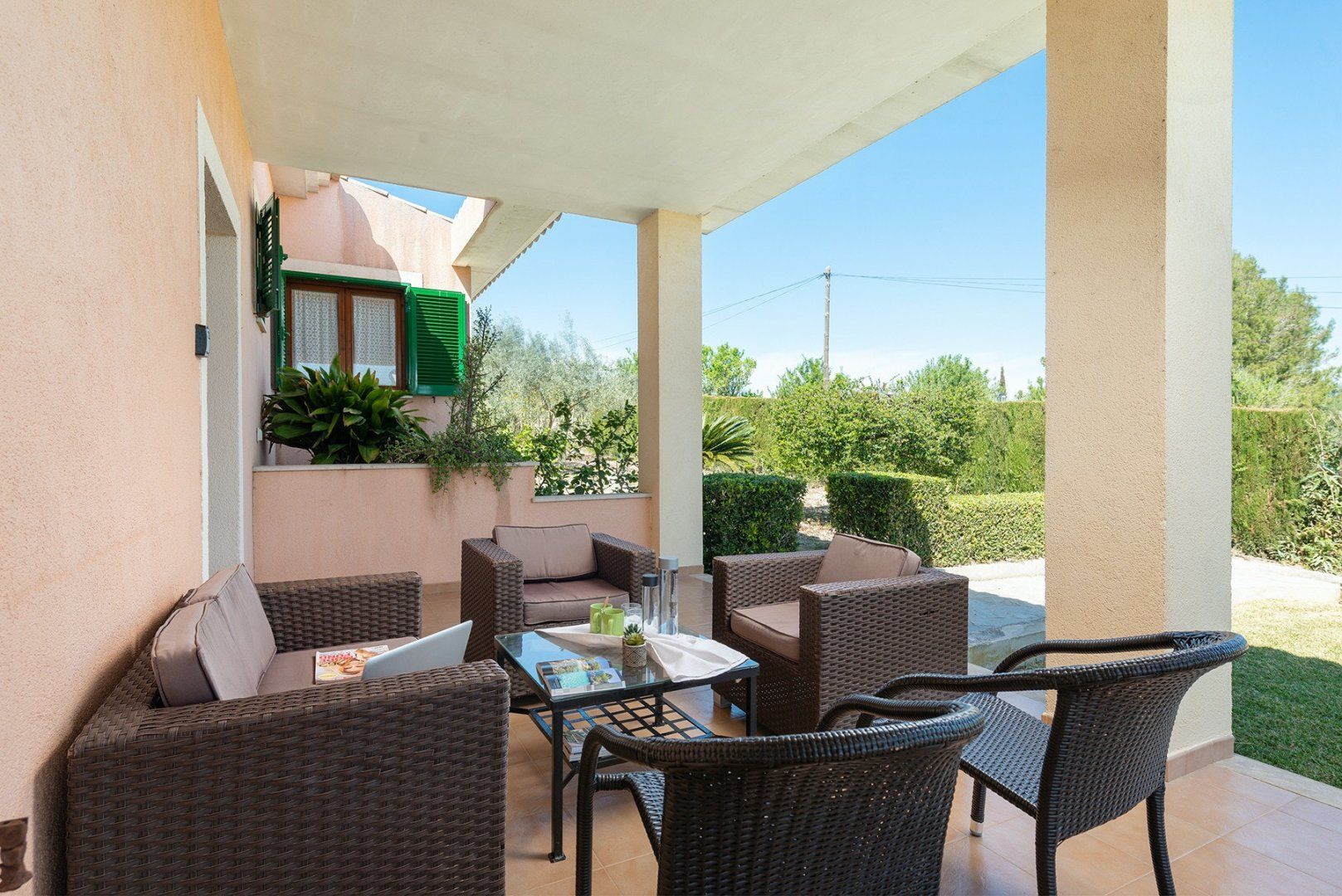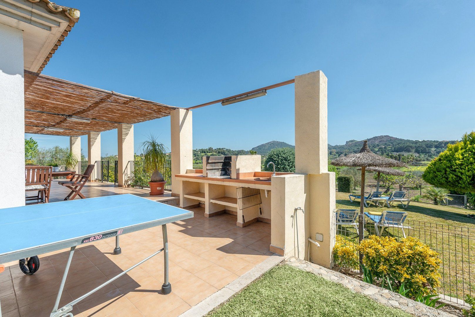 With a large swimming pool and wonderful mountain and countryside vistas, this villa is ideal for a family or friends looking for a peaceful setting. There’s a vine-covered terrace for alfresco dining, as well as a covered outdoor lounge area perfect for cocktails. Inside, the décor is simple, while the kitchen and bathrooms are a tad dated, we think. But with such a lovely garden, will you be spending much time indoors? If you want a change from the pool, Alcudia’s beach, Platja de Muro and Puerto de Pollensa are all around a ten-minute drive, while for bird watchers, S'Abufera Natural Park is 6 kilometres away and there’s a golf club 7 kilometres from this villa.