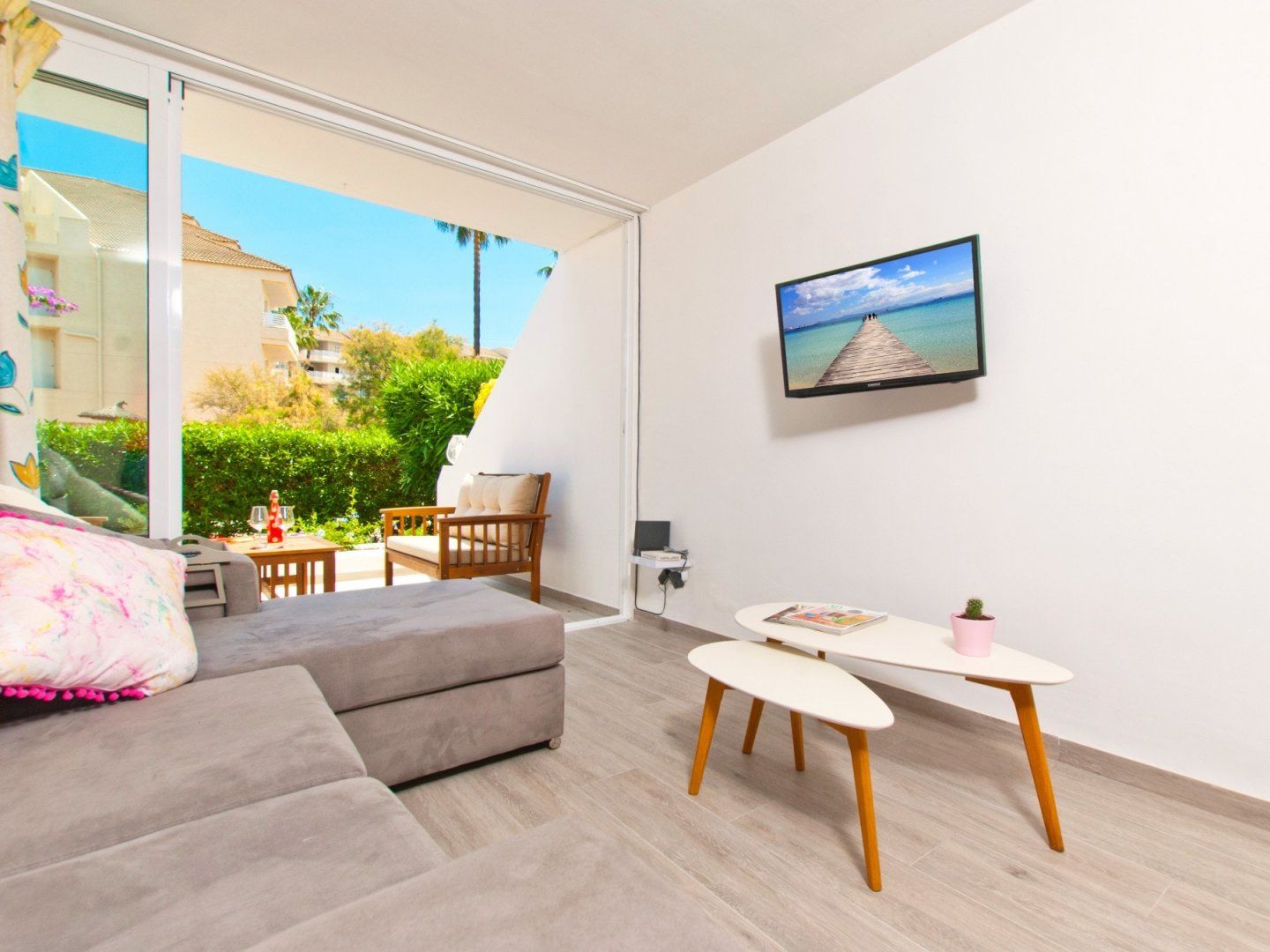 Summer in Mallorca is best lived outdoors, and this ground-floor apartment encourages you to bask in the gorgeous weather out on its bright terrace overlooking a garden. Located just 300 meters from Playa de Alcudia, the longest beach in Mallorca, it is also close to supermarkets, restaurants, and other amenities. Recently renovated, the modern interiors are a welcomed sight and you've got a handy breakfast bar for enjoying meals and mapping out plans. Both bedrooms are simple yet comfortable and there's a family bathroom. Enjoy hiking, cycling and fishing in the local area.