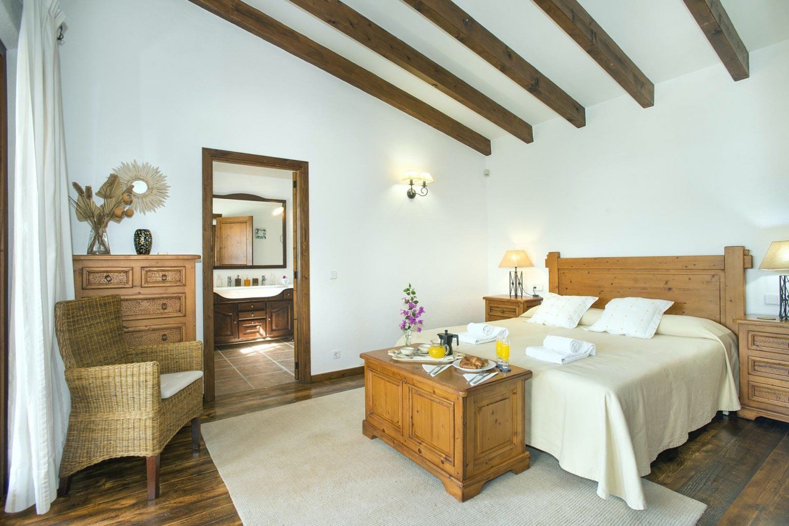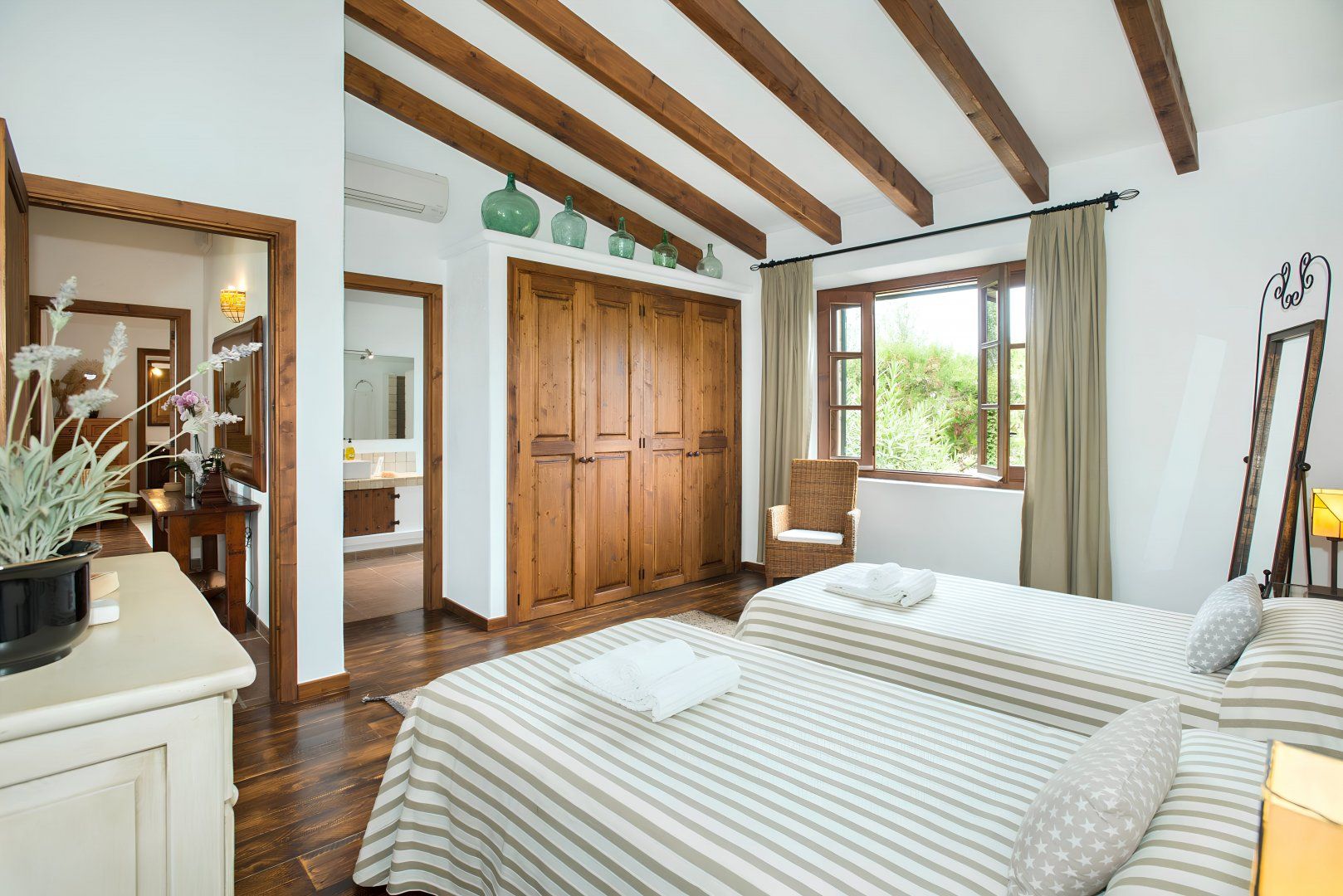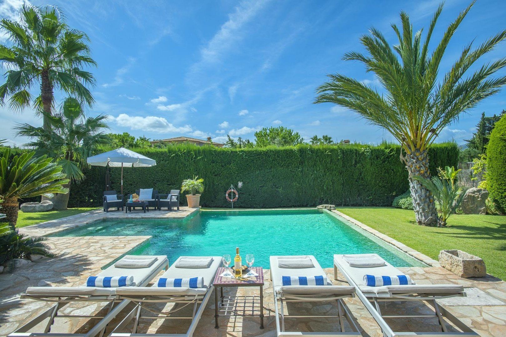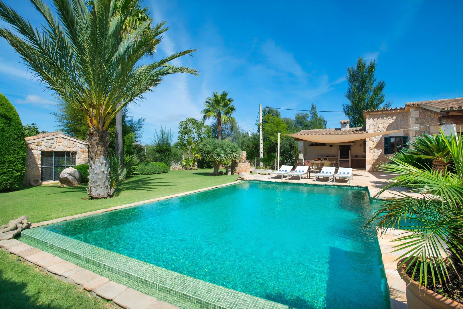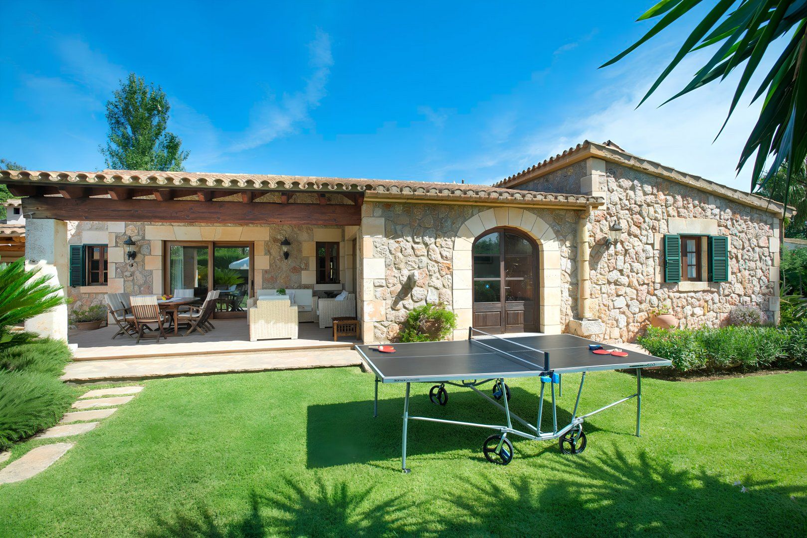 Cosy and characterful, this single-level finca is nestled between Pollença and Alcudia. It's an ideal base to explore northern Mallorca, where you'll find weekly markets in historic villages, sandy beaches along the coast, and time-honoured Spanish restaurants. When you're not out exploring, it'll be easy to feel right at home in this charming, albeit traditional, hideaway. We love the stone-clad walls and wooden beams inside – not to mention that each bedroom has an en-suite – but the old-world accents won't suit everyone's tastes. That said, the sunny garden is sure to be a hit. With its shady terrace, private pool and grassy lawn, it's the perfect spot ideal away lazy afternoons.