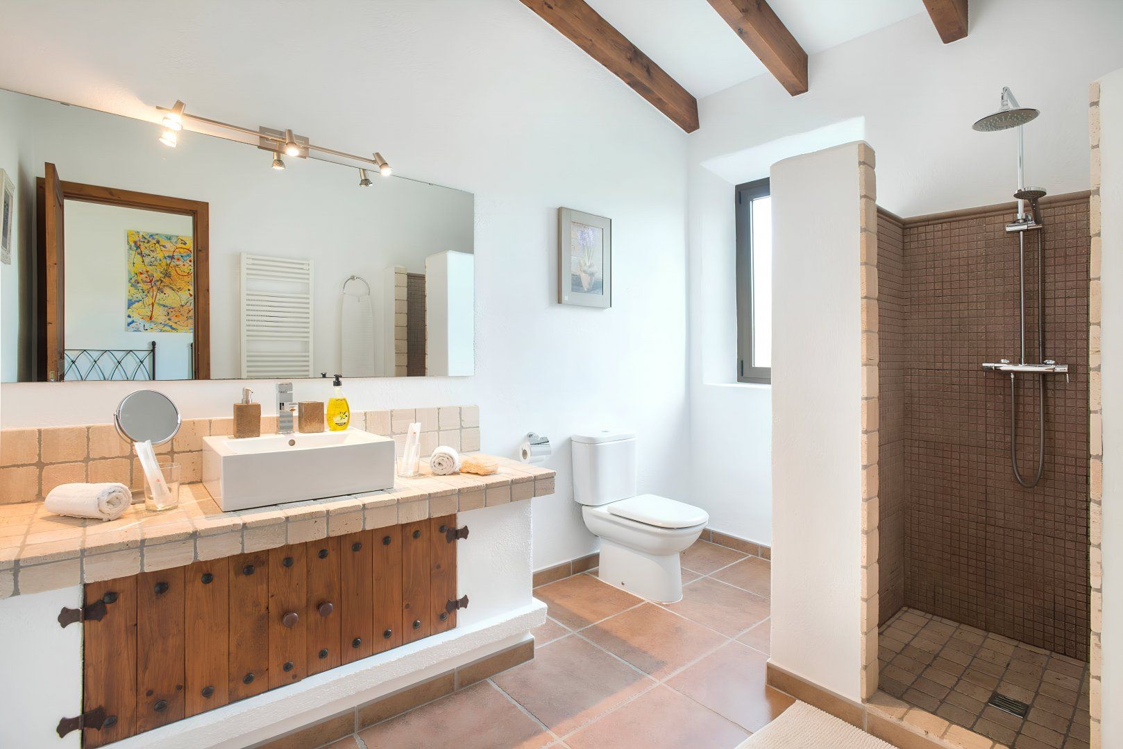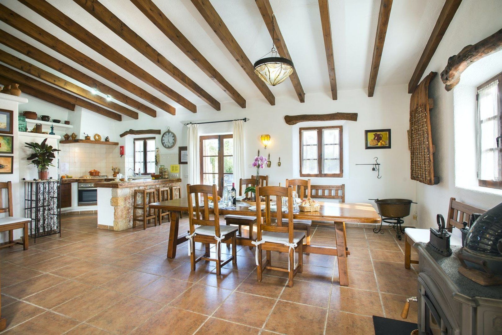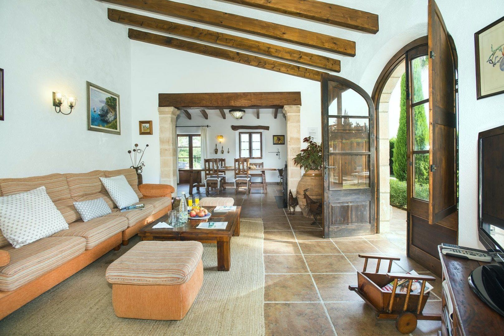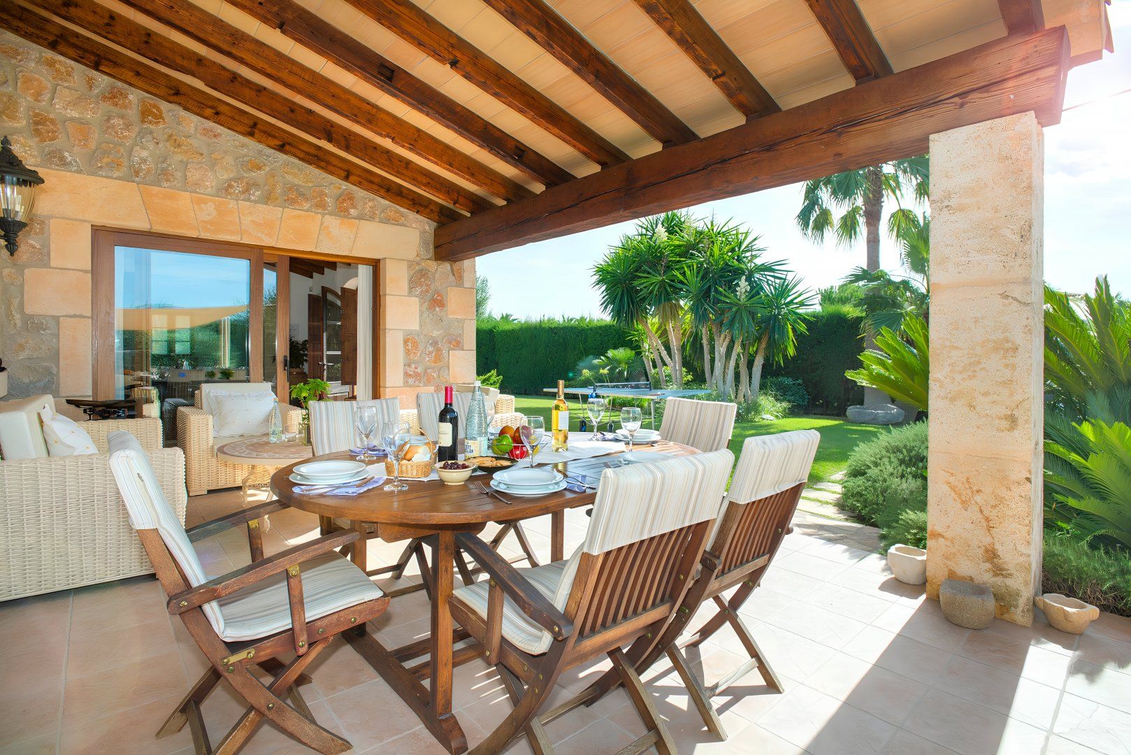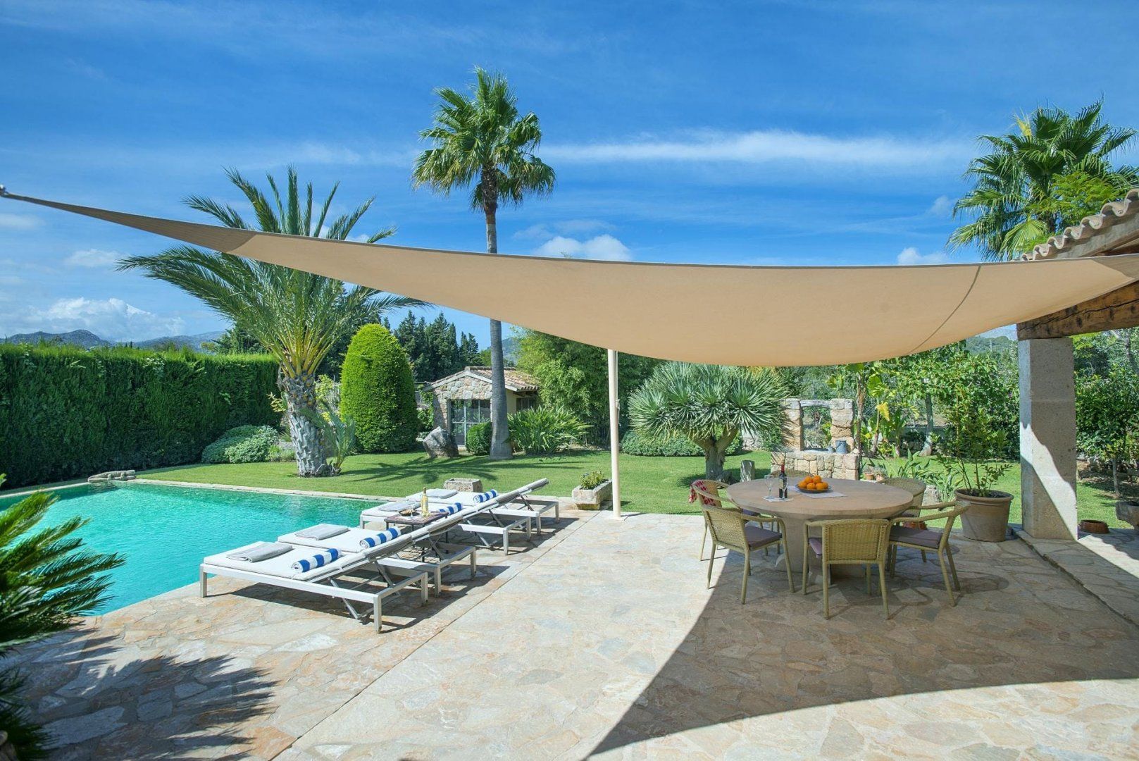 Cosy and characterful, this single-level finca is nestled between Pollença and Alcudia. It's an ideal base to explore northern Mallorca, where you'll find weekly markets in historic villages, sandy beaches along the coast, and time-honoured Spanish restaurants. When you're not out exploring, it'll be easy to feel right at home in this charming, albeit traditional, hideaway. We love the stone-clad walls and wooden beams inside – not to mention that each bedroom has an en-suite – but the old-world accents won't suit everyone's tastes. That said, the sunny garden is sure to be a hit. With its shady terrace, private pool and grassy lawn, it's the perfect spot ideal away lazy afternoons.