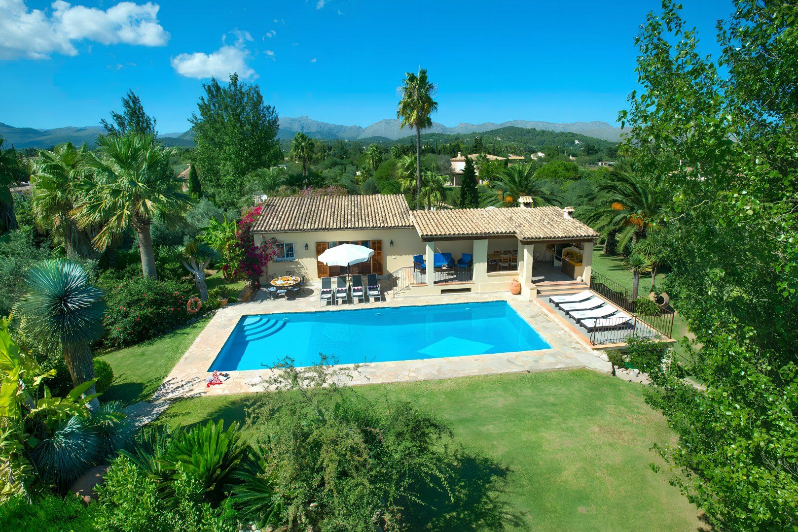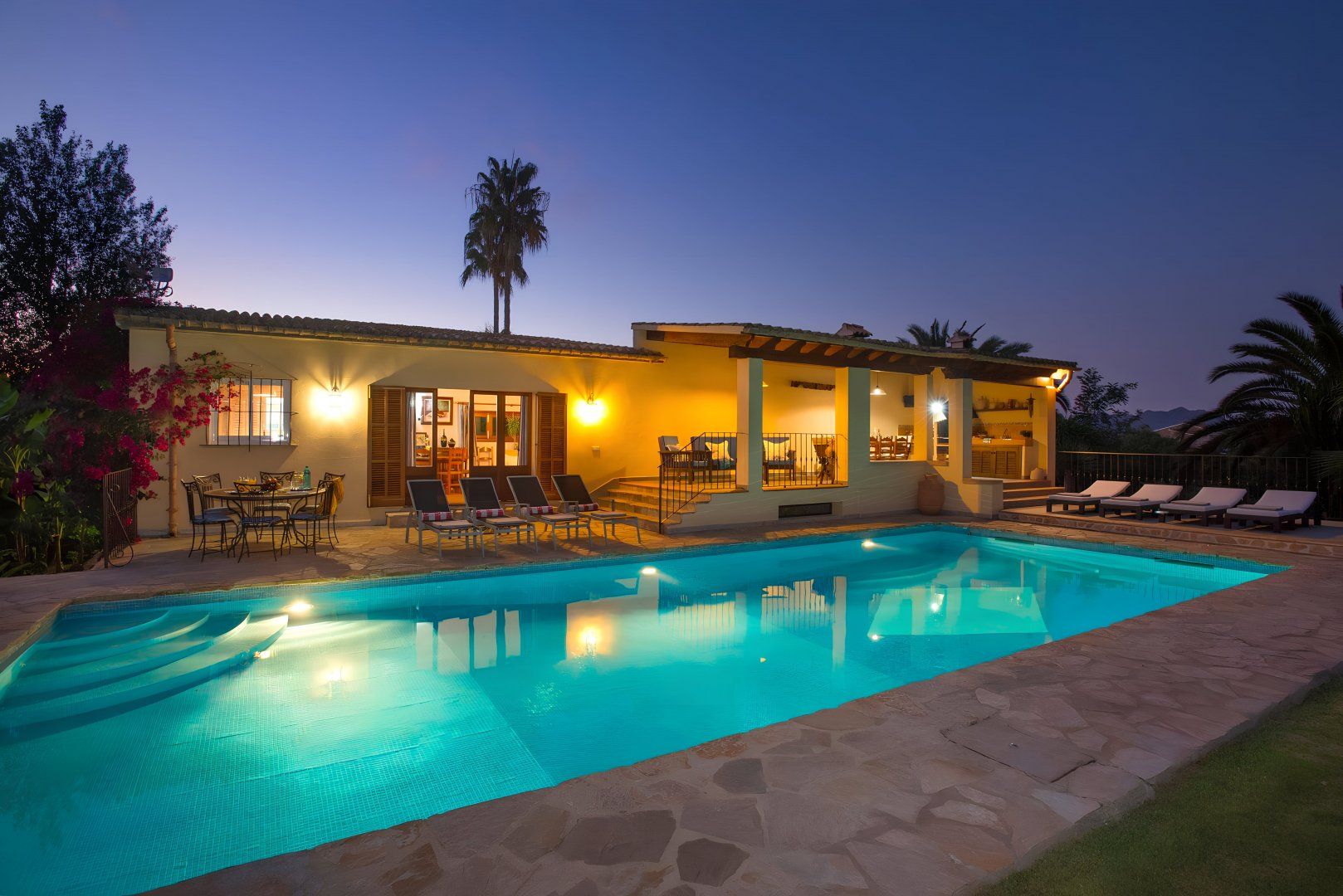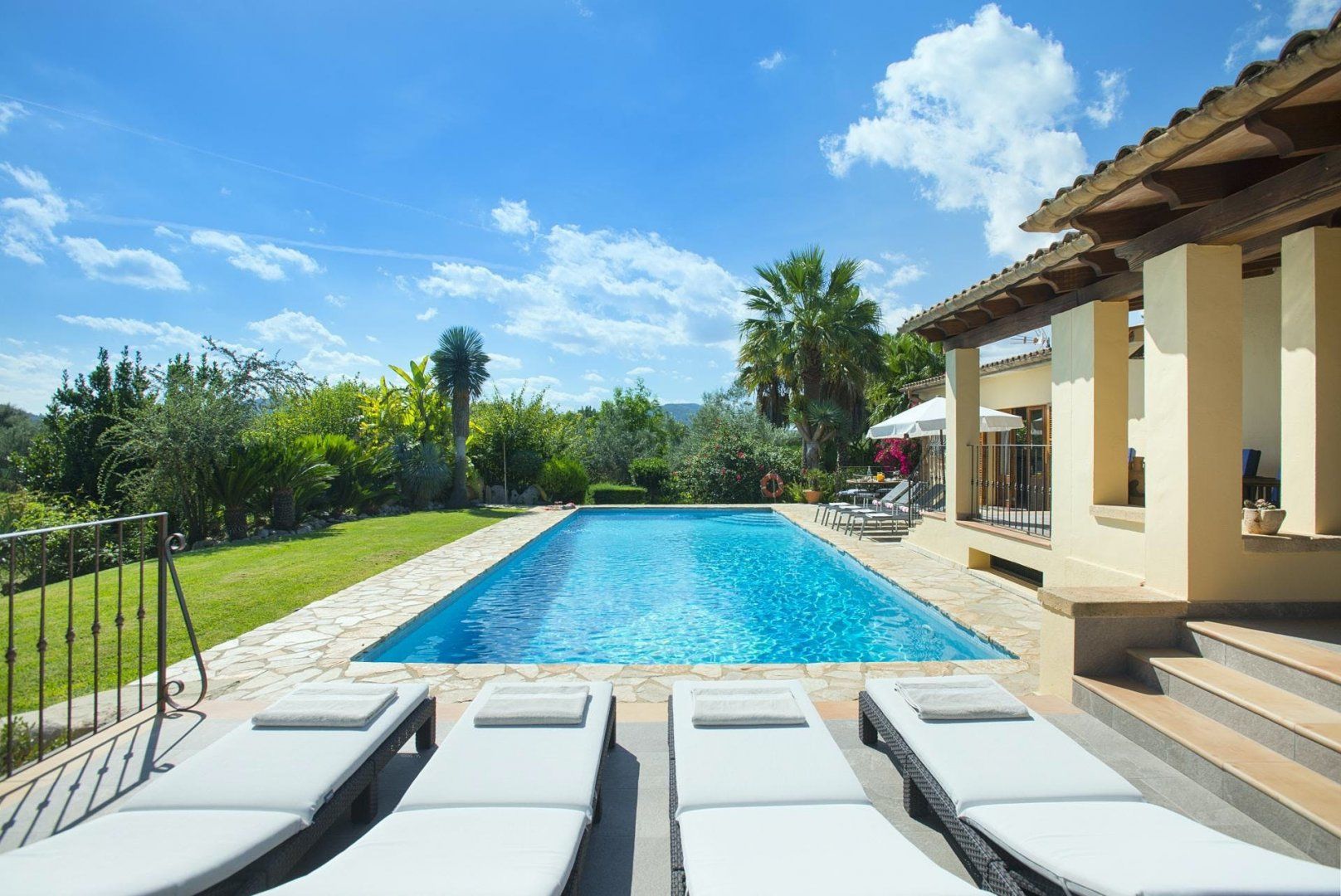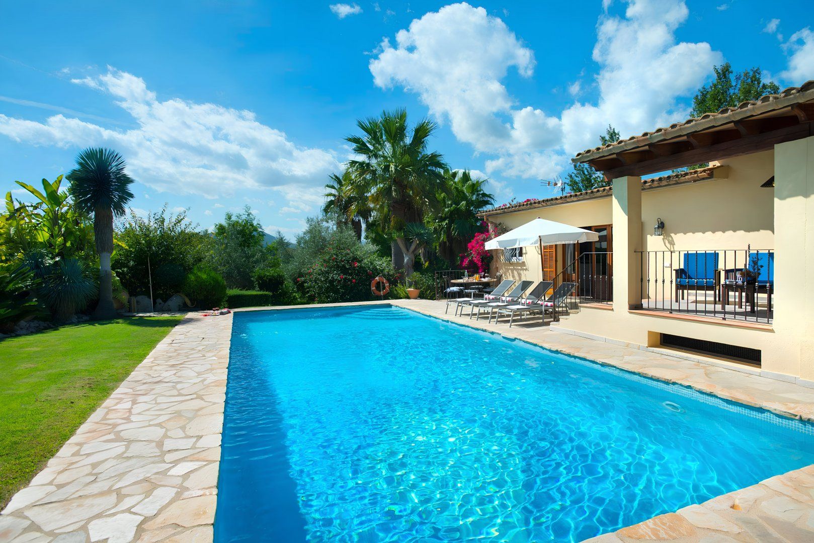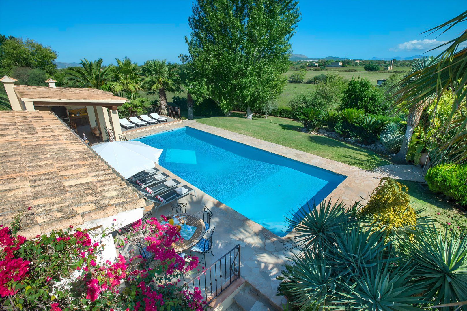 Hit rest and reset at this traditional villa found in a peaceful corner of Mallorca, between the old medieval quarters of Pollença and Alcudia. There are plenty of reasons to linger at this home – boasting extensive lawns for the kids to have a runabout, a summer kitchen with an in-built barbecue, a private swimming pool, and table tennis to dial up the pace. If you fancy breaking up pool days, Mallorca’s extensive stretches of beach with shallow, turquoise waters are just a short drive away. Get off to a flying start in Playa de Muro – this family-friendly beach is just a ten-minute drive away.