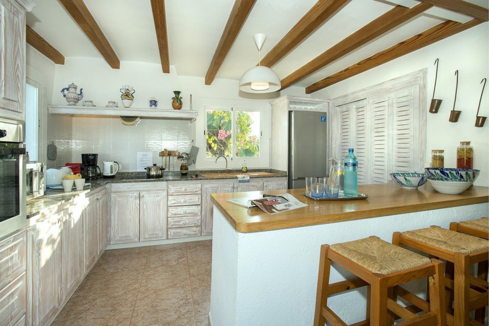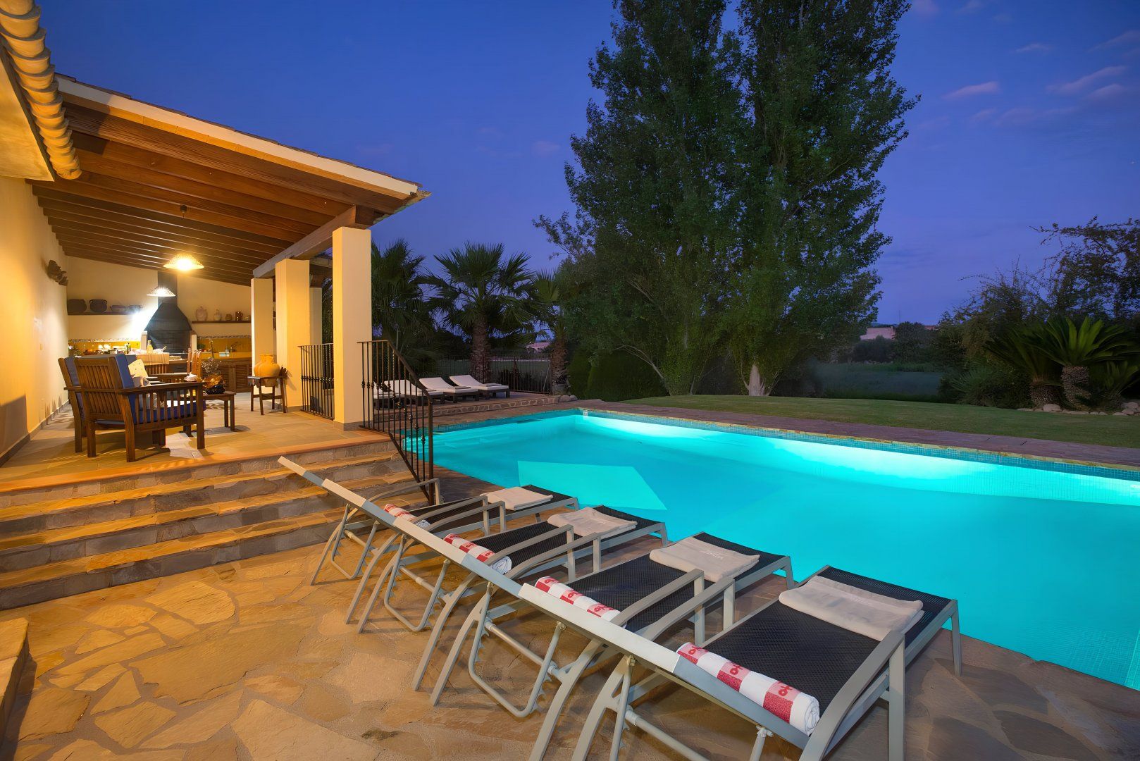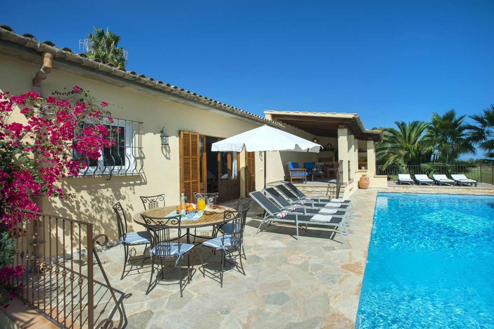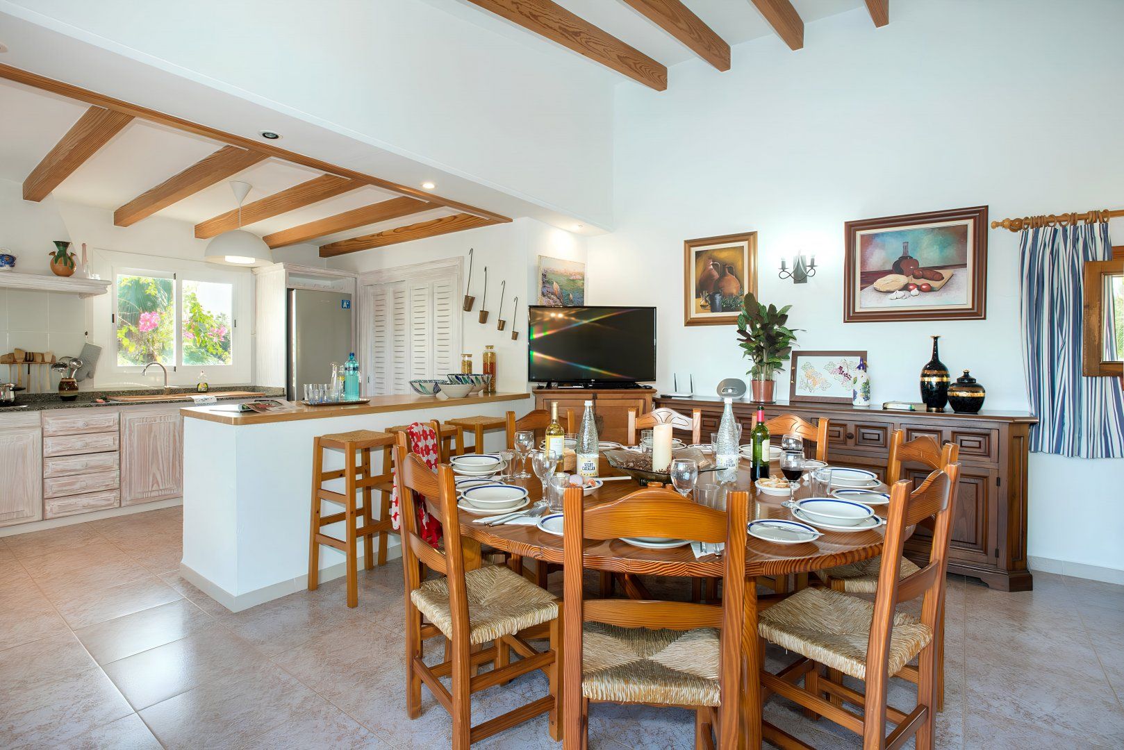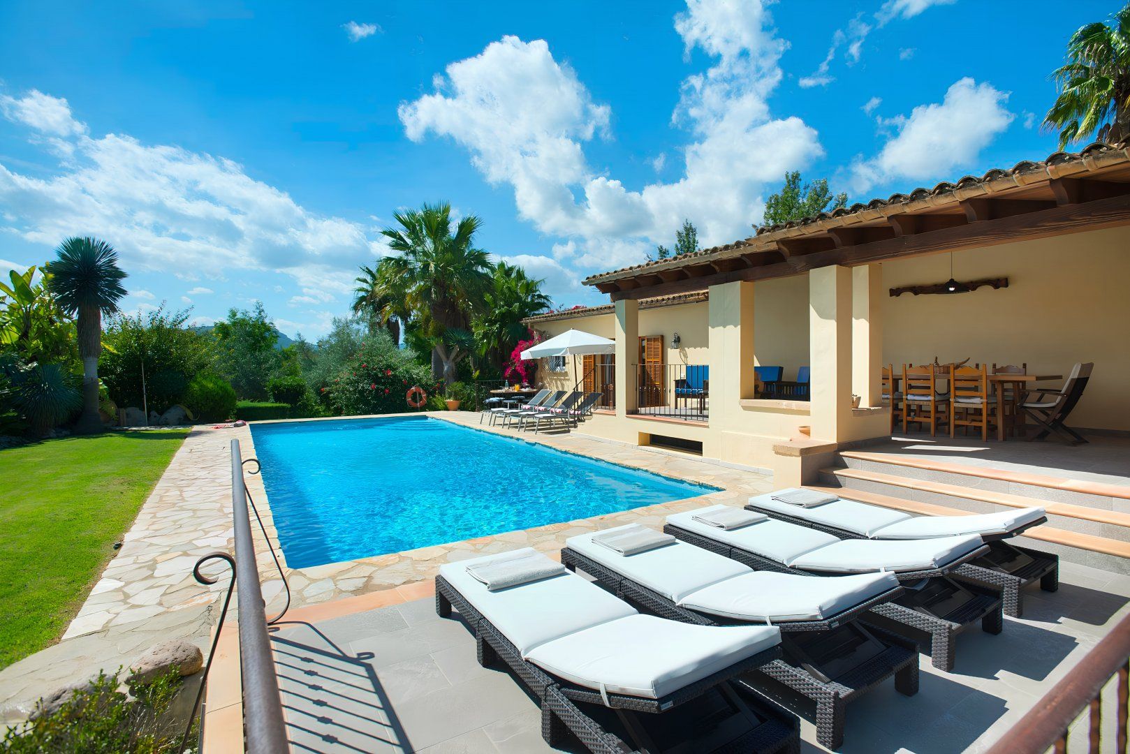 Hit rest and reset at this traditional villa found in a peaceful corner of Mallorca, between the old medieval quarters of Pollença and Alcudia. There are plenty of reasons to linger at this home – boasting extensive lawns for the kids to have a runabout, a summer kitchen with an in-built barbecue, a private swimming pool, and table tennis to dial up the pace. If you fancy breaking up pool days, Mallorca’s extensive stretches of beach with shallow, turquoise waters are just a short drive away. Get off to a flying start in Playa de Muro – this family-friendly beach is just a ten-minute drive away.