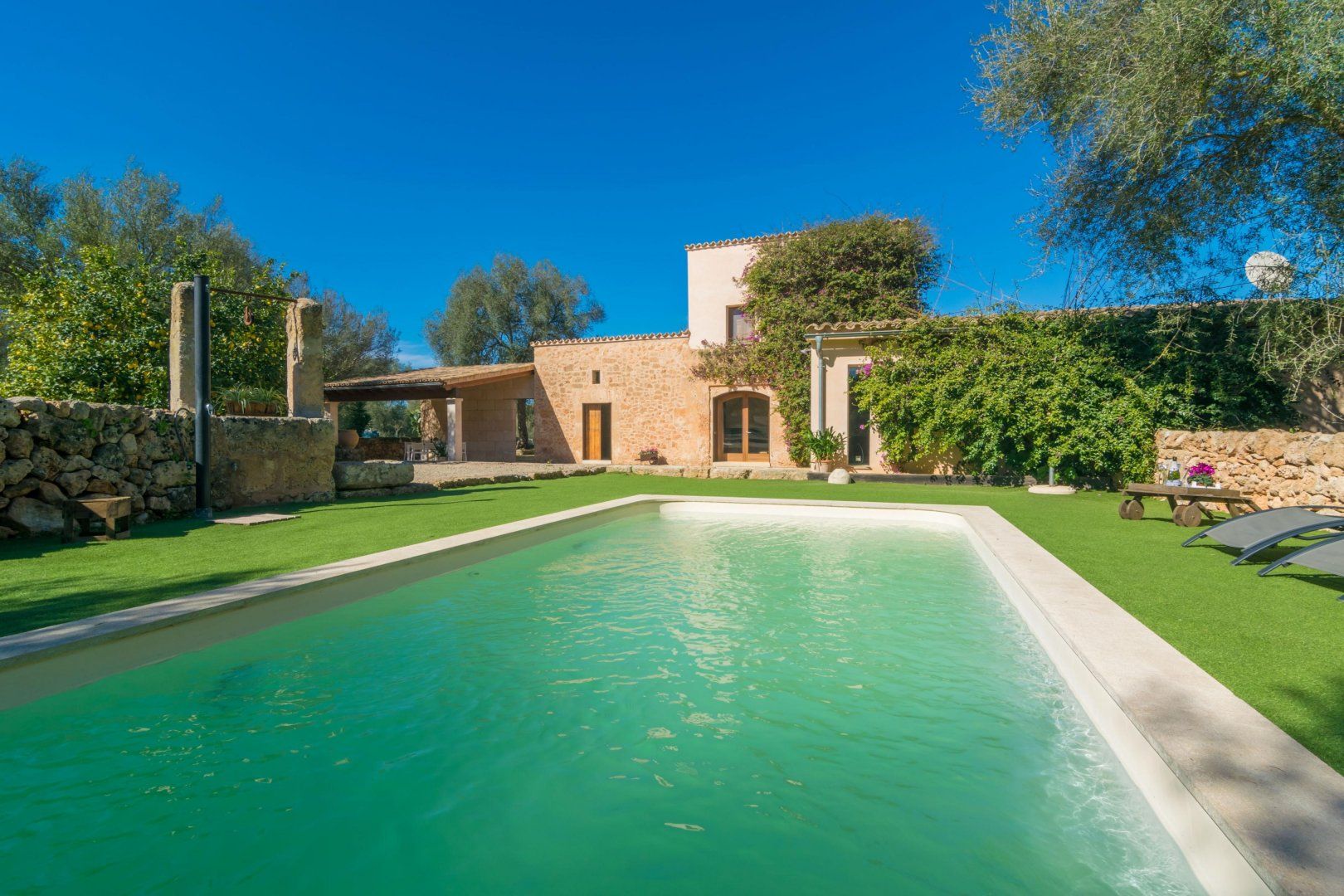 If you're looking to steer clear of the tourist trail, this secluded home is an idyllic rural retreat. On a private road, you'll have no nearby neighbours but it's just a ten-minute drive to the beautiful town of Algaida – one of the most authentic spots on the island. Surrounded by ancient olive trees, and with an old well out front, it's a charming Finca within a walled garden.