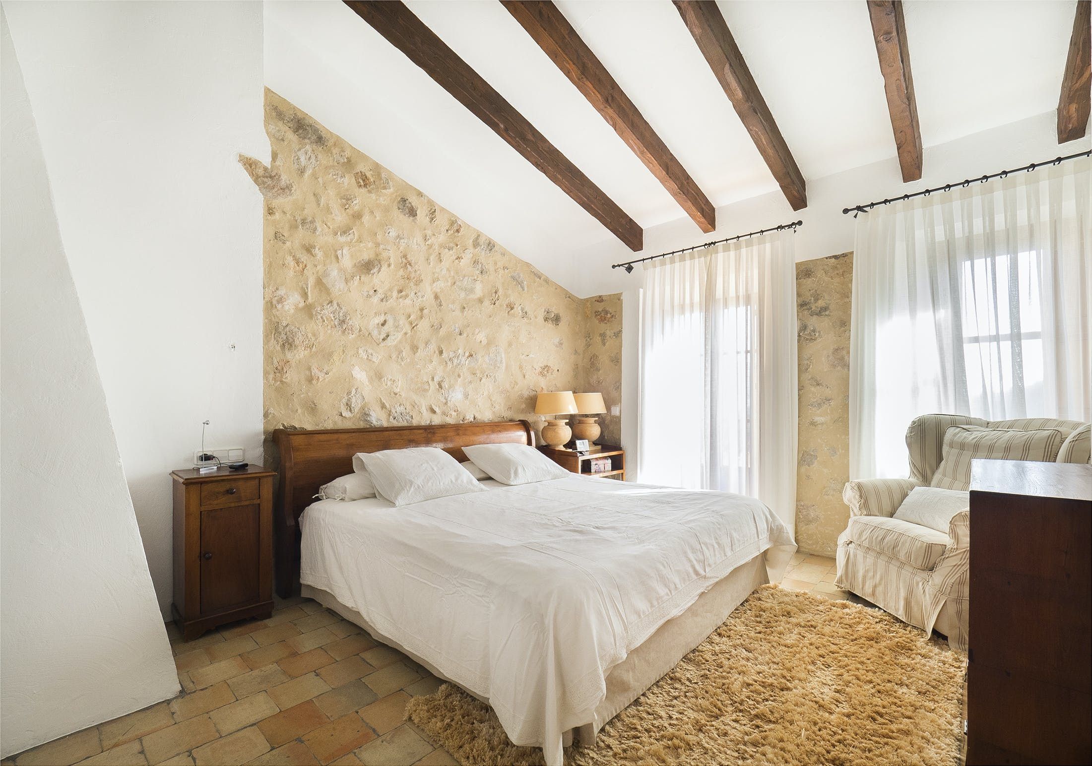 In the charming Mallorcan countryside, spend Mediterranean mornings with a cup of coffee in hand and this home's haven of greenery as your scenic backdrop. Boasting mountain views, isolated corners of peace and fragrant aromatics of the vineyards, fruit trees, and garden herbs, the outdoor setting here is utterly magical. In fact, the host encourages you to pick fresh tomatoes straight from the fruit trees to enjoy at breakfast each morning.