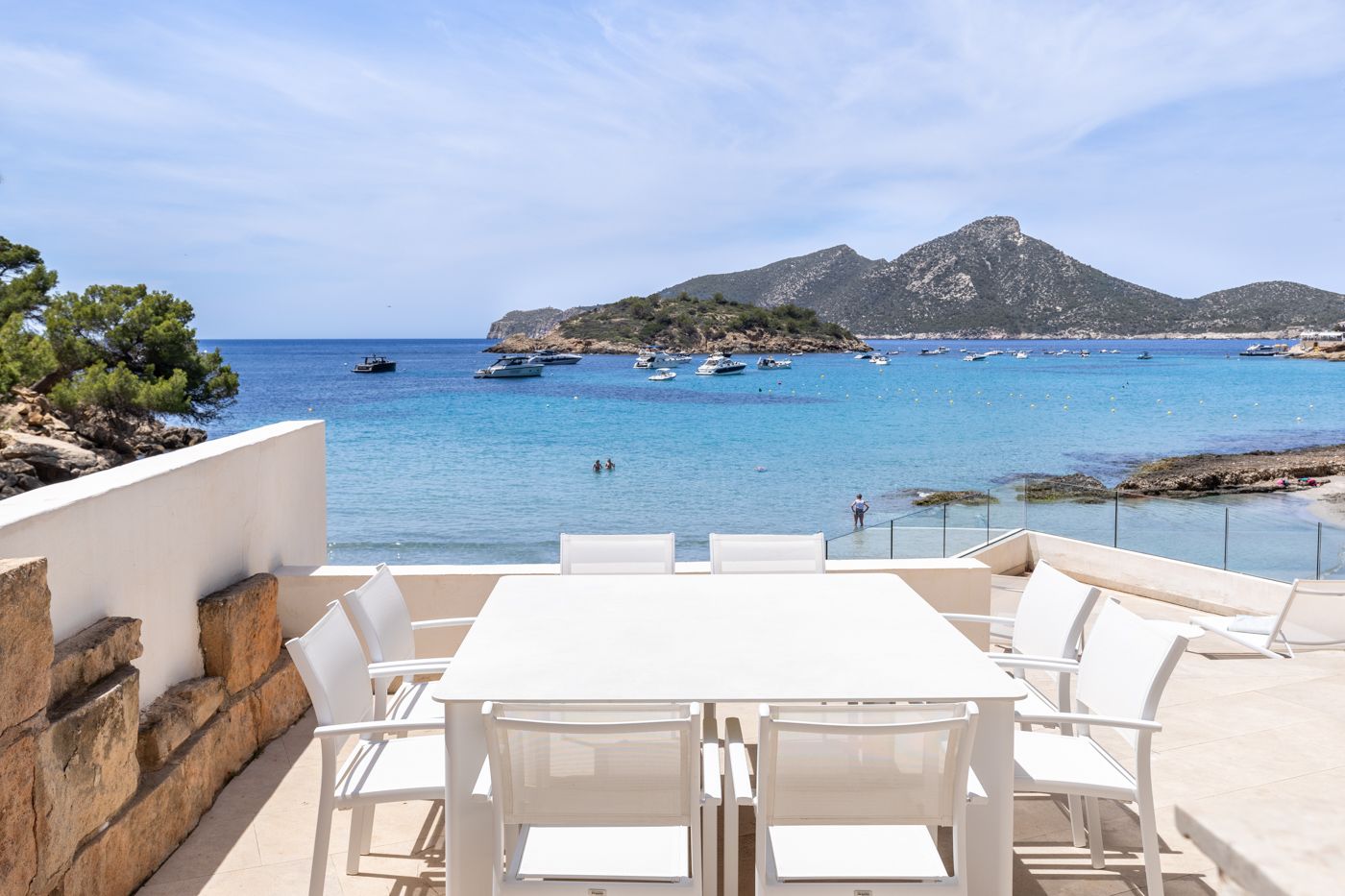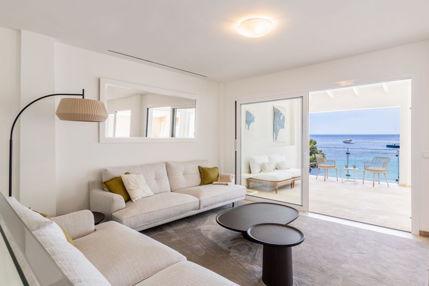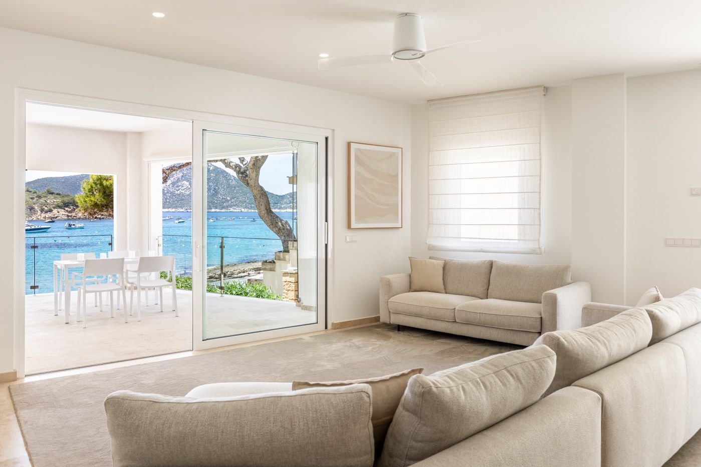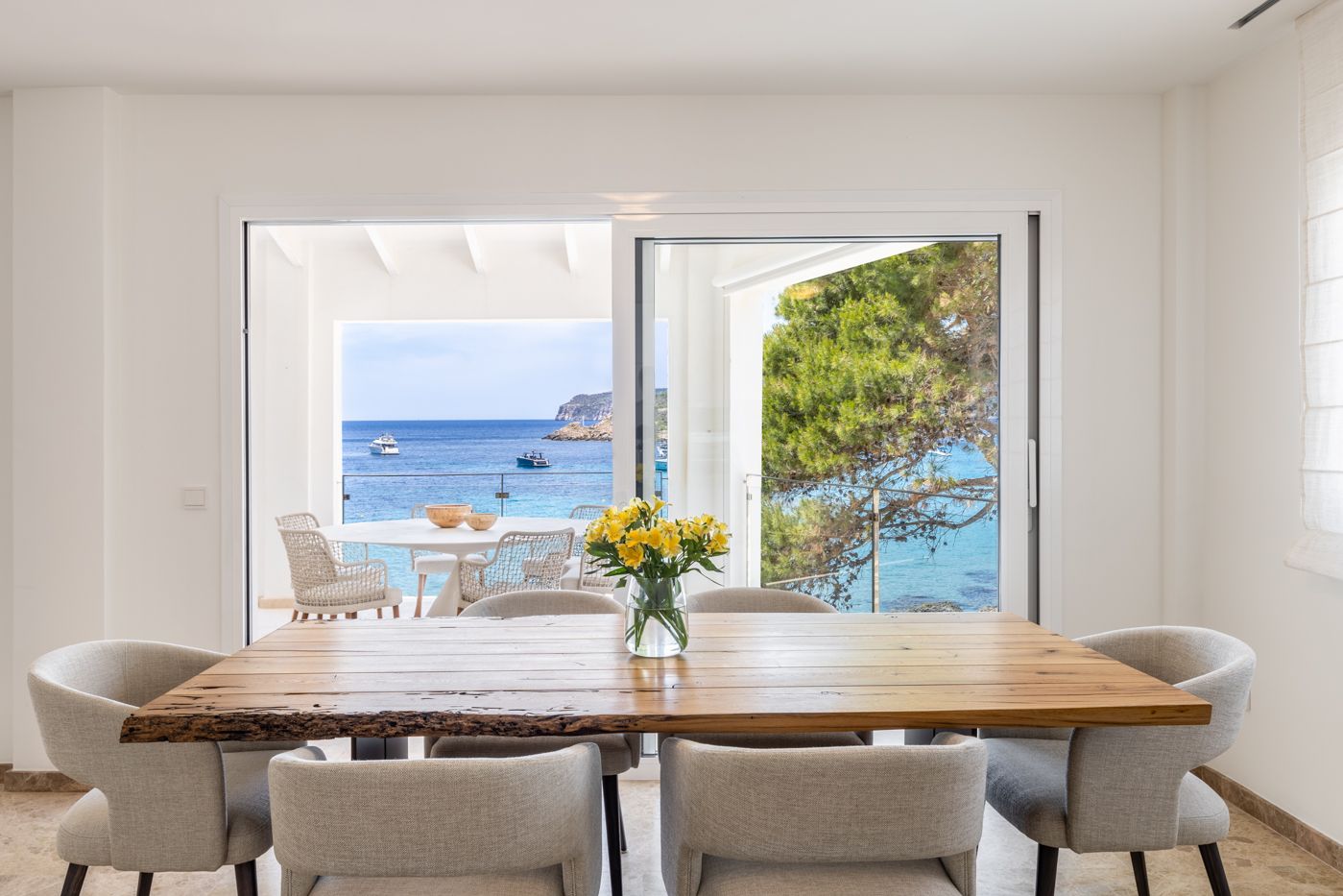 Perched on the coast, right behind the charming San Telmo beach and looking out toward Dragonera island, this villa exudes luxury. With two kitchens, a private bar and two separate outdoor terraces overlooking the sparkling seas and sands, there is more than enough space on the three floors for everyone. Get some work done at one of several options for laptop-friendly workspaces while you admire the views of the ocean horizon. Make yourself a morning coffee in one of the sleek, modern kitchens and sit out on the balcony to greet the new day. In the afternoon, take the walk – barely minutes – to the beach right outside your front door, and work on your tan as you relax to the sound of the gentle waves. You can even enjoy the beach without needing to lie in the sand or bring a towel, with the lower terrace and sun loungers right on top of the beach.