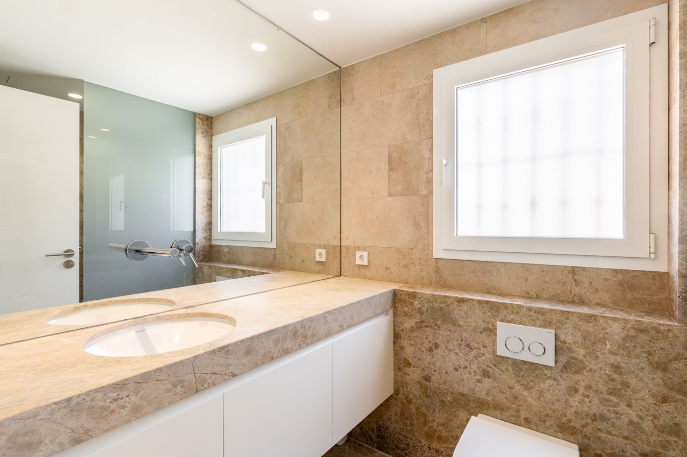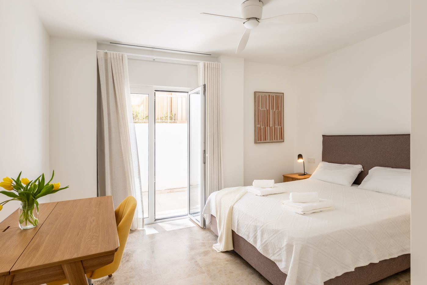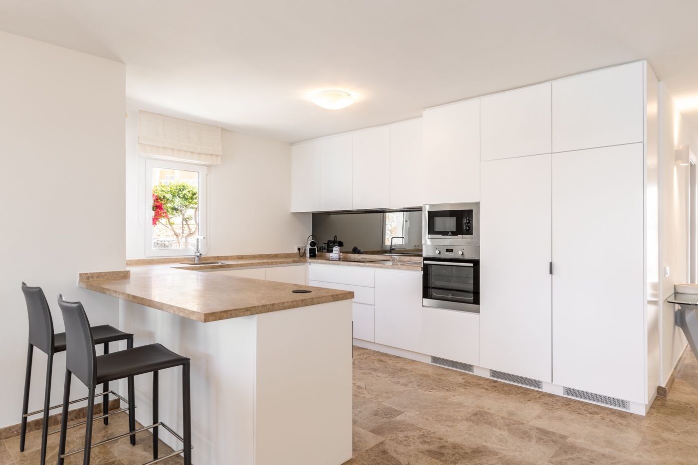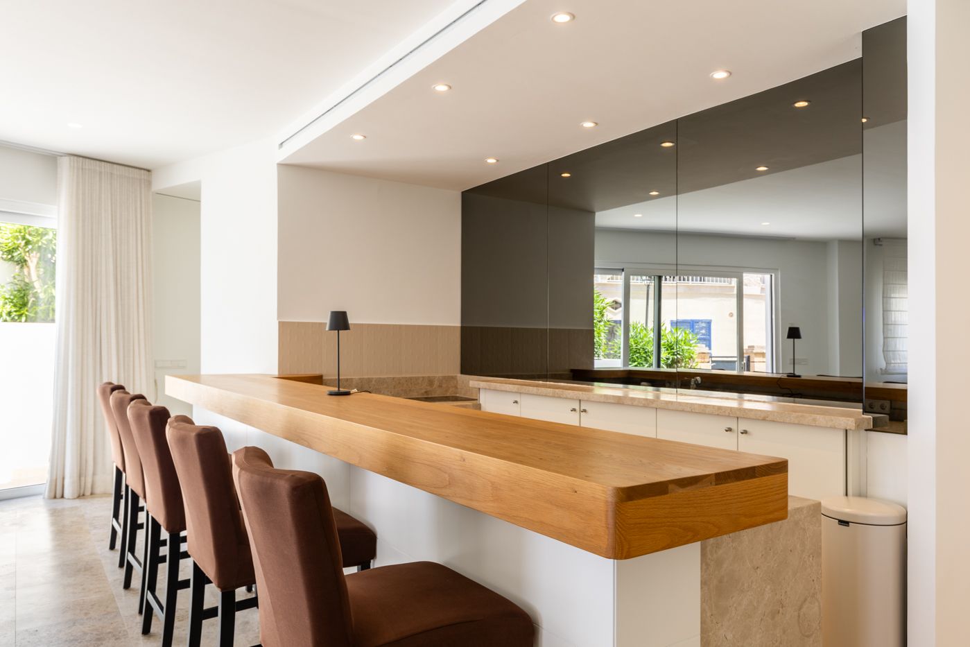 Perched on the coast, right behind the charming San Telmo beach and looking out toward Dragonera island, this villa exudes luxury. With two kitchens, a private bar and two separate outdoor terraces overlooking the sparkling seas and sands, there is more than enough space on the three floors for everyone. Get some work done at one of several options for laptop-friendly workspaces while you admire the views of the ocean horizon. Make yourself a morning coffee in one of the sleek, modern kitchens and sit out on the balcony to greet the new day. In the afternoon, take the walk – barely minutes – to the beach right outside your front door, and work on your tan as you relax to the sound of the gentle waves. You can even enjoy the beach without needing to lie in the sand or bring a towel, with the lower terrace and sun loungers right on top of the beach.