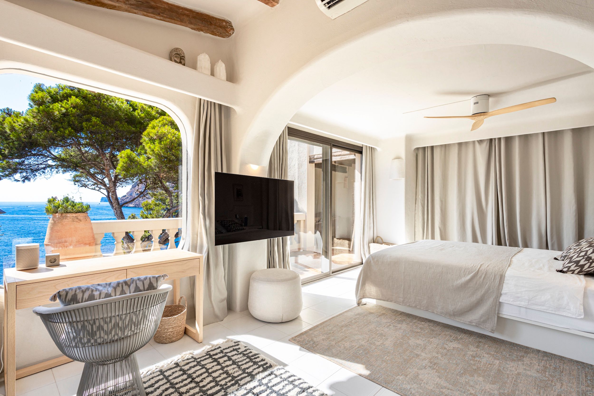 This stunning villa is in the heart of Andratx, just five minutes on foot from bars and restaurants. It boasts direct sea access and a dinghy dock, and offers breathtaking sea and sunset views. The outside space is centred around a beautiful terrace with a heated pool and plenty of comfortable seating, and a garden with day beds and a sauna. Inside, the decor is elegant and modern. Each bedroom has an en-suite bathroom, making this villa as convenient as it is classy.