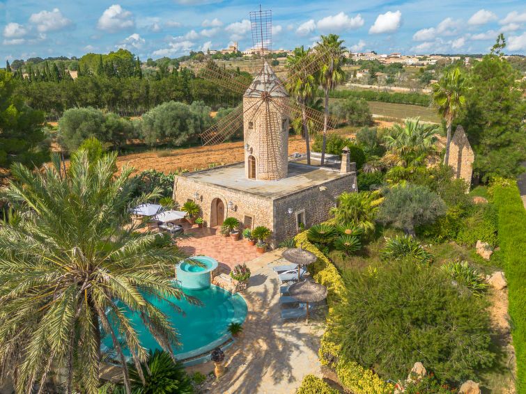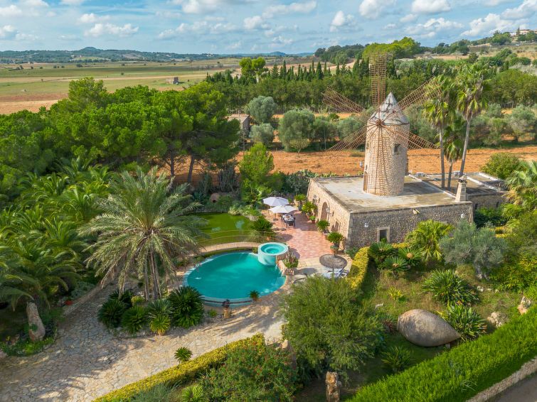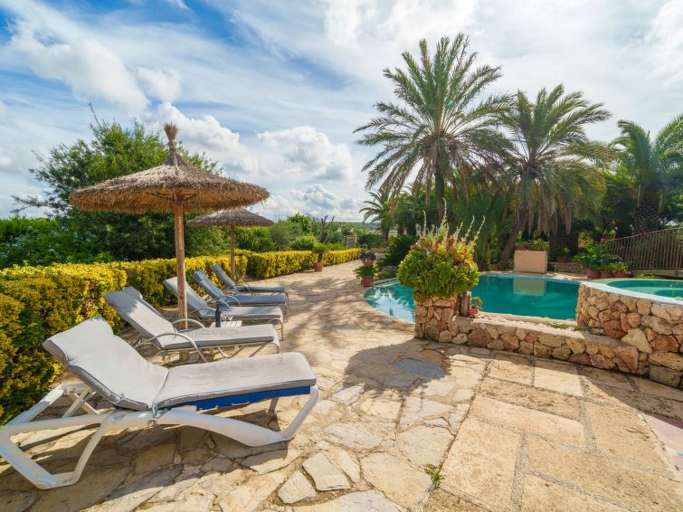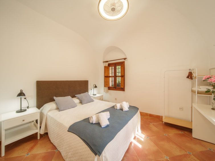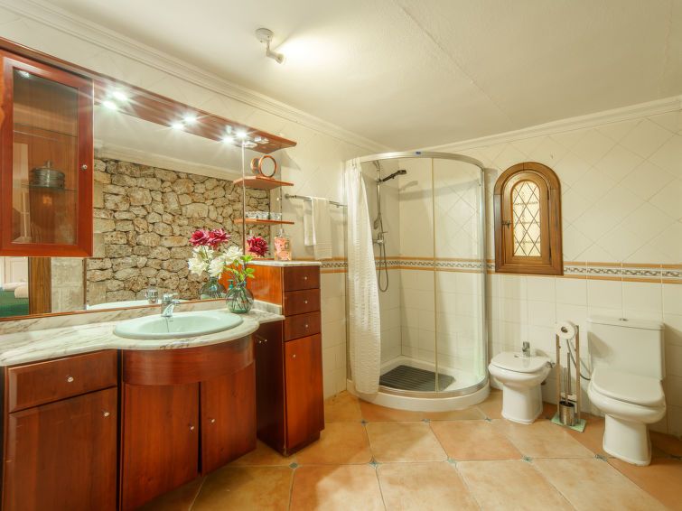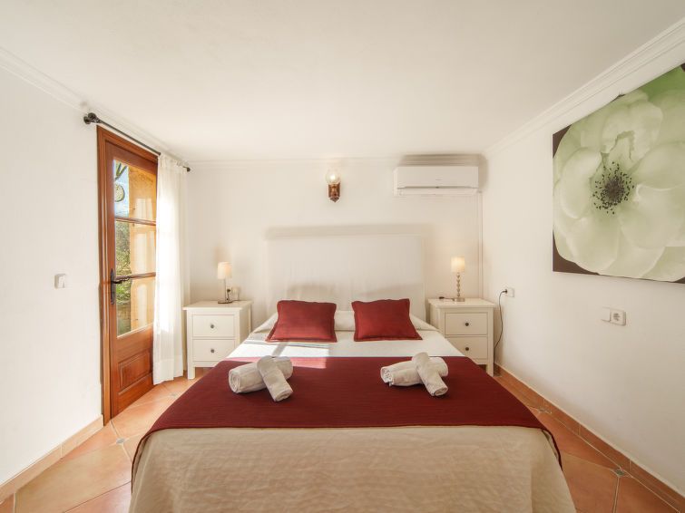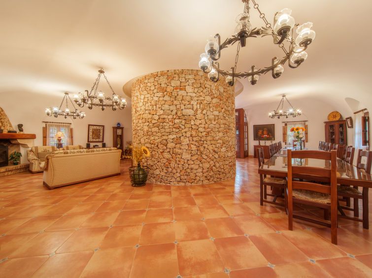 "Son Siurana", 4-room villa 195 m2, lower ground floor. Object suitable for 6 adults. Spacious, rustic and cosy furnishings: large living/dining room with open-hearth fireplace (only for decoration), dining table, digital TV and flat screen. 1 large double bedroom with 2 beds (90 cm, length 200 cm), shower/WC, air conditioning and forced-air heating.