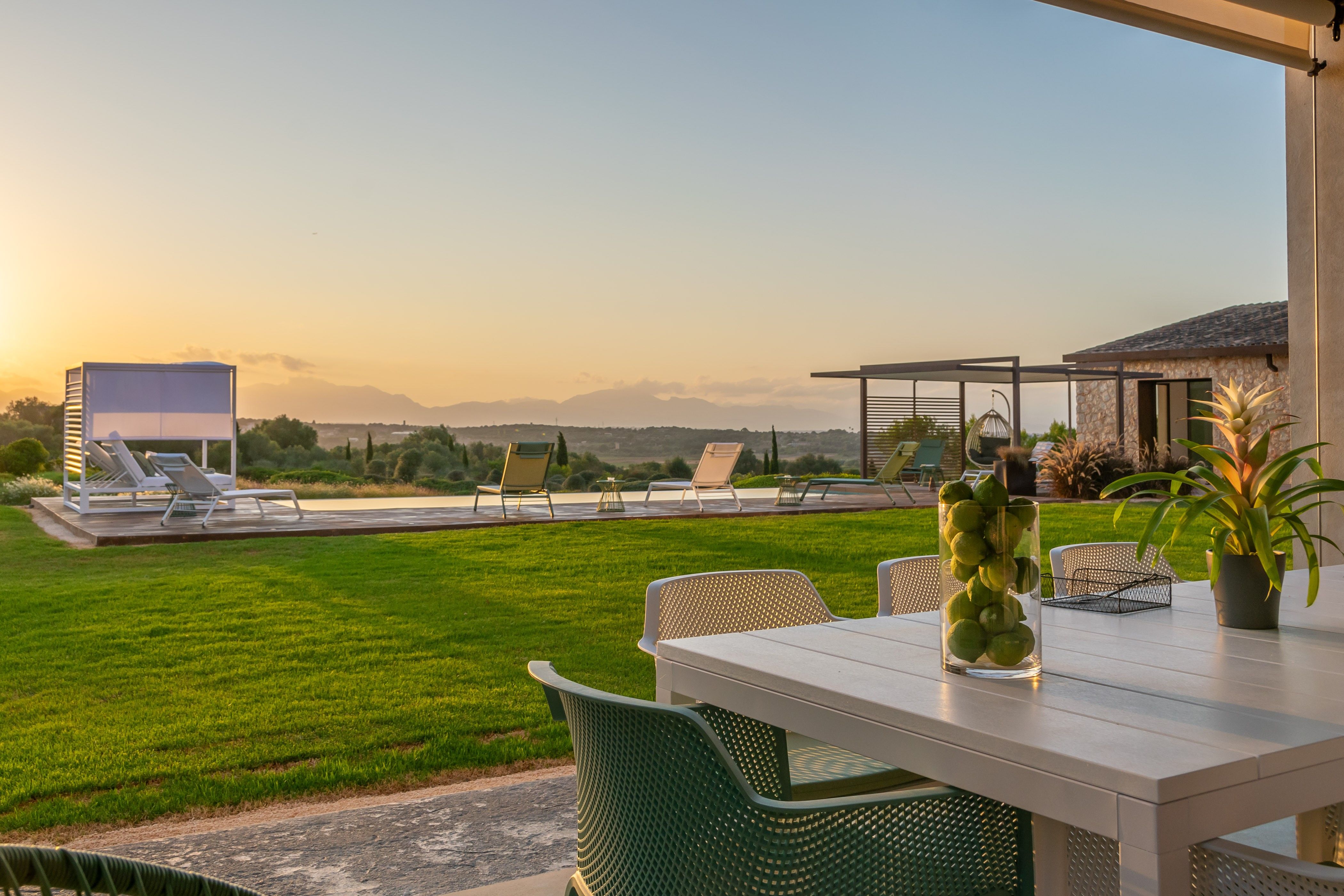 Revel in the peace and tranquillity of the Mallorquin countryside at this stunning villa, offering far-reaching views over the island's interior towards the jagged peaks of the Sierra Tramuntana.