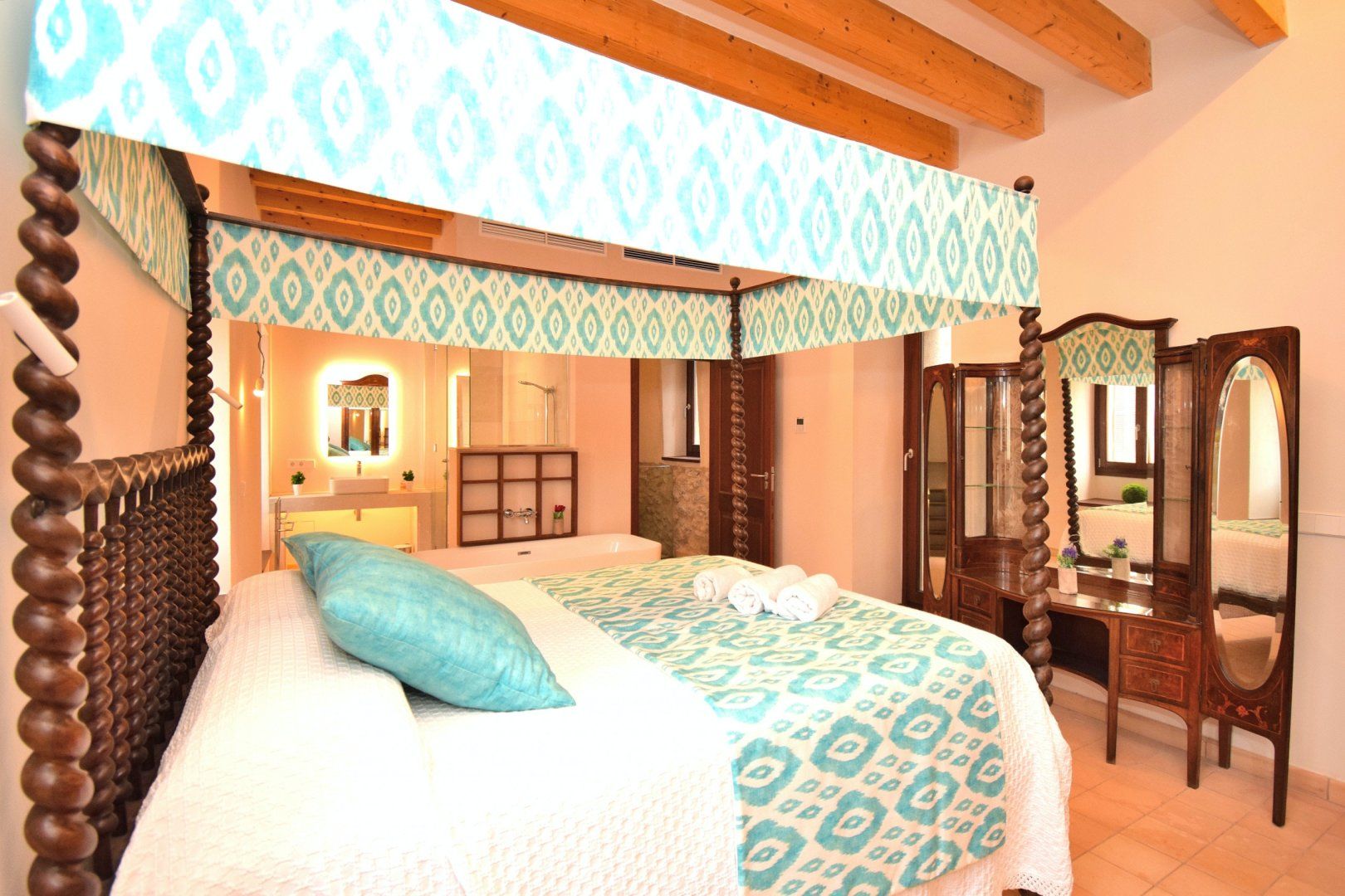 This home is situated in the heart of pretty Artà, a town just a few kilometres inland from the northeast coast of Mallorca. It’s surrounded by the mountains of the Llevant Natural Park, so has wonderful vistas. On Tuesdays, there’s a weekly market, which is known for its local pottery. Other attractions in the area include the Bronze Age Talaiotic settlement of Ses Païsses, the Sanctuary of Sant Salvador, and the Caves d'Arta.