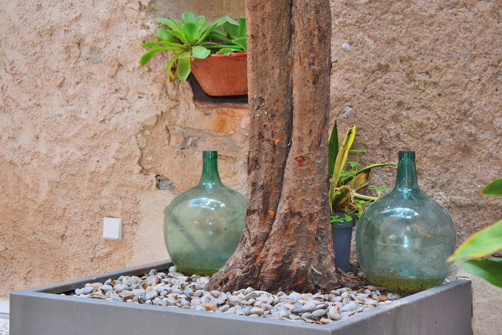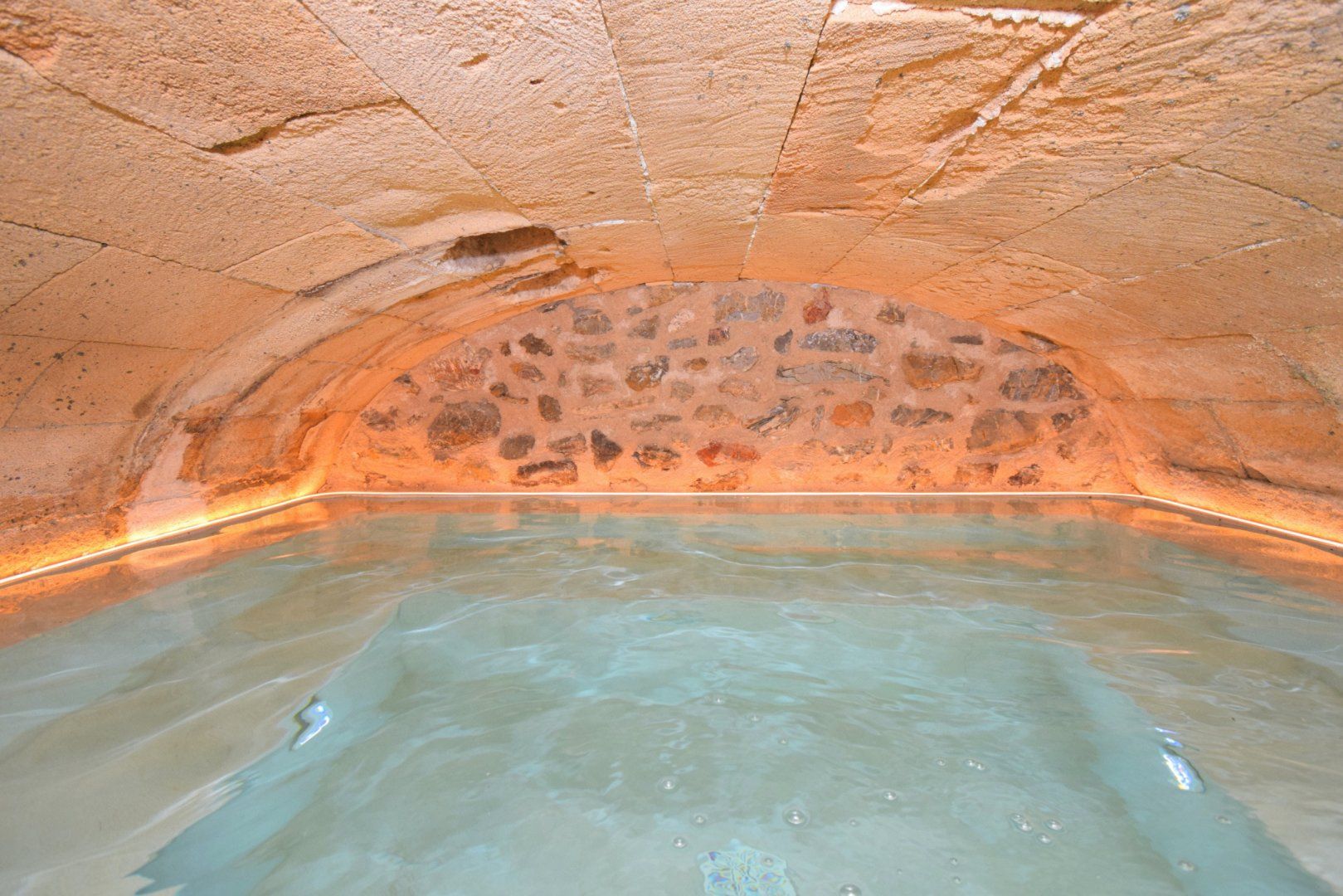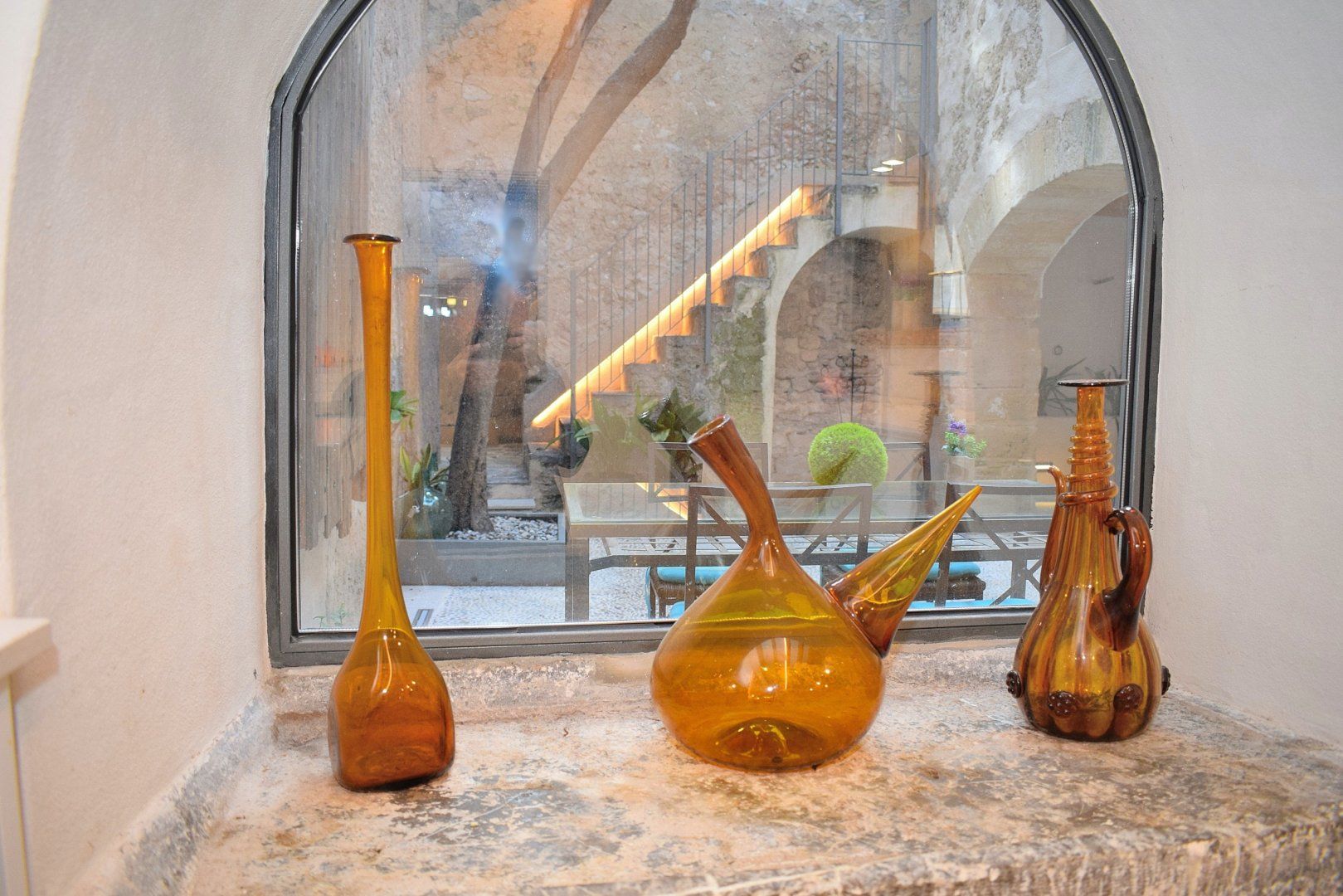 Surrounded by warm-hued stone, this home’s beautiful patio is a special space. Relax here with a glass of wine or cool off in the spa area with its small pool and water blade – it’s particularly magical in the evenings. There’s a roof terrace, too, with lovely views over picturesque Artá, perfect for unwinding in the Mallorcan sun.