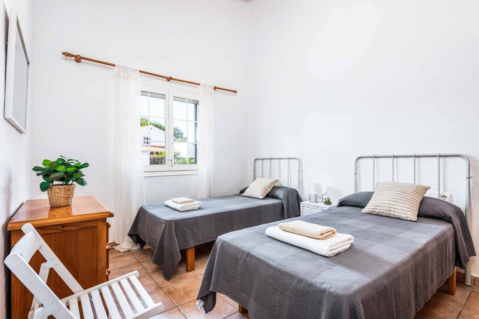 This villa lies in Binbeca, one of Menorca's most sought-after locations, a short walk from the nearest beach and restaurants. With a private pool lined with sun loungers, an outdoor dining area, and a garden with a basketball hoop, this home is great for a family getaway or a holiday with friends. A car isn't necessary to have a great time, but the island's capital Mahón is just a short drive away if you want to explore a little further afield.