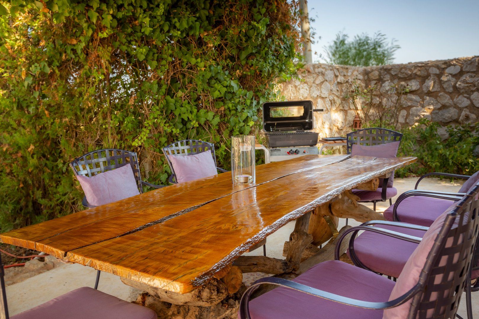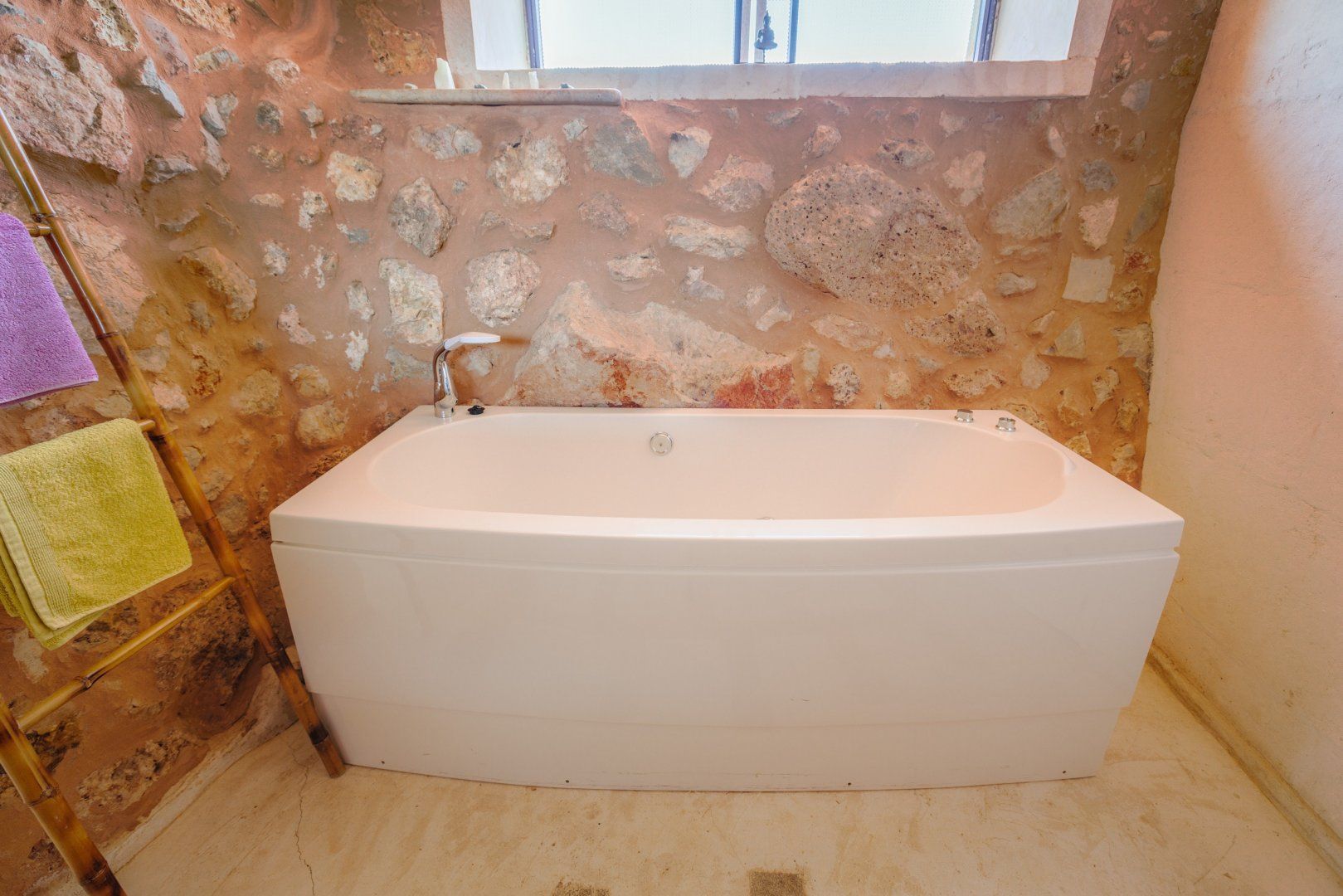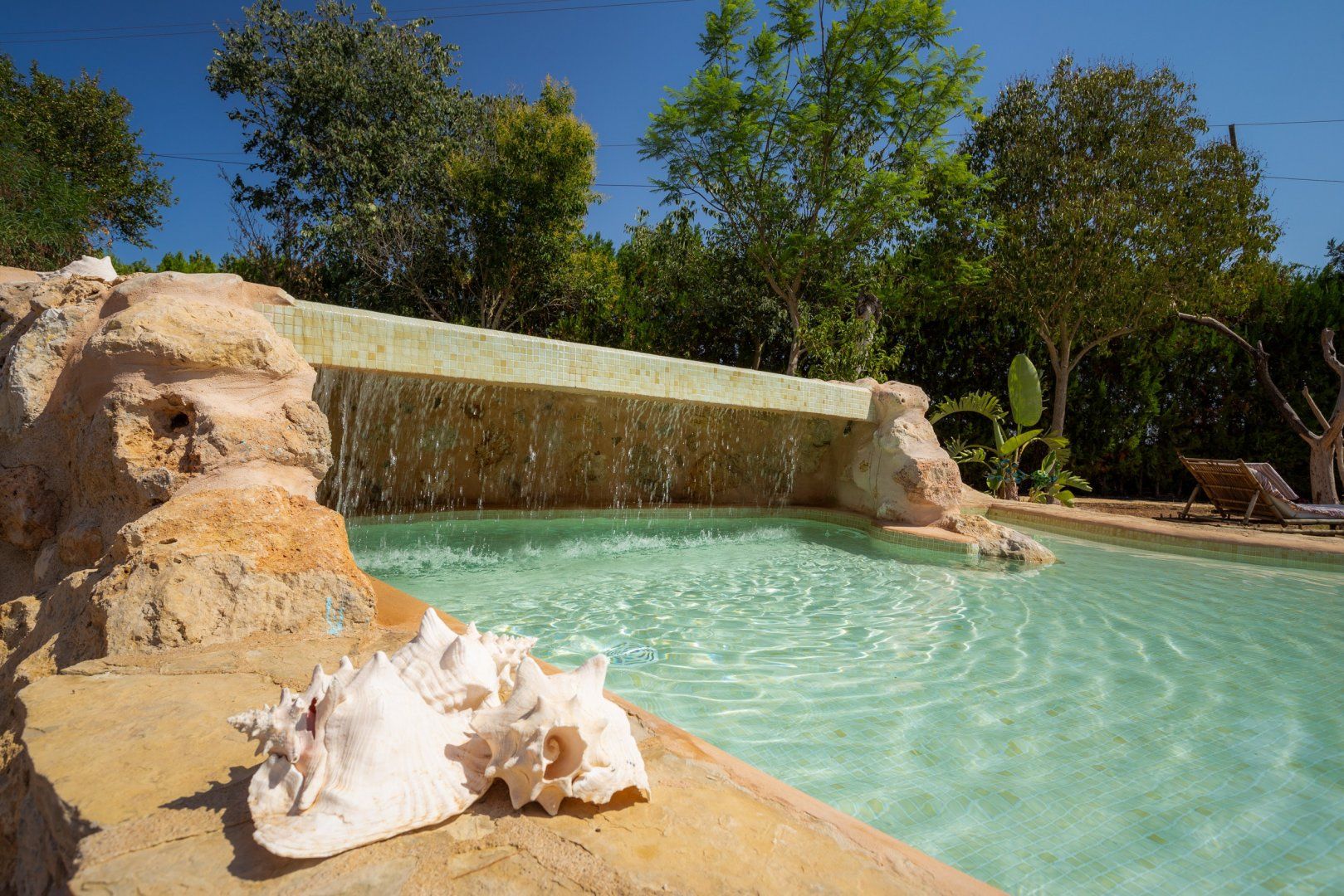 Outside, the sprawling terrace is the perfect spot to regroup with your brood. Share Mallorcan-inspired dishes around the dining table as the barbecue sizzles away. When you’re ready to take a break from the Mediterranean heat, make a beeline for the rock swimming pool and cool off under the waterfall. Or why not head for Muro Beach, less than a twenty-minute drive away, to bob about in the Balearic Sea.