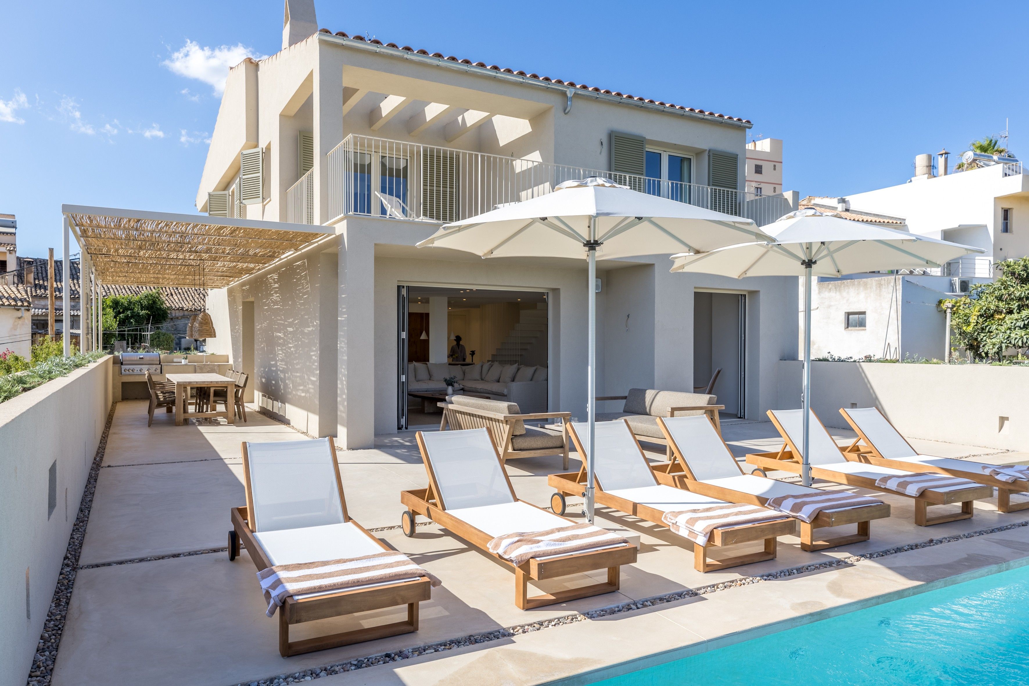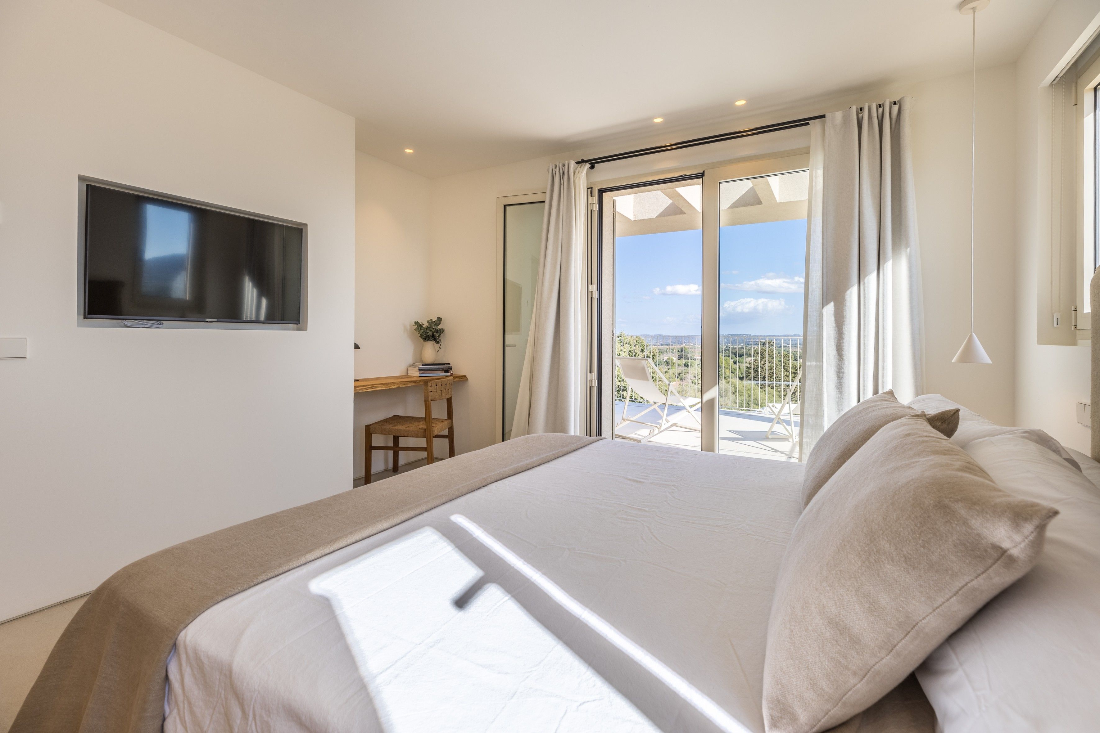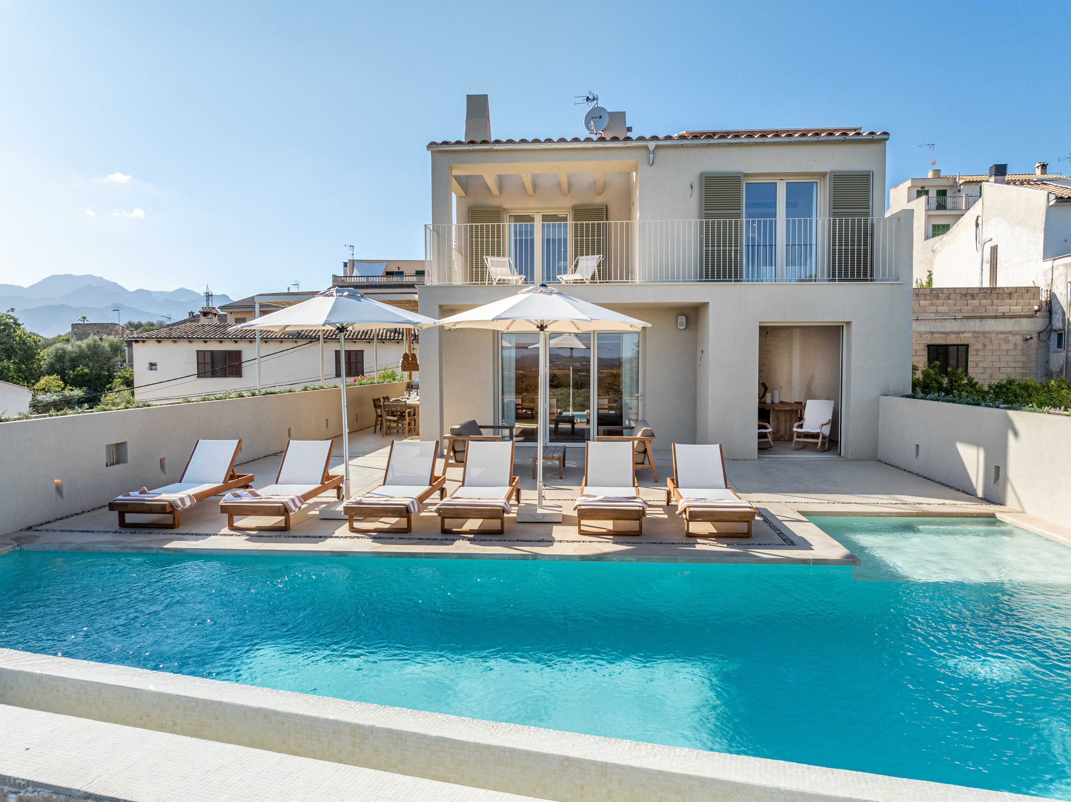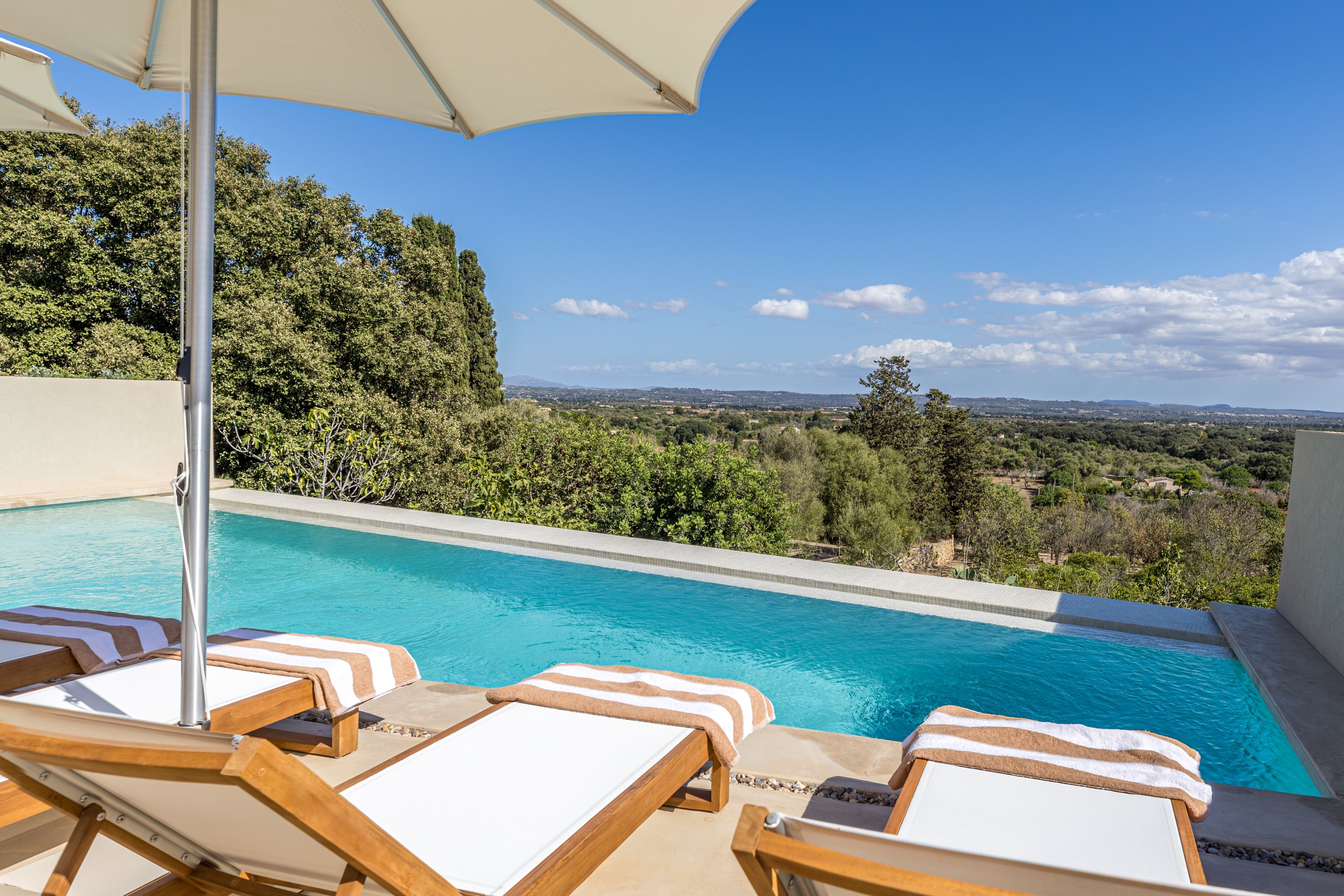 With vast countryside views, a private saltwater pool and peaceful rooms, this home hits all the right notes when it comes to a blissful island escape. There’s also a large terrace with an outdoor kitchen for dining alfresco and you’ll find each of the bedrooms comes with an en-suite bathroom – adding a wonderful sense of privacy. Parking is available for one car and you’ll find it’s just a short walk to the local cafes and restaurants of Búger. And for adventures further afield, it’s just a twenty-minute drive to the bay of Alcúdia and the nearest beaches.