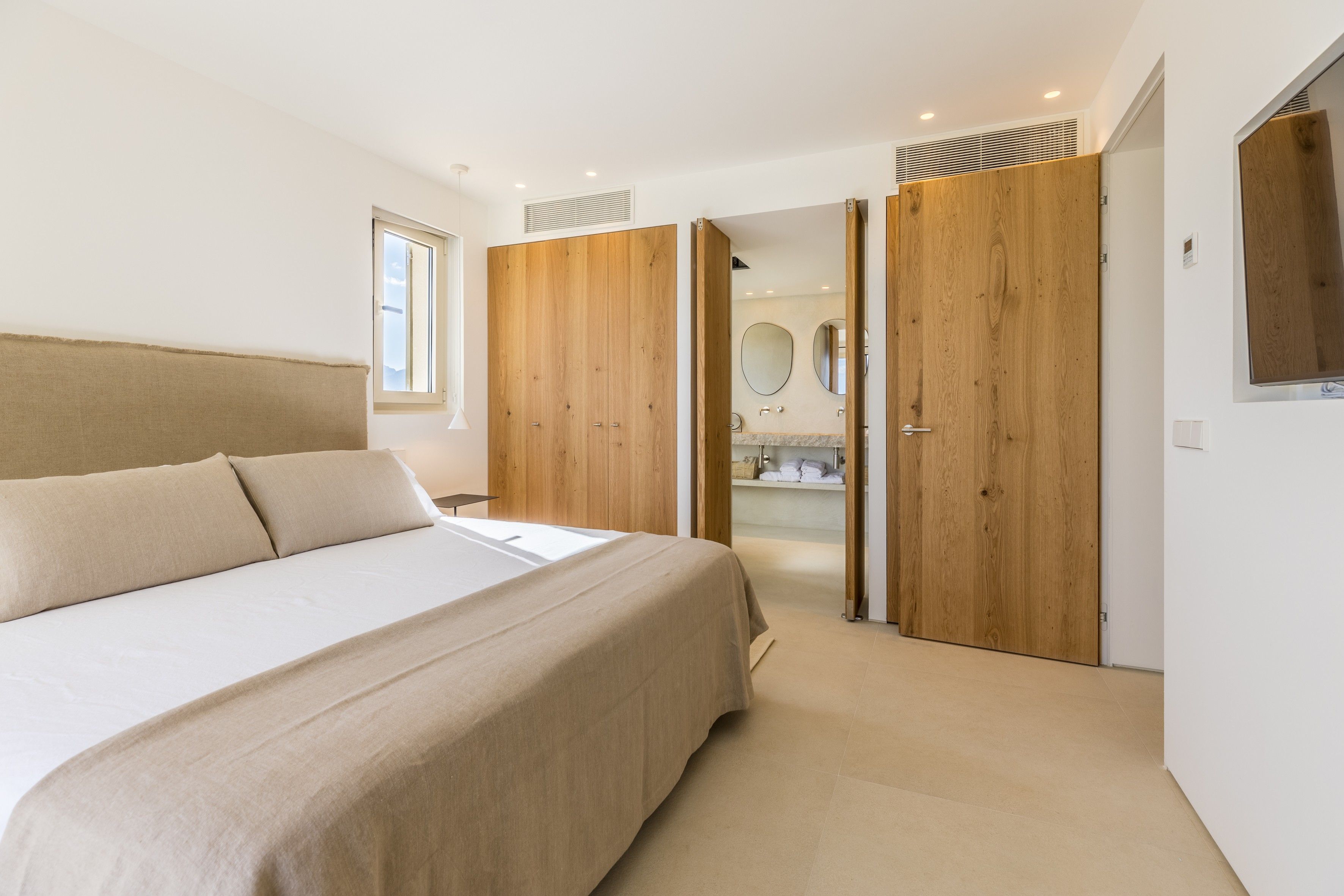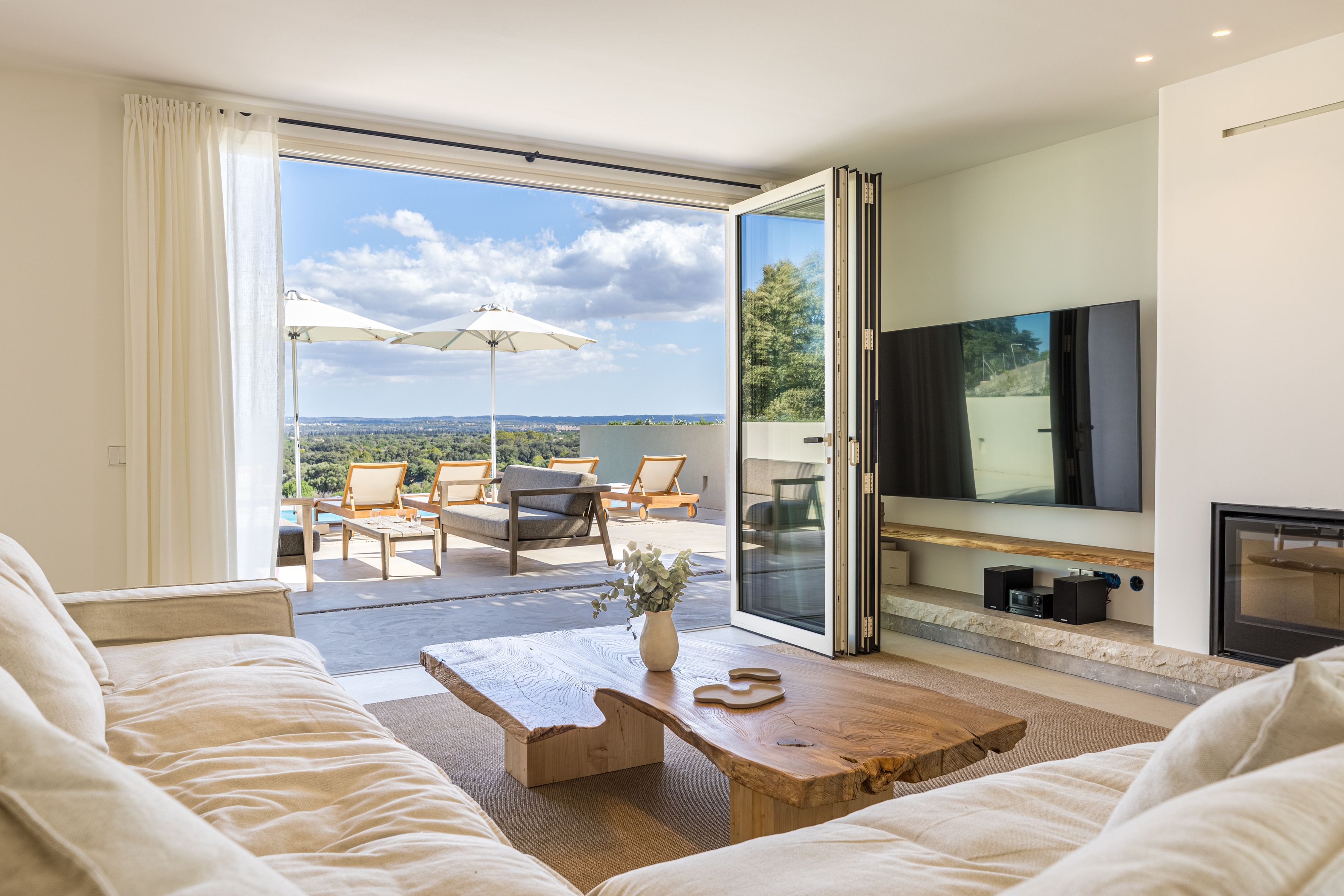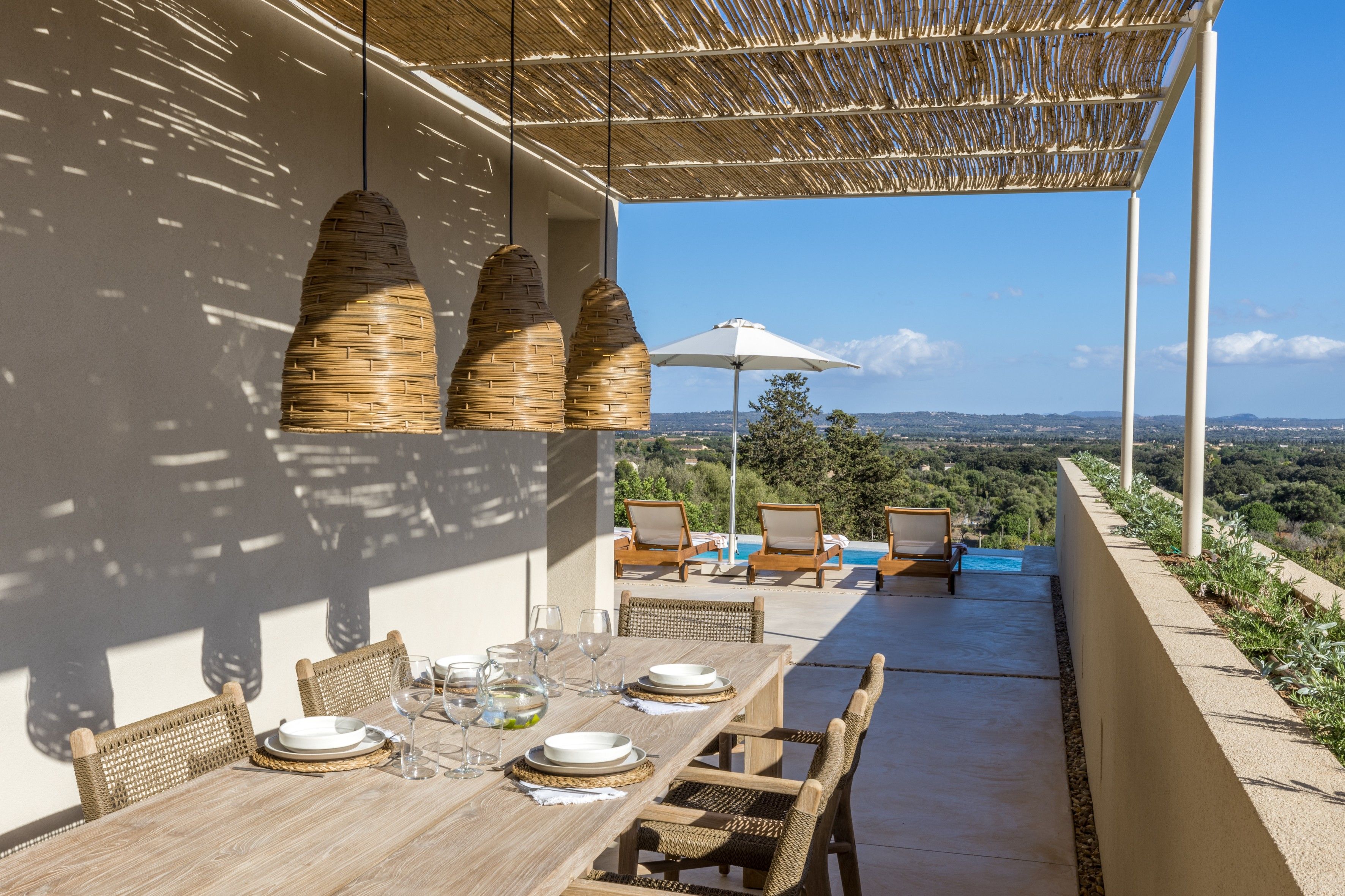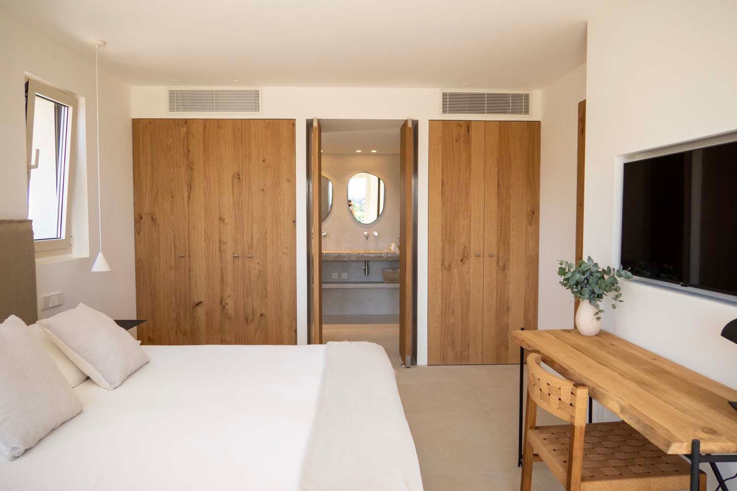 With vast countryside views, a private saltwater pool and peaceful rooms, this home hits all the right notes when it comes to a blissful island escape. There’s also a large terrace with an outdoor kitchen for dining alfresco and you’ll find each of the bedrooms comes with an en-suite bathroom – adding a wonderful sense of privacy. Parking is available for one car and you’ll find it’s just a short walk to the local cafes and restaurants of Búger. And for adventures further afield, it’s just a twenty-minute drive to the bay of Alcúdia and the nearest beaches.