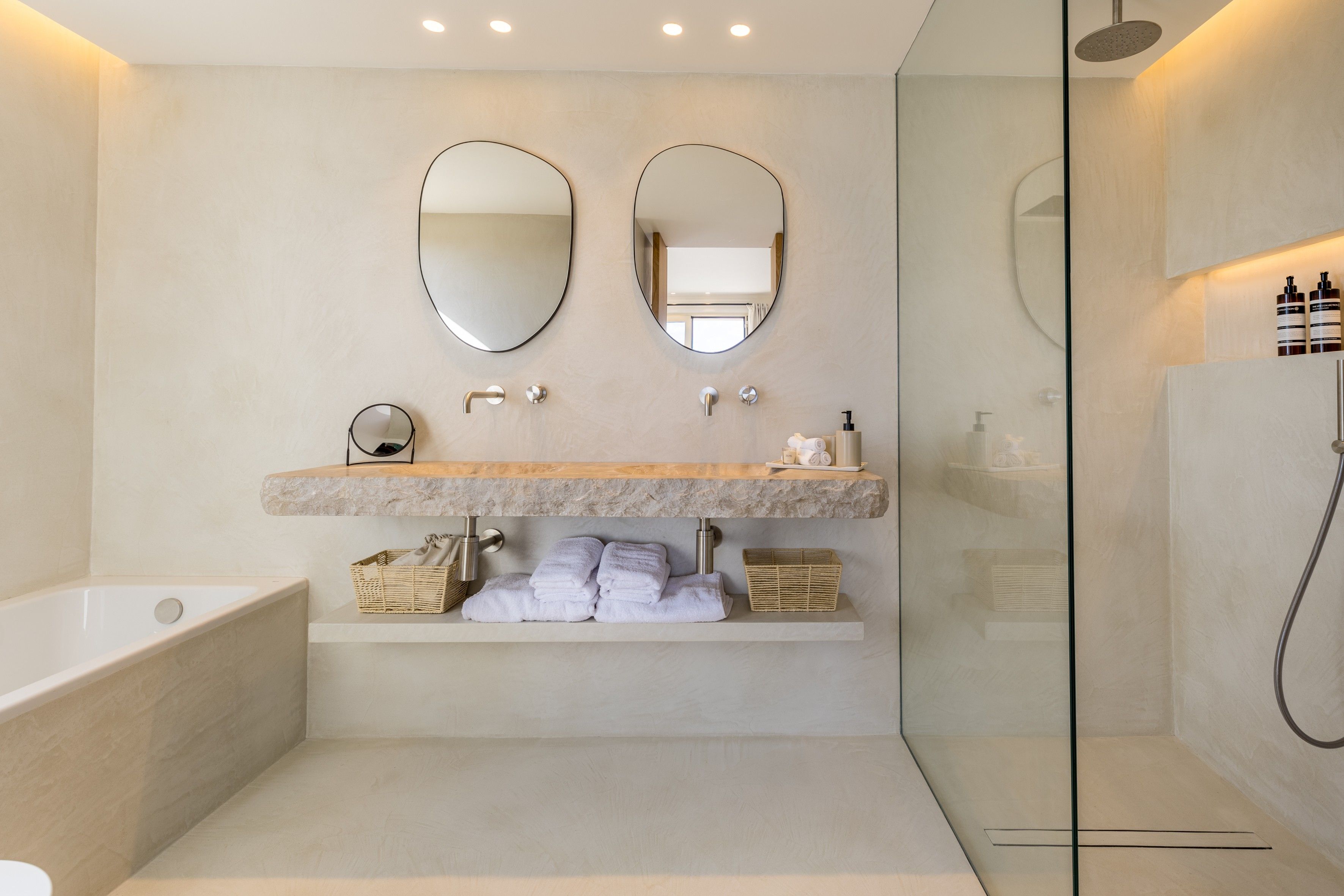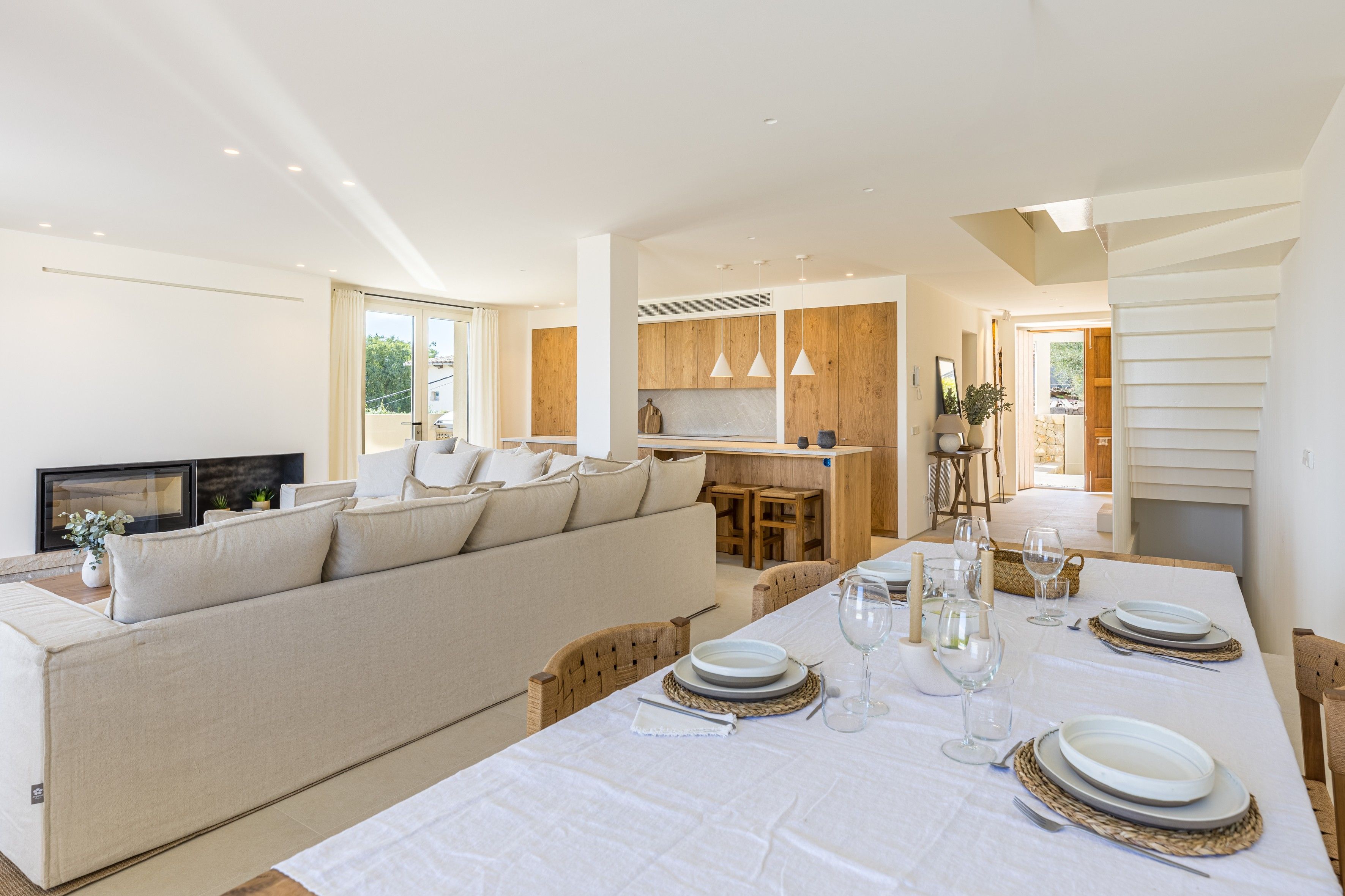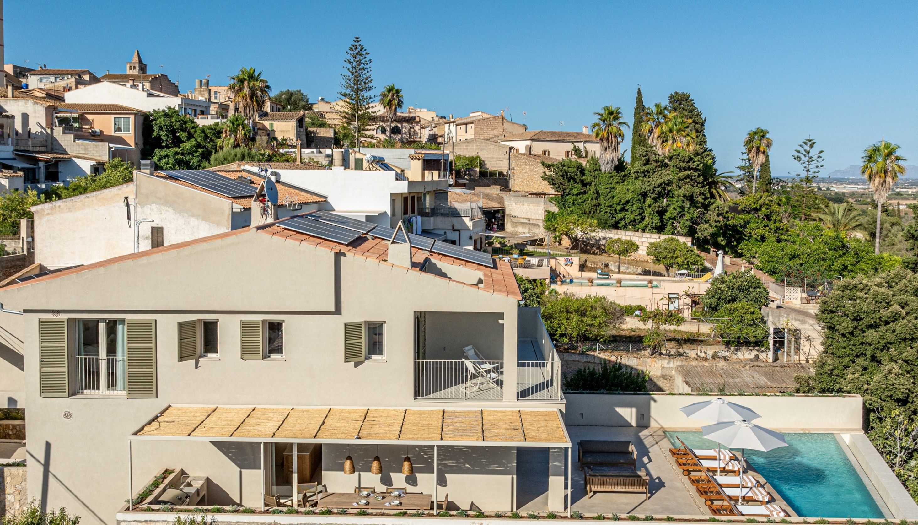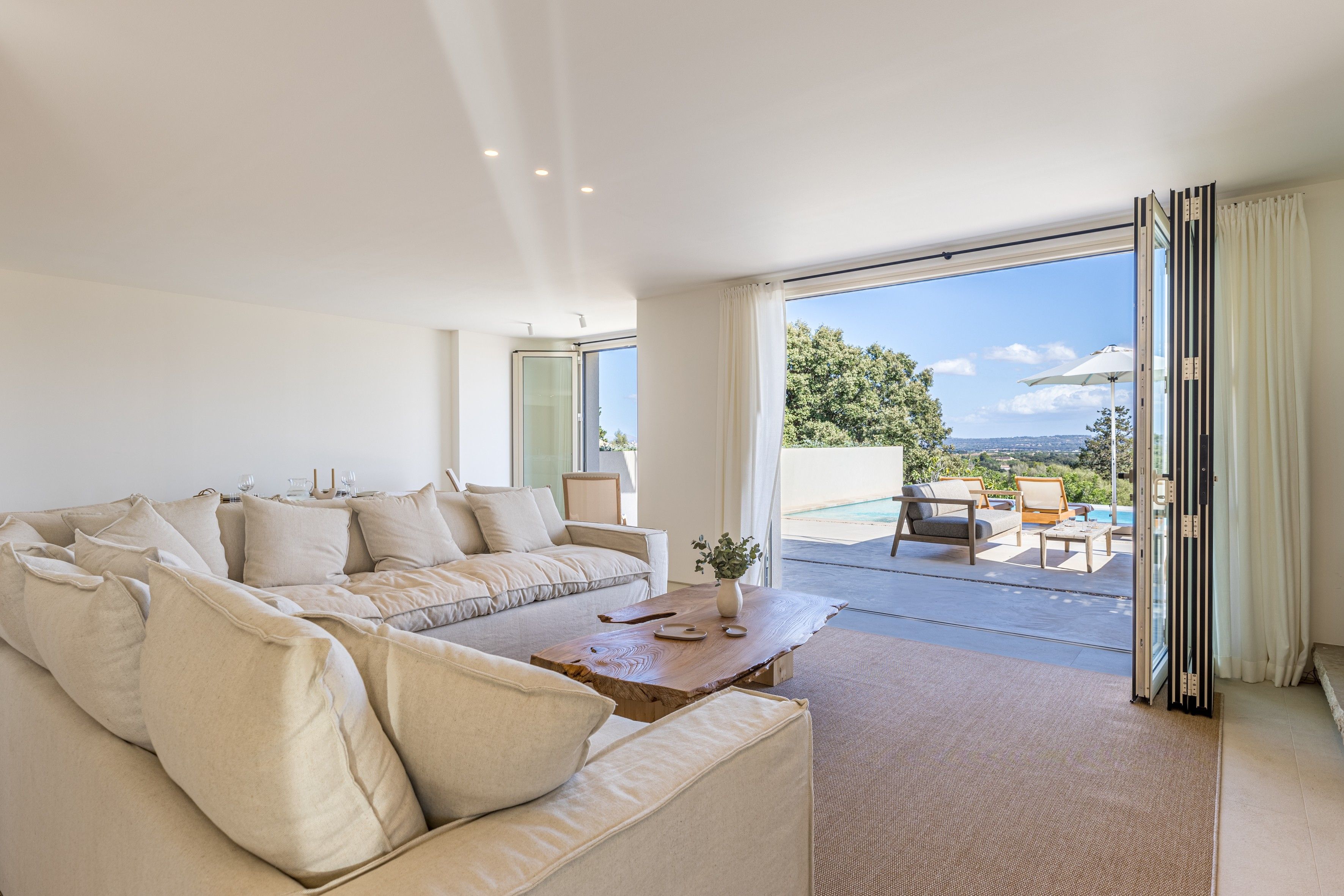 With vast countryside views, a private saltwater pool and peaceful rooms, this home hits all the right notes when it comes to a blissful island escape. There’s also a large terrace with an outdoor kitchen for dining alfresco and you’ll find each of the bedrooms comes with an en-suite bathroom – adding a wonderful sense of privacy. Parking is available for one car and you’ll find it’s just a short walk to the local cafes and restaurants of Búger. And for adventures further afield, it’s just a twenty-minute drive to the bay of Alcúdia and the nearest beaches.