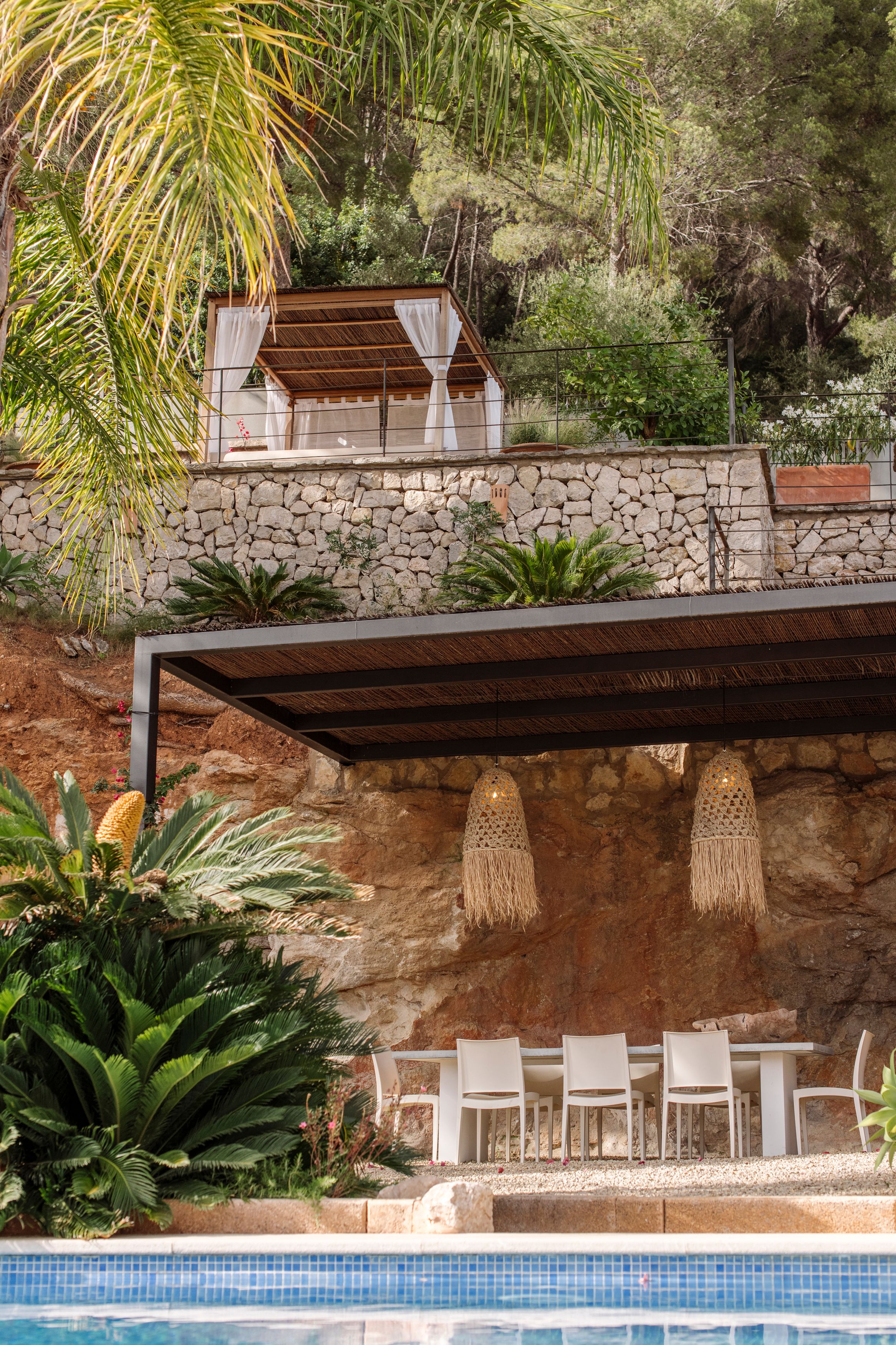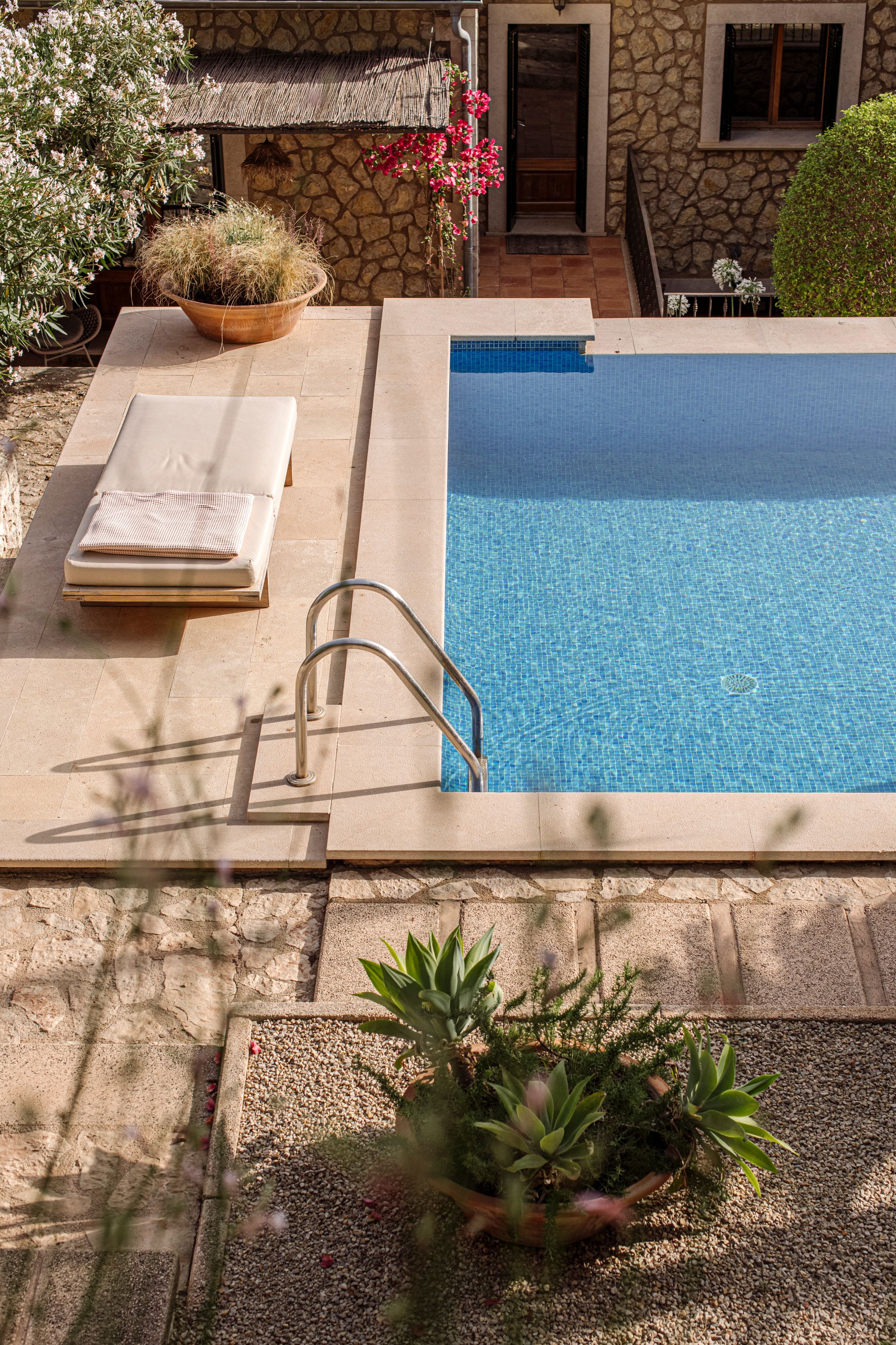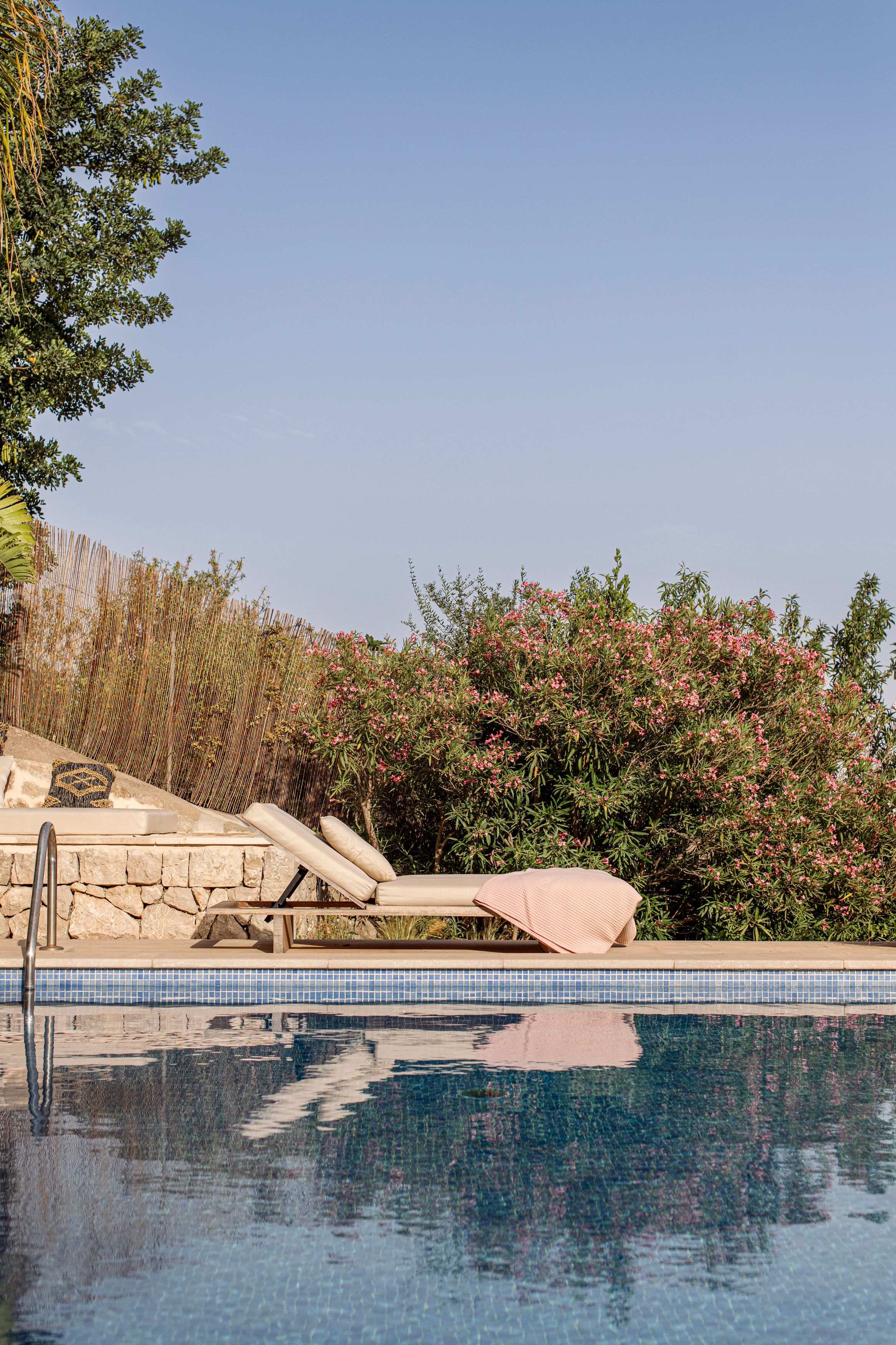 This beautiful villa is in the heart of Caimari in the foothills of the Tramuntana Mountains. It’s a fabulous holiday home for a peaceful family escape, in an excellent spot for cycling. The garden is spread between different terraces, from which you can admire views of the surrounding landscape. We love the private pool and the Balinese daybeds around it, as well as the pergola with a shaded dining table – there’s a barbecue and fire pit, too. The home is filled with art and sculptures – there’s something to admire at every turn.