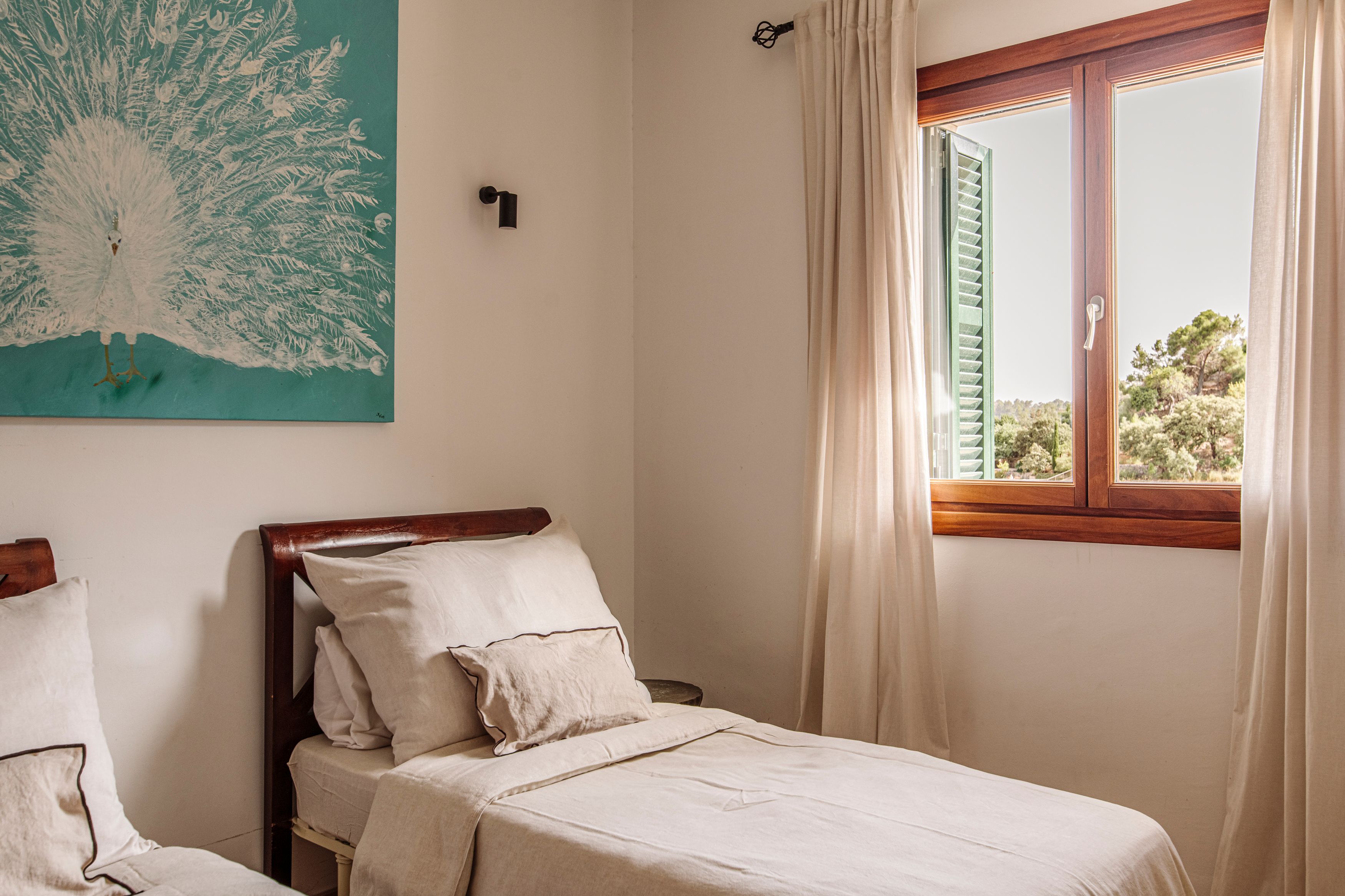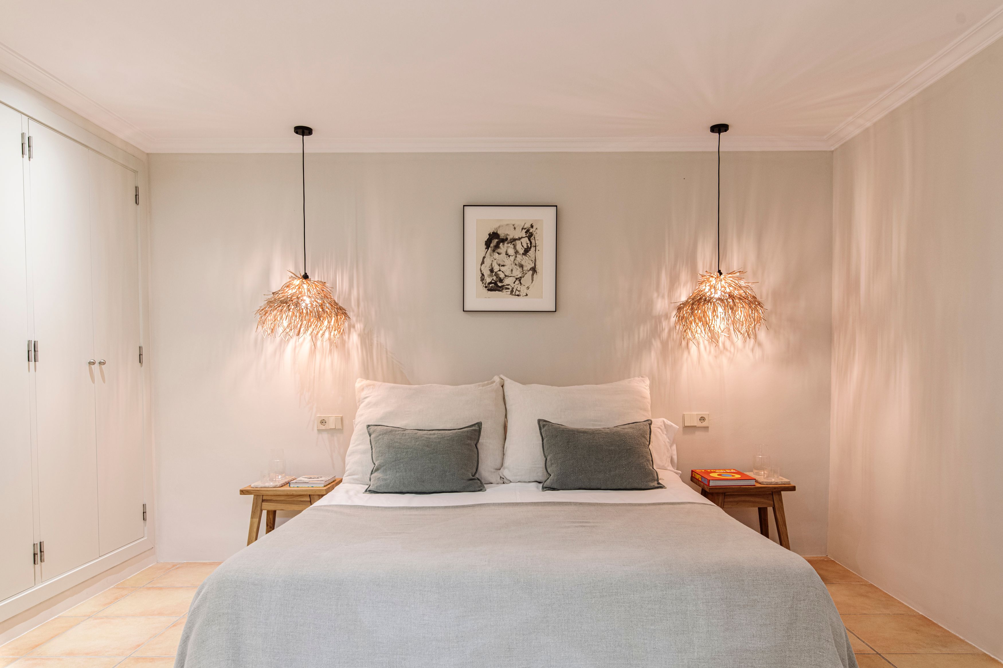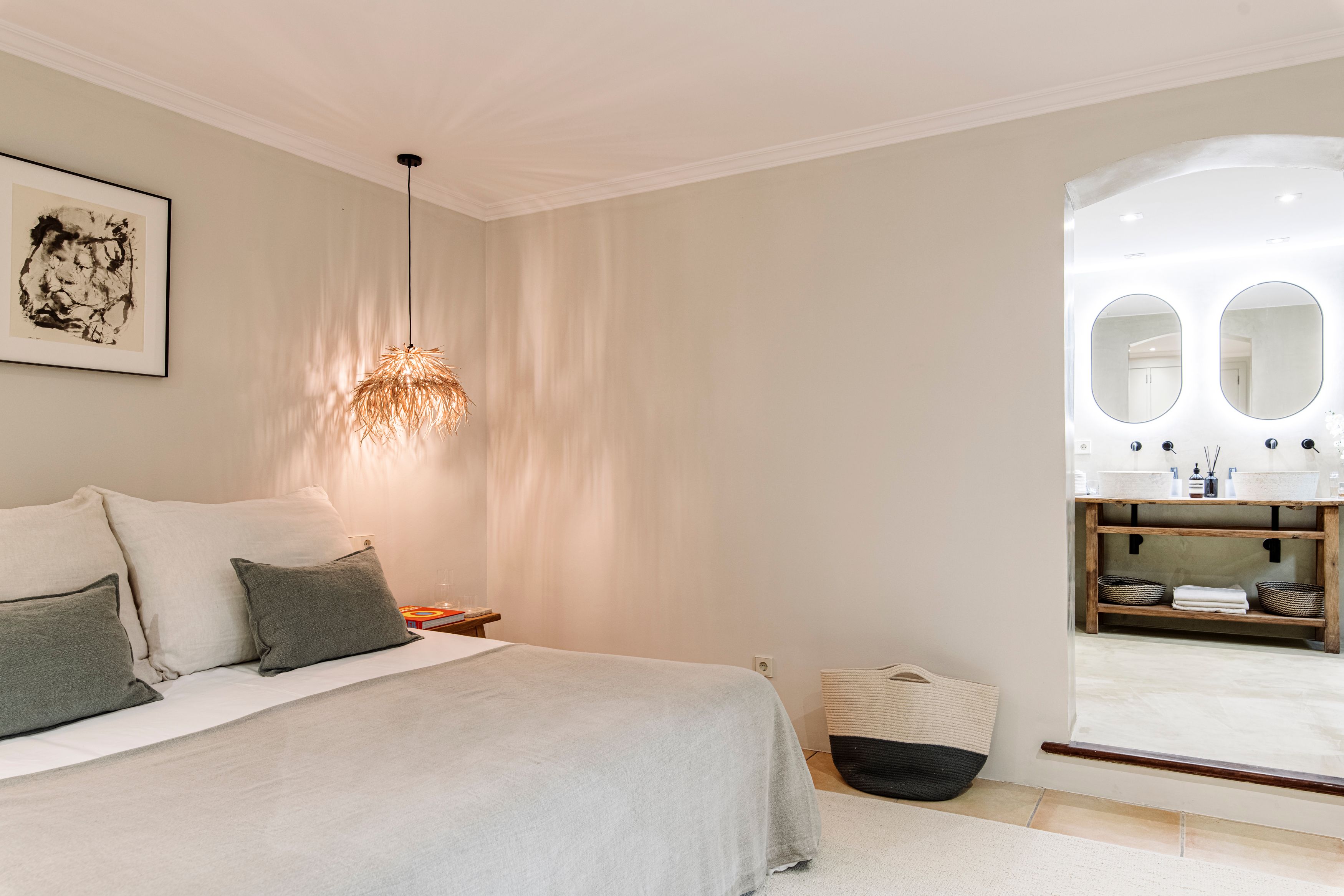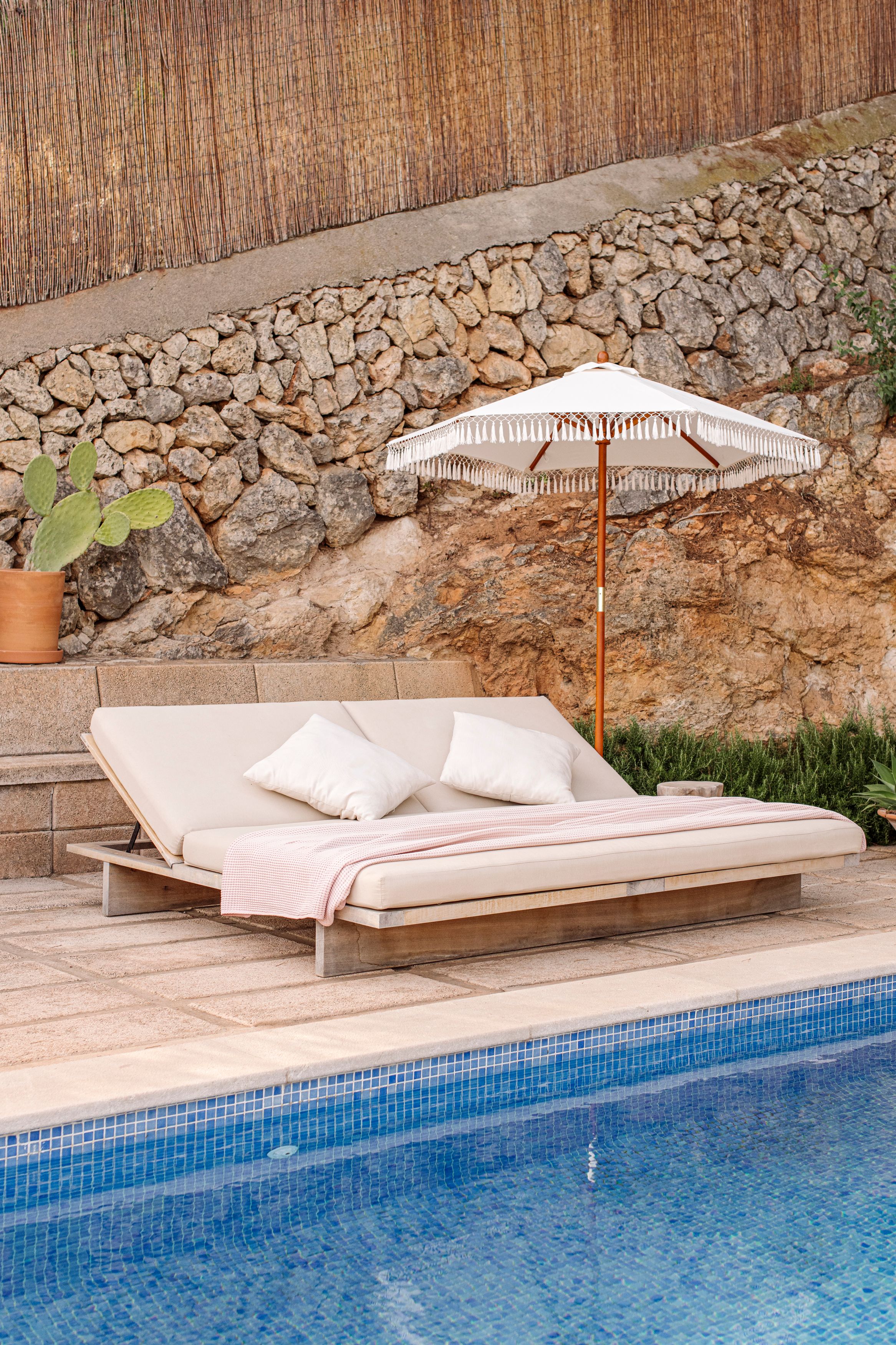 This beautiful villa is in the heart of Caimari in the foothills of the Tramuntana Mountains. It’s a fabulous holiday home for a peaceful family escape, in an excellent spot for cycling. The garden is spread between different terraces, from which you can admire views of the surrounding landscape. We love the private pool and the Balinese daybeds around it, as well as the pergola with a shaded dining table – there’s a barbecue and fire pit, too. The home is filled with art and sculptures – there’s something to admire at every turn.