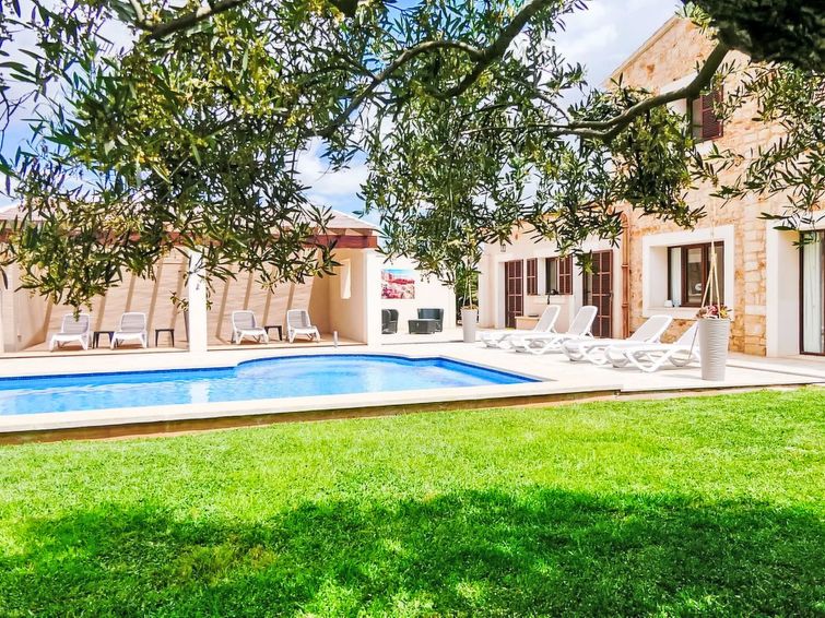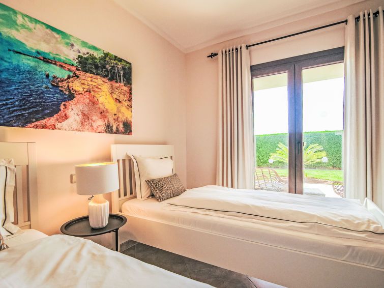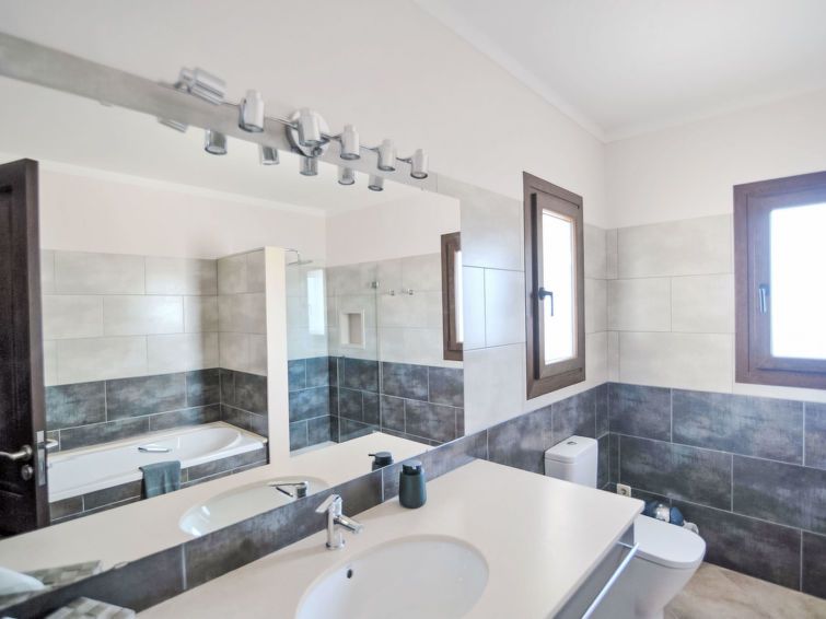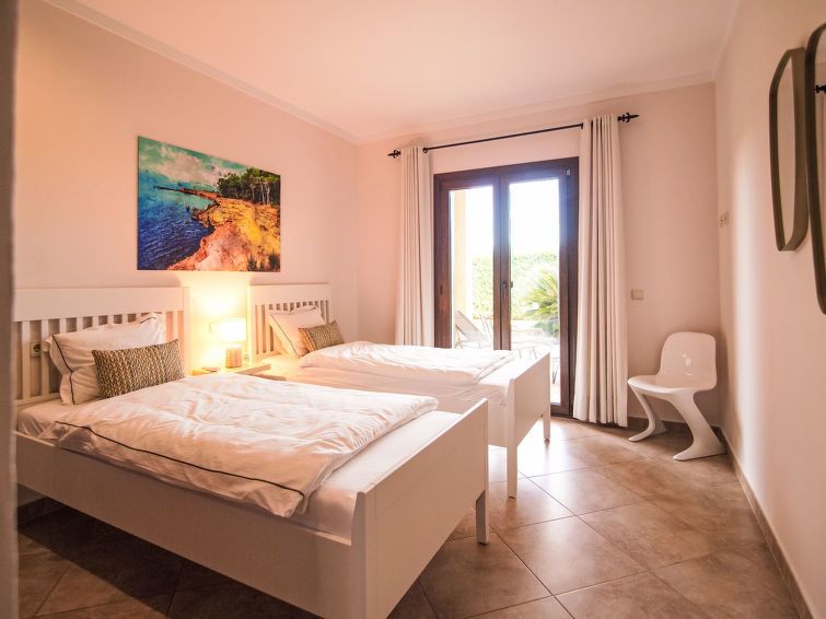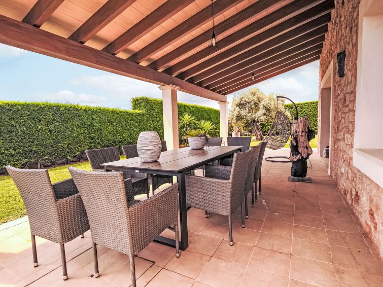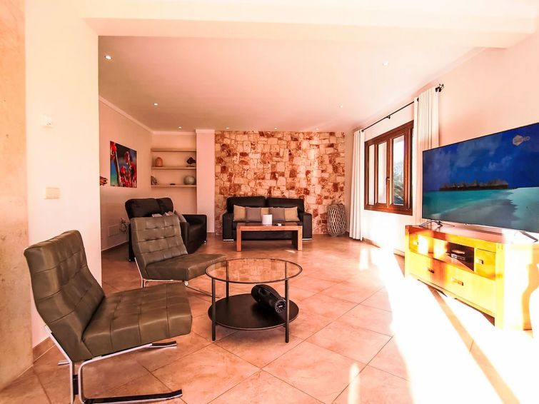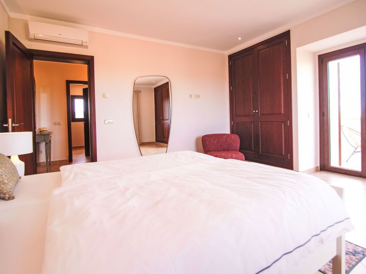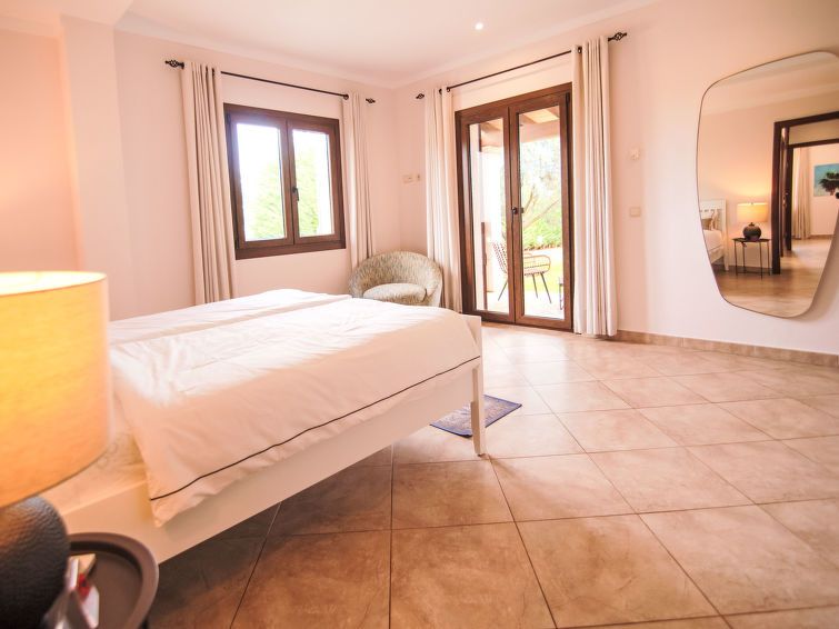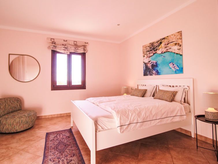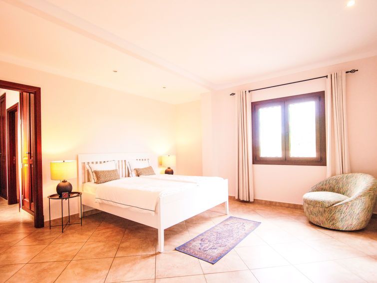 "Finca del Sol", 6-room villa 200 m2. Object suitable for 5 adults + 4 children. Spacious and bright, modern and romantic furnishings: dining room. Exit to the patio, to the swimming pool. Living room with satellite TV. Exit to the garden, to the swimming pool. 1 double bedroom with 1 french bed (1 x 150 cm, length 200 cm), air conditioning and forced-air heating.