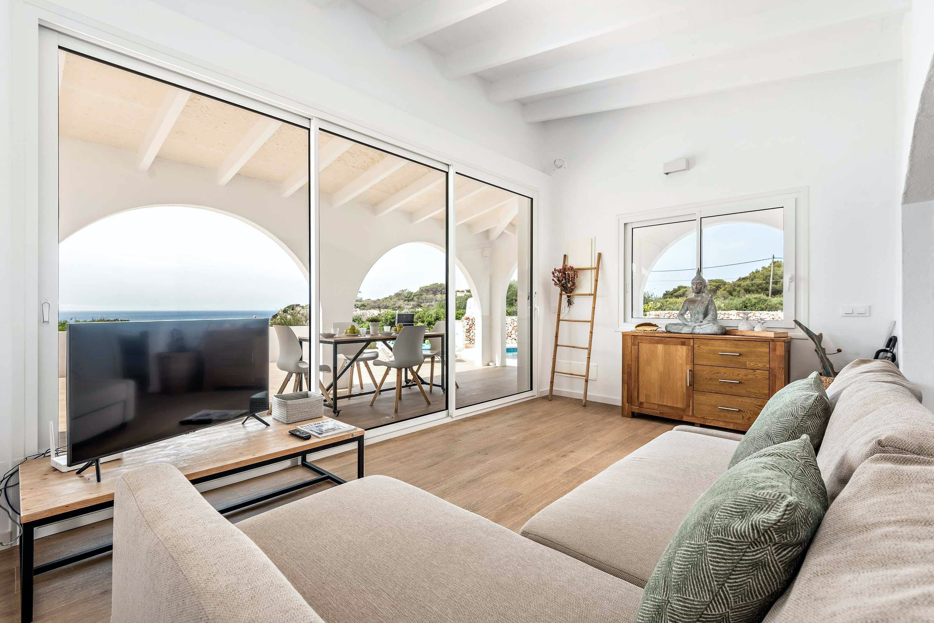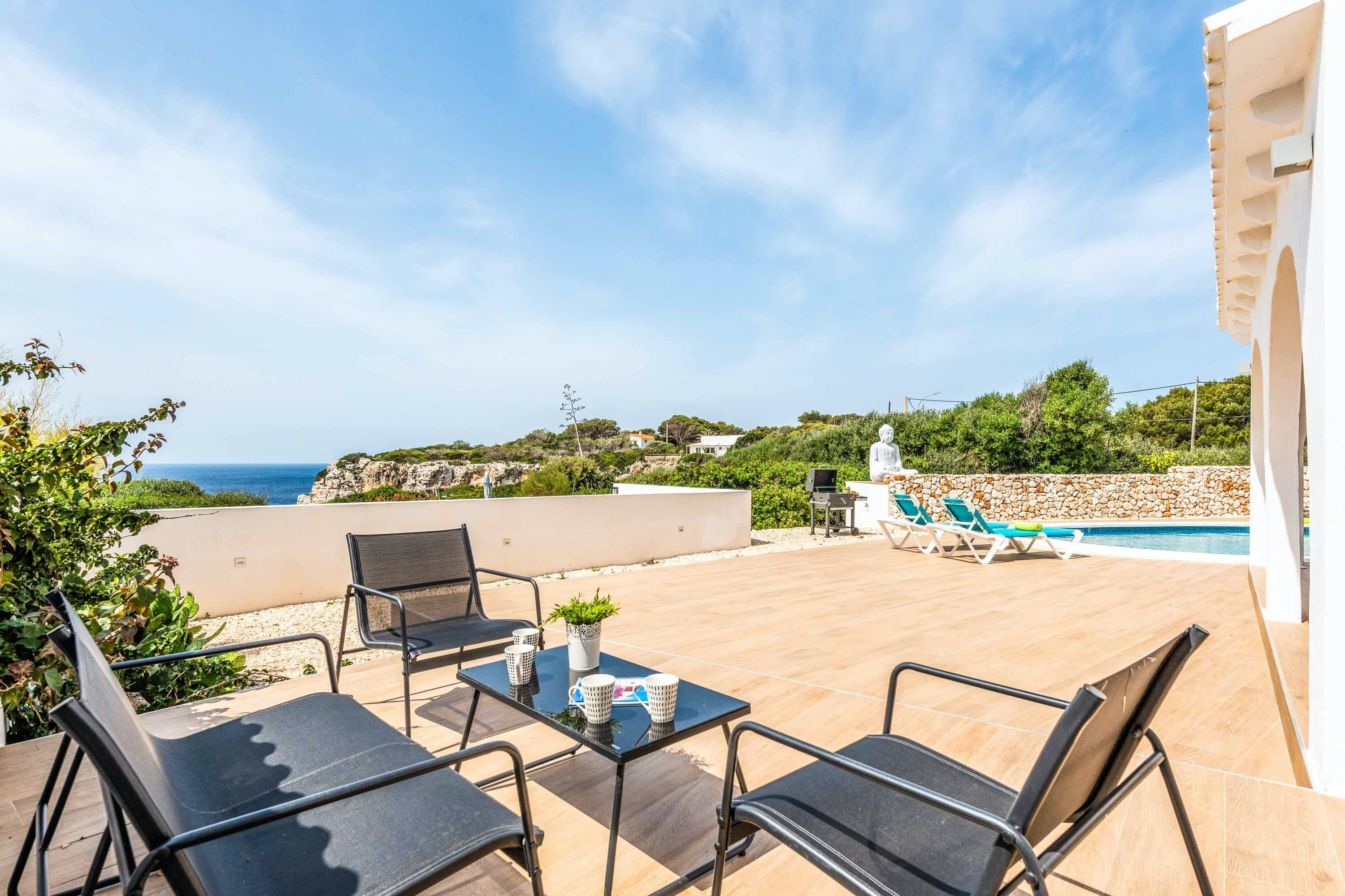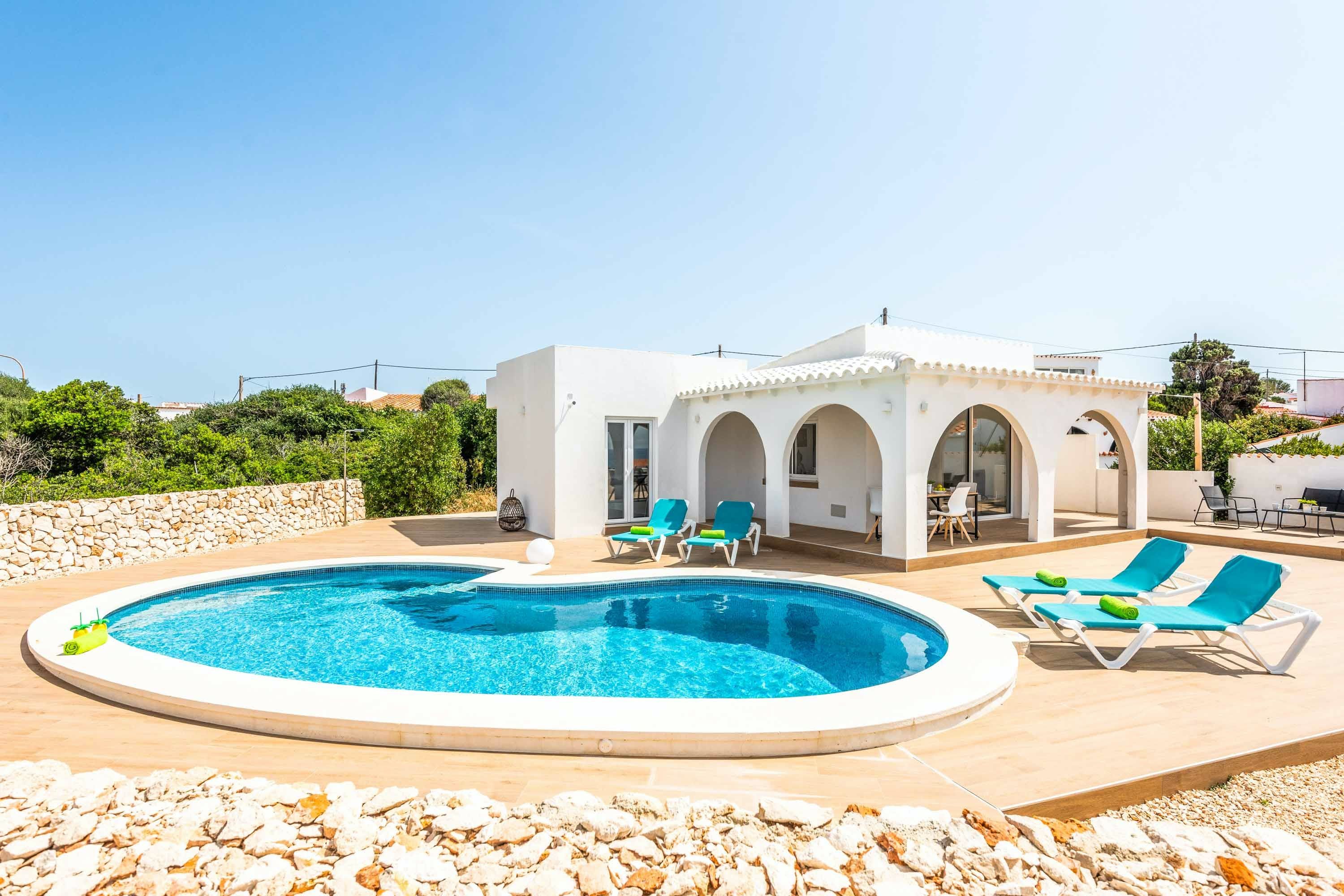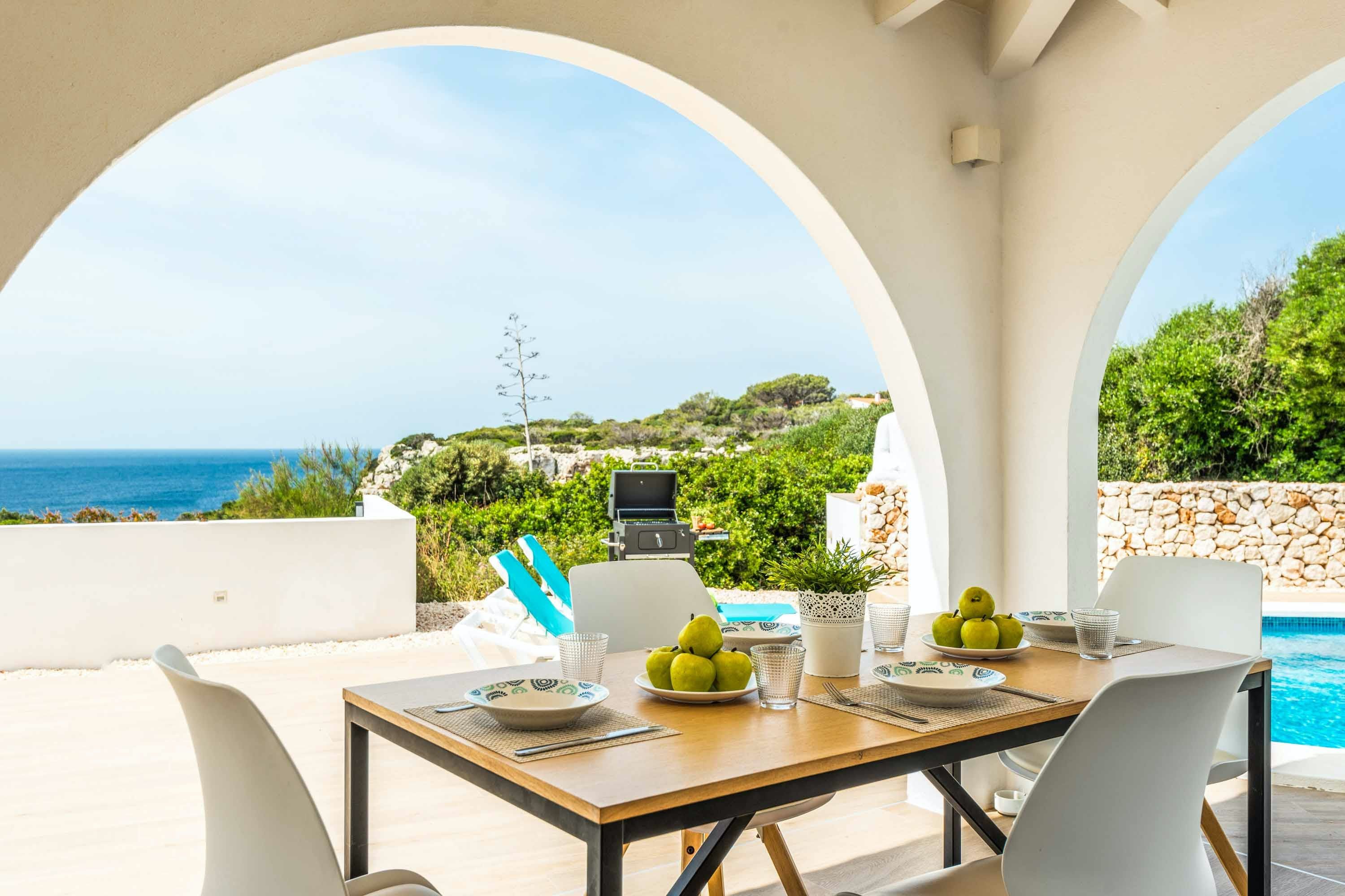 This compact white-washed villa is moments from the southern cliffs of Menorca, offering marvellous sea views from its distinctive pool area. As an aesthetic space, it's not exactly heaving with furnishings, opting for functionality over character – the kitchen is particularly sparse, crammed into a space that will struggle to fit more than one determined chef. The bedrooms are perfectly cosy however, with one offering direct access to the south-facing patio. Beyond the pleasant swimming pool, outdoors also offers a choice of seating areas including a dining table overlooking the Balearic, plus a grill perfect for social barbeques. You'll also have easy access to the resort of Cala en Porter, with shops, restaurants and beach bars less than ten minutes away.