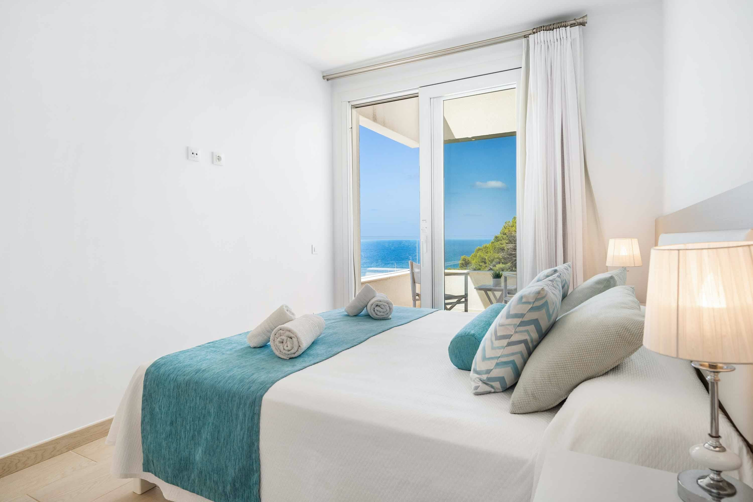 You’ll get the best of both worlds here – a ten-minute stroll to the beach, and a spectacular view of the Mediterranean from almost every room. On top of that, this villa has something for everyone – kids will love the ping-pong table and toy slide on the lawn, while adults can relax with a glass of wine on a sun lounger. Inside, there’s plenty of room, with a bathroom for each bedroom – the jacuzzi bath overlooking the private balcony and the surrounding bay is a particular highlight. As well as the beach, the town of Serpentona is right on your doorstep – just a few minutes and you’ll reach the main street with its restaurants and cafes.