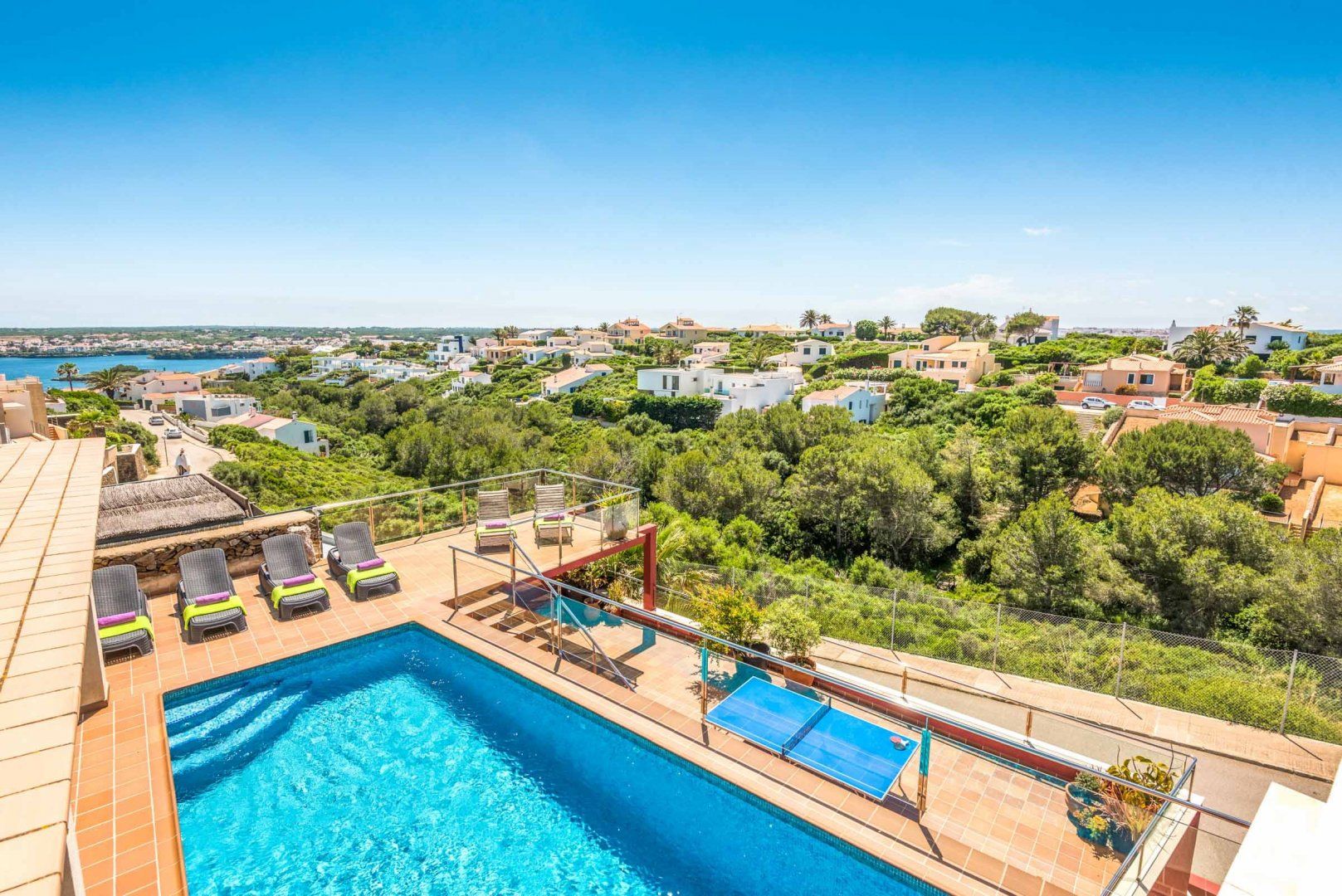 Perched overlooking the town of Cala Llonga and across to Mahon harbour with the Mediterranean seascape in the background – this scenic spot invites guests to soak up the Menorcan sunshine while reconnecting with nature. The outdoor living set-up is the home's best highlight, with a swimming pool, alfresco dining area and poolside loungers welcoming guests to make the most of the surrounding natural beauty. While the blend of modern and classic interior designs might not be to everyone's taste – the space promises a fuss-free stay dedicated to comfort and convenience. You'll find the capital Mahon and its array of shops, bars and restaurants only a ten-minute drive away, alongside the local beaches, also reachable within a short driving distance.