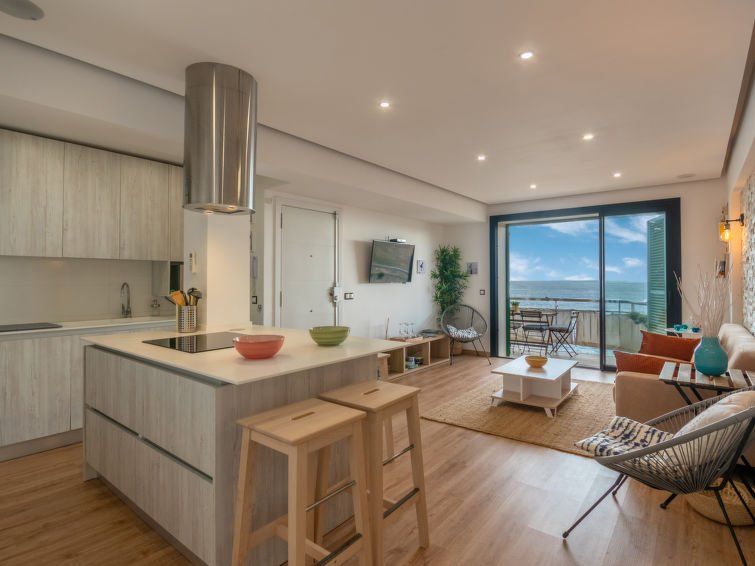"S'Illot-Cala Morlanda", 4-room apartment 73 m2 on 2nd floor. Object suitable for 5 adults. Fully renovated in 2020, modern and tasteful furnishings: living/dining room with satellite TV, digital TV, flat screen, air conditioning and forced-air heating. Exit to the balcony. 1 room with 1 bed (90 cm, length 200 cm), air conditioning and forced-air heating.