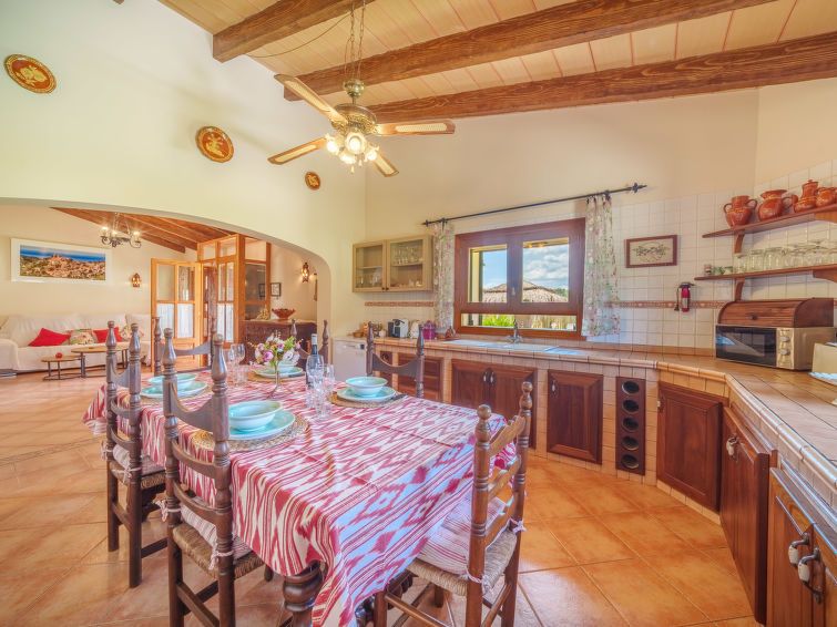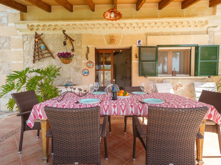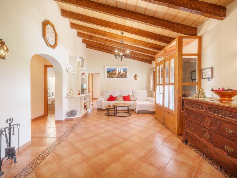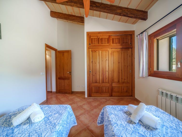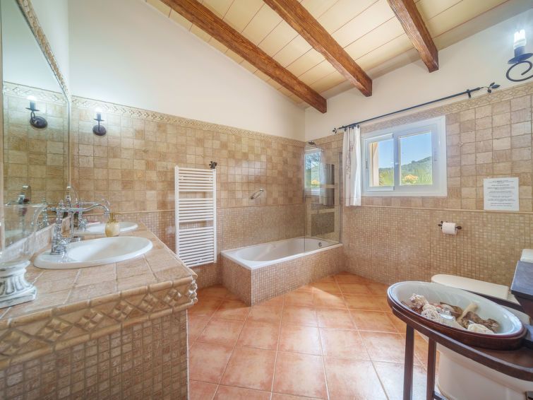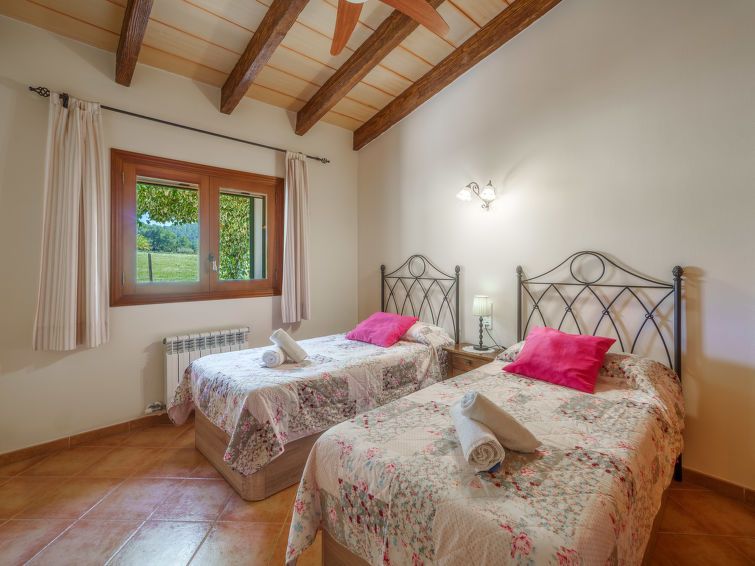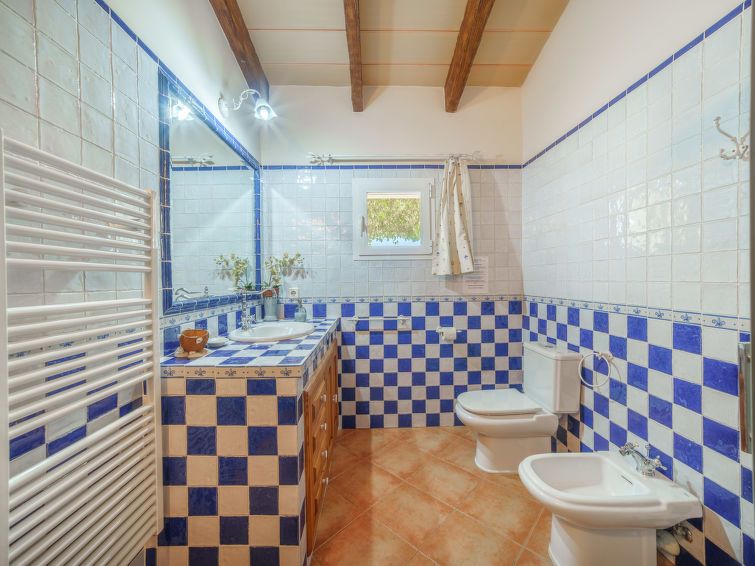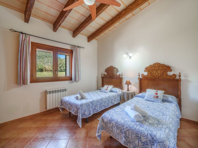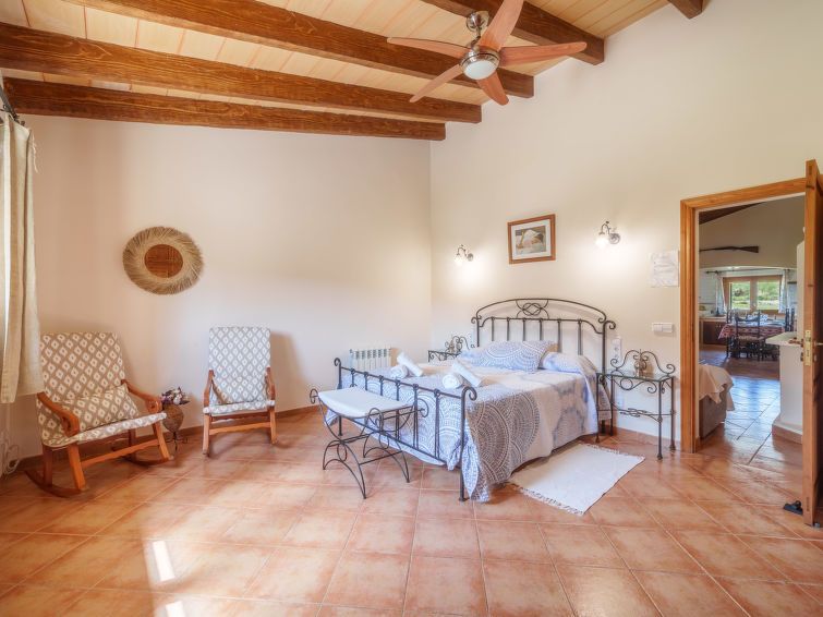 "Paratge de Fangar", 4-room cottage 150 m2, lower ground floor. Object suitable for 6 adults. Spacious and bright, practical and comfortable furnishings: open large living/dining room with open-hearth fireplace, digital TV, flat screen and fan. Exit to the patio. 1 double bedroom with panoramic window with 1 french bed (150 cm, length 200 cm), bath/bidet/WC, double hand-basin and fan.