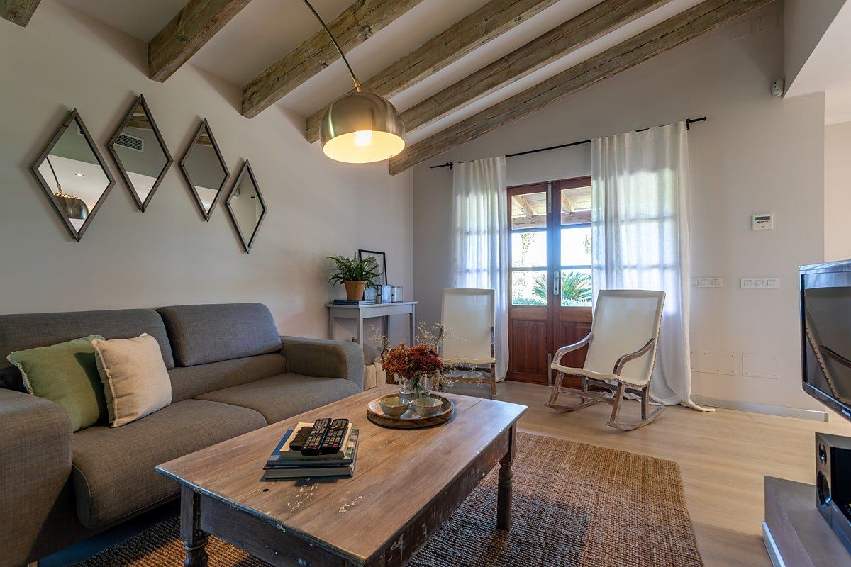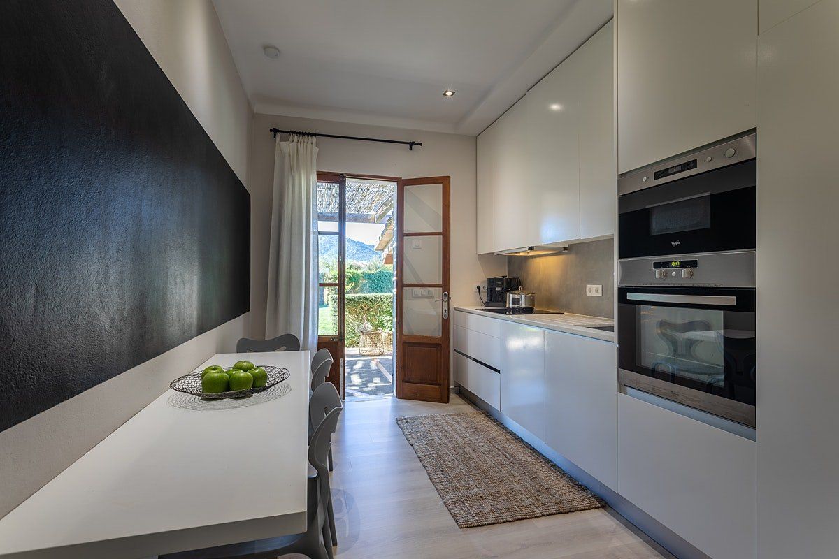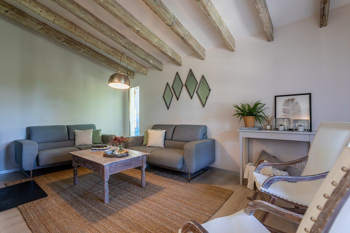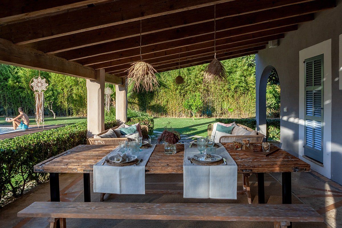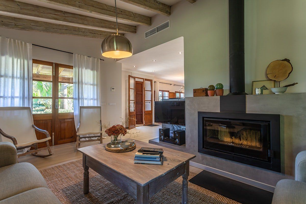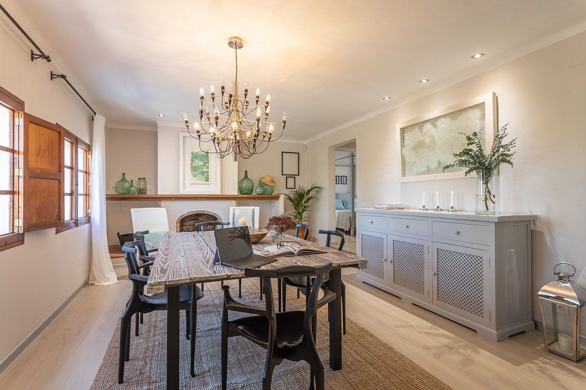 Located just outside the charming town of Campanet, it's the perfect setting to experience the magic of island living. Inside, the interiors are rustic and simple with traditional features that add character and depth. It's a dynamic space made for socialising and enjoying gatherings around the table or outside by the pool. But it’s also a wonderful place to retreat with a book and simply savour the quiet beauty of this location.