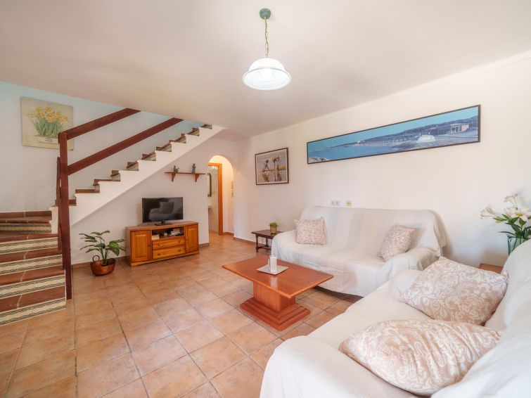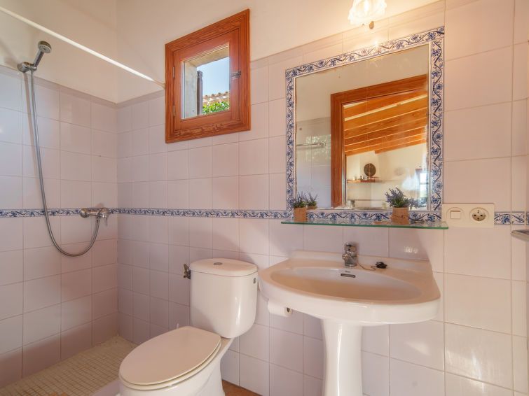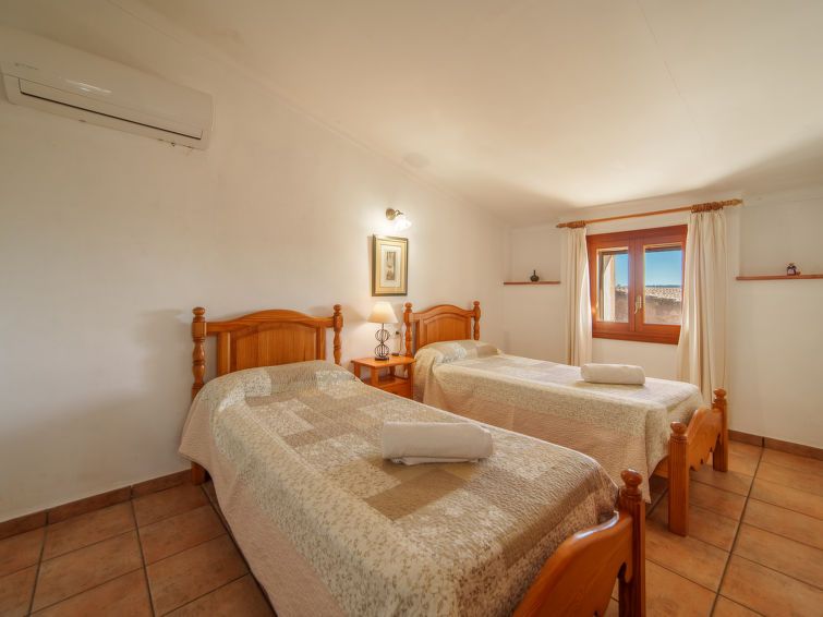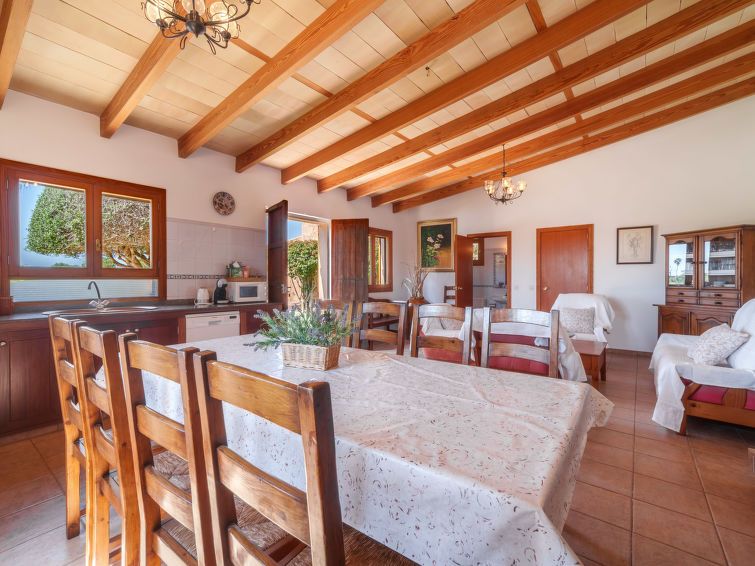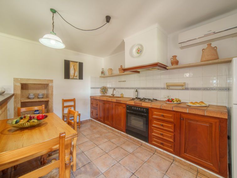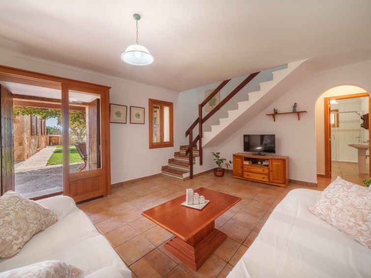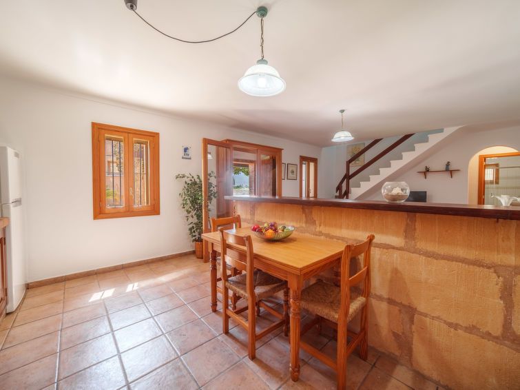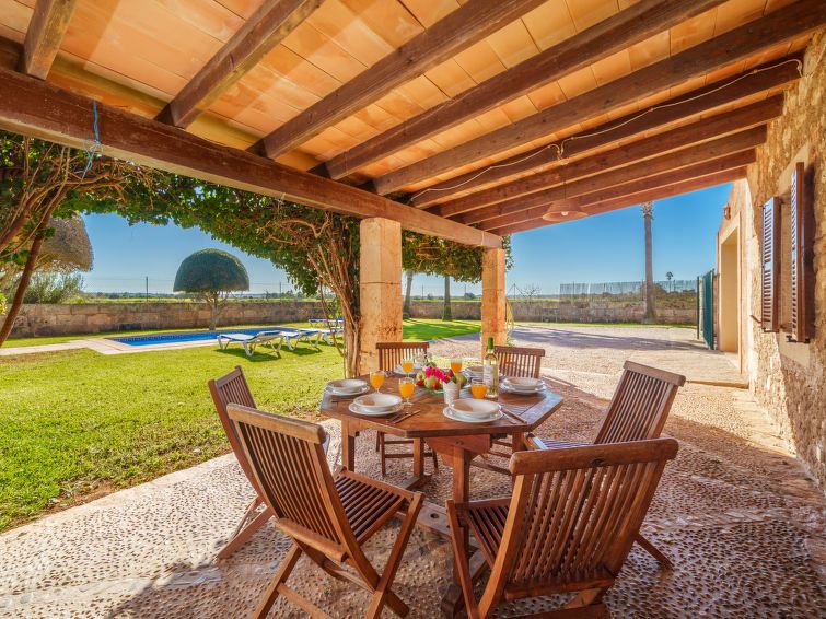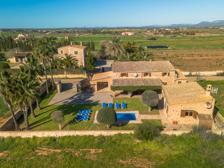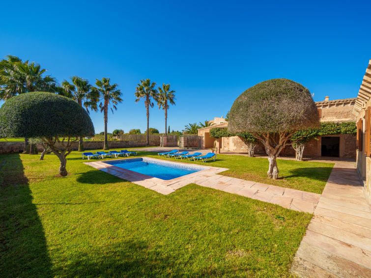 "Es Palmer des Trenc", 5-room farmhouse. Object suitable for 8 adults. Spacious and bright, simple and rustic furnishings: 1 double bedroom with 1 french bed (1 x 150 cm, length 200 cm), air conditioning and forced-air heating. Living room with kitchen corner, bar and satellite TV.