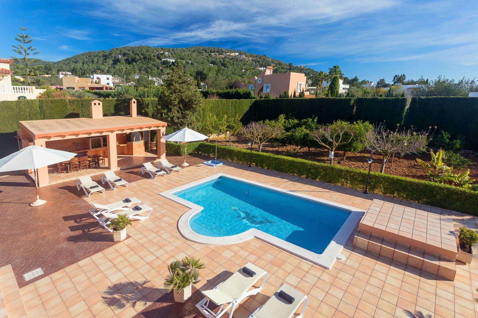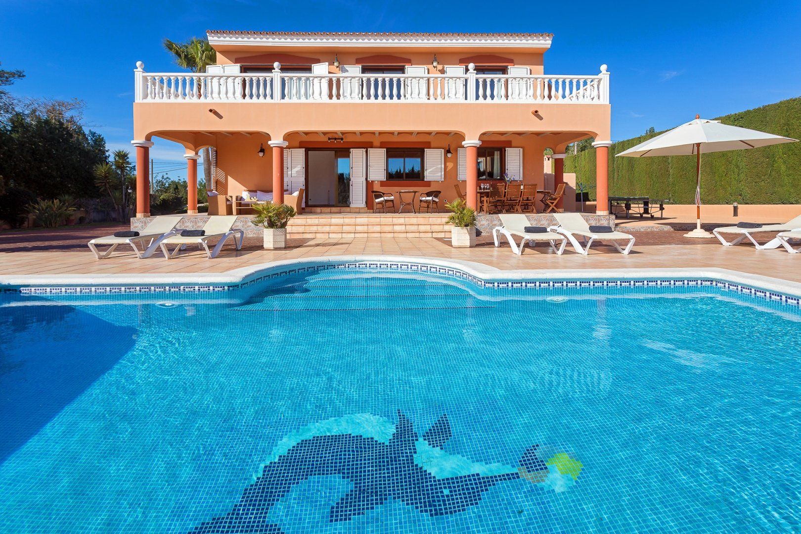 Finished in a rather fetching shade of salmon and overlooked by verdant hillsides, this villa may look rather impressive in the background of your photos, but, more importantly, it has everything you need for an unforgettable Ibizan getaway.