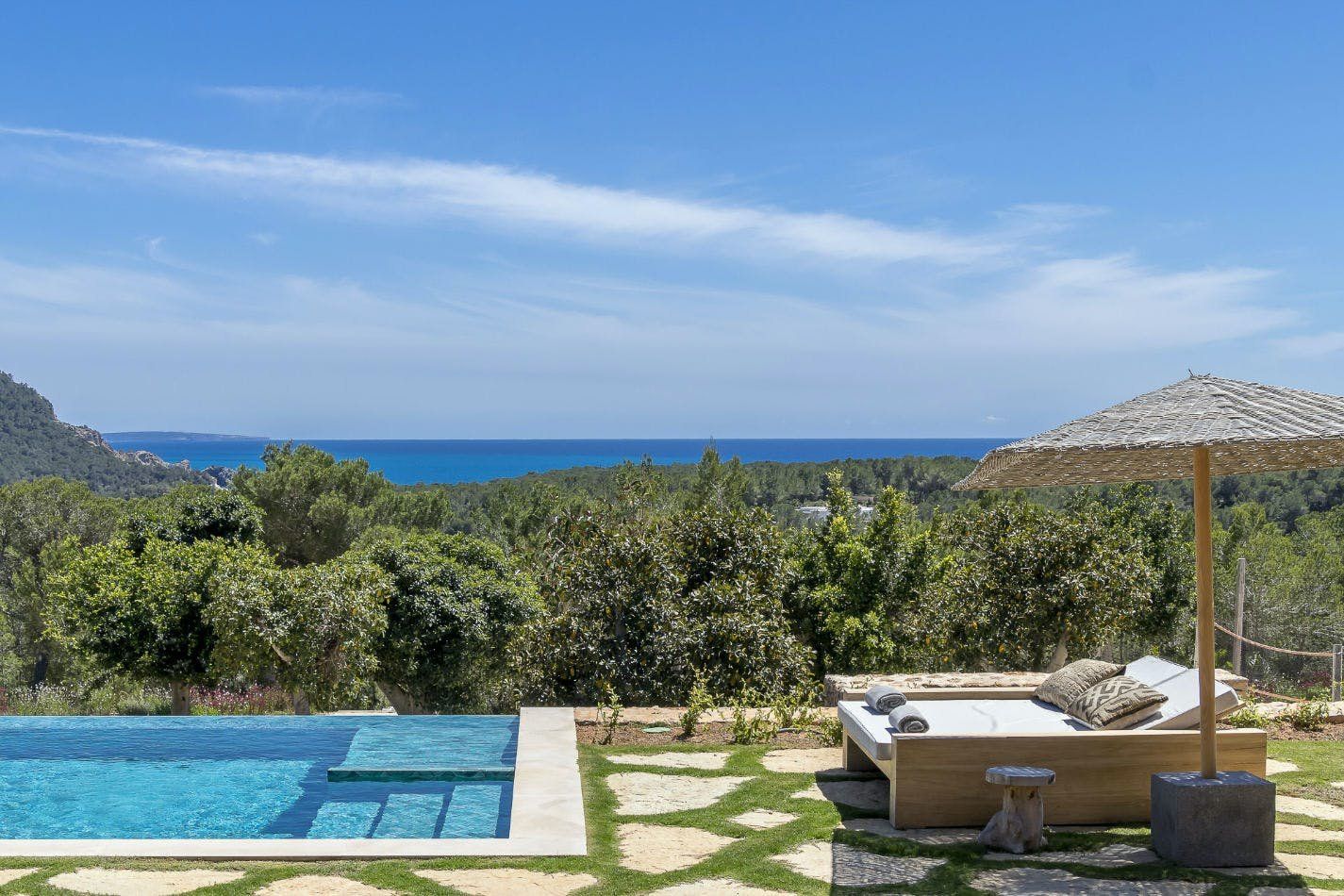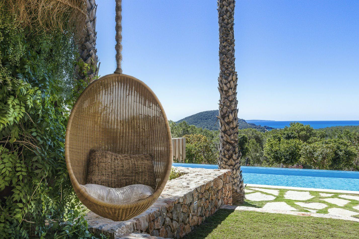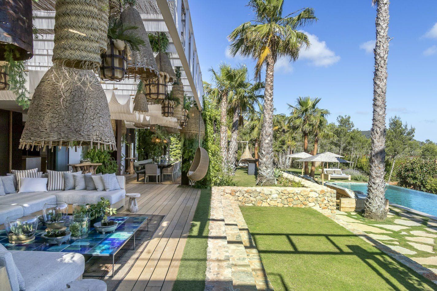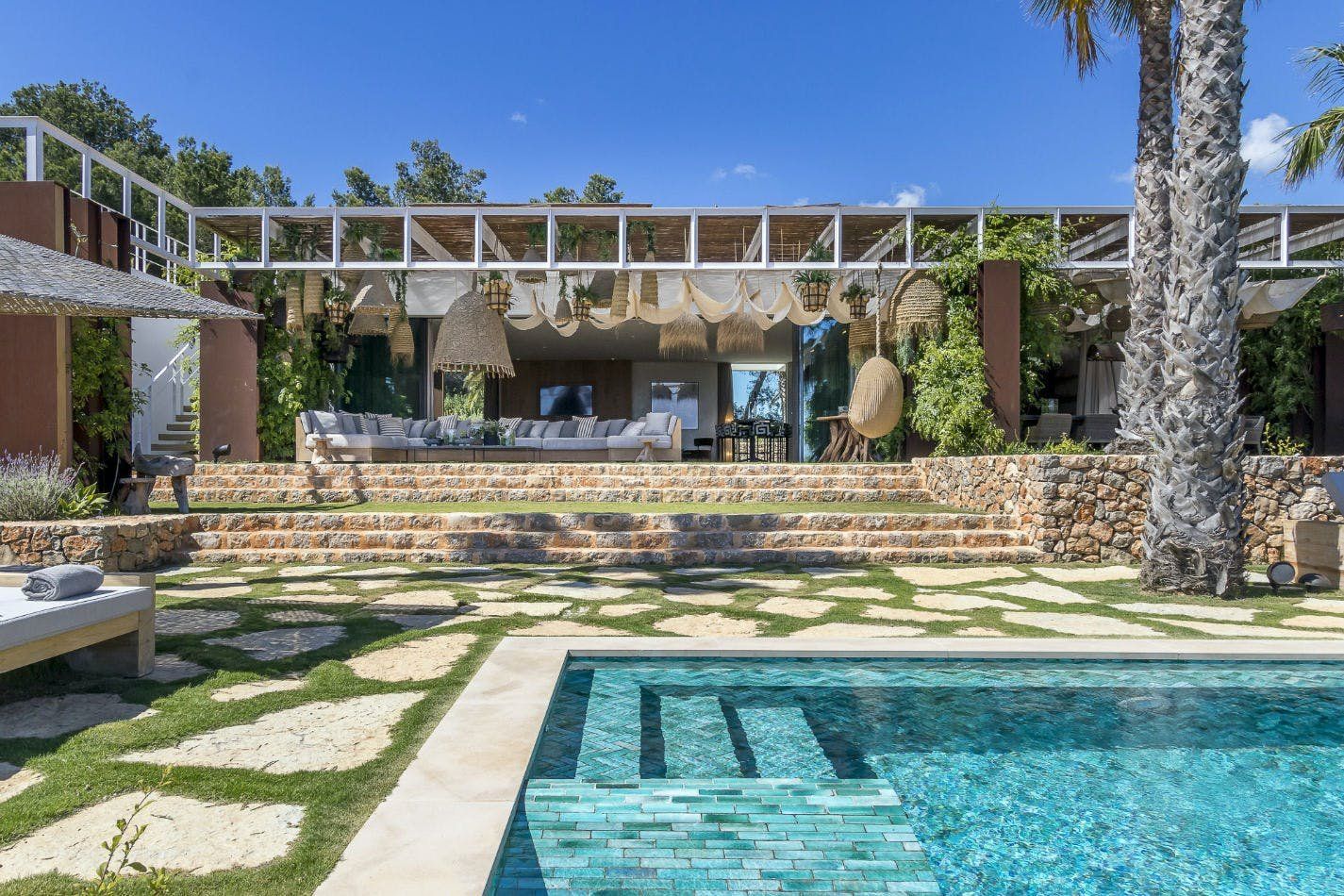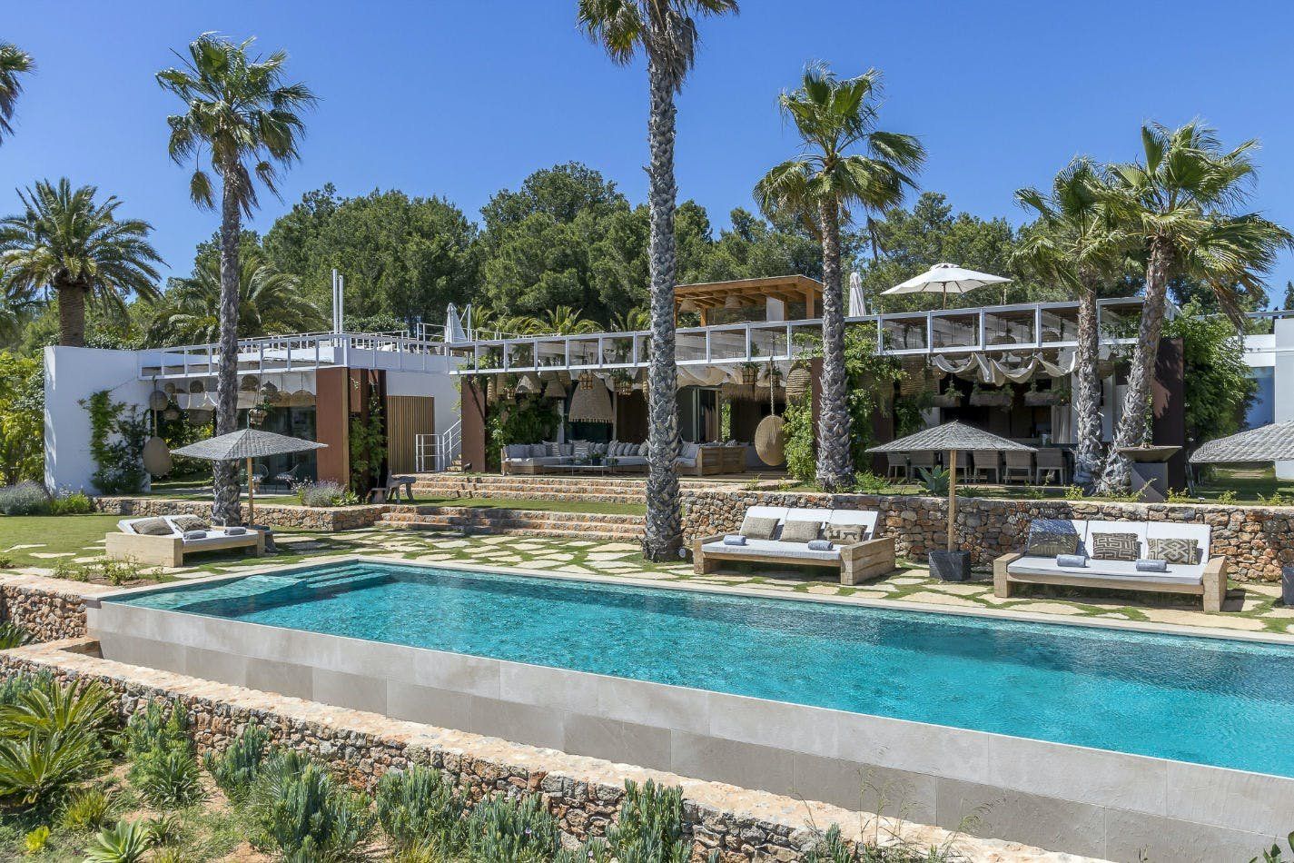 If we could pick one plot that best captures the spirit of Ibiza it would most likely be this stunning villa, found in the hills near Cala Jondal. Feeling more like a 5* hotel, this newly built home is luxury to its core. Find the island's chill side in the infinity pool, with views over the palm-strewn slopes and out towards the sea, or in one of the outdoor marble bathtubs, soaking underneath the stars. Renowned restaurants can be replicated in the chef's kitchen, with a dreamy, plant-filled dining room for big, joyful meals together. Things start to wind up a little in one of the spot's many bars, we suggest starting in the open-plan living room, with its folding doors and Balinese-inspired awnings, before padding across to the beach-style bar in the garden. Sundowners are best sipped at the roof terrace's bar – for the final picture-perfect moment, sit back in the plunge pool as the last rays dip behind Formentera. The Balearic's wild side is discovered down in the basement, where a fully soundproof nightclub area is on hand to dance the night away. Finish in true Ibiza style by greeting the sun on one of the long grey sofas on the terrace, before crashing out in a giant hanging chair or one of the beautiful bedrooms. When you wake up, it's time to do it all again.