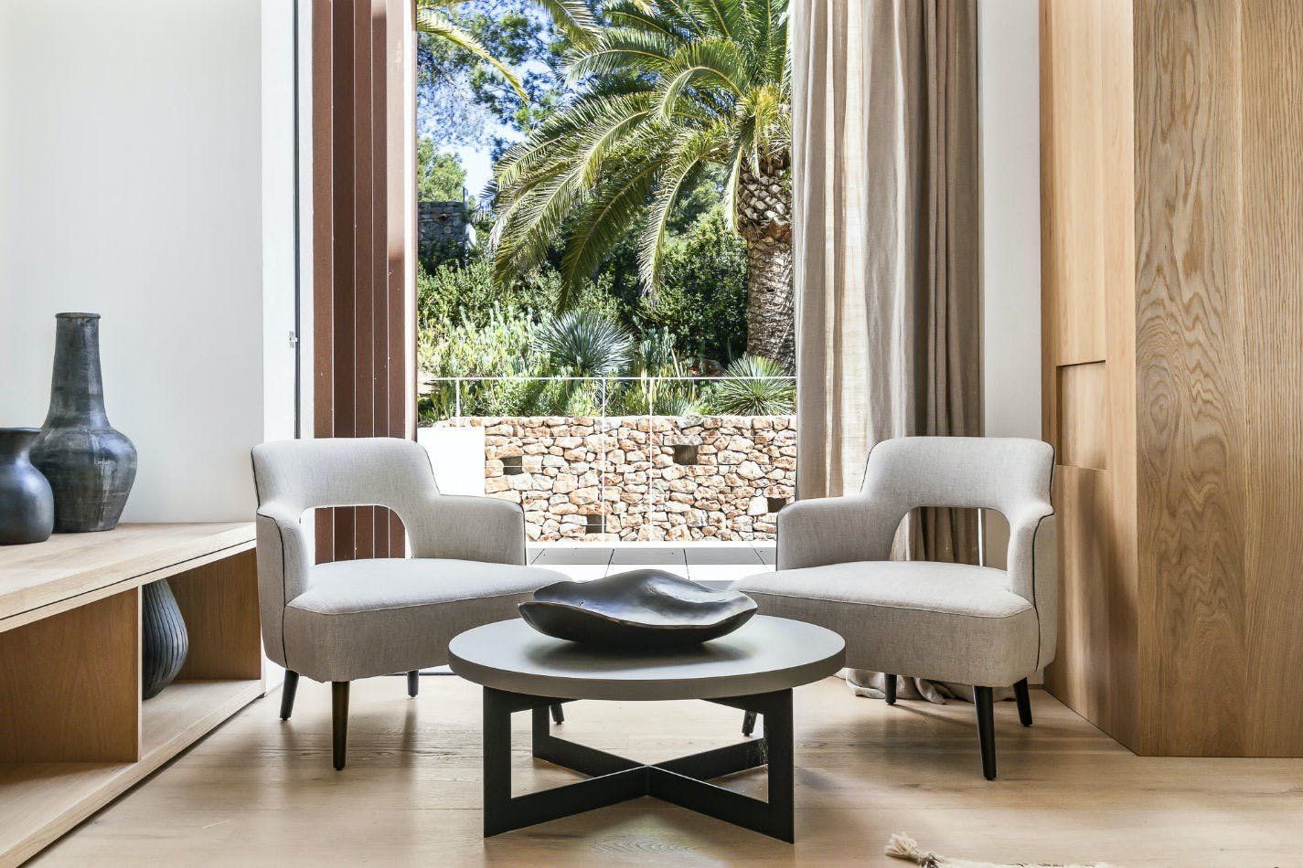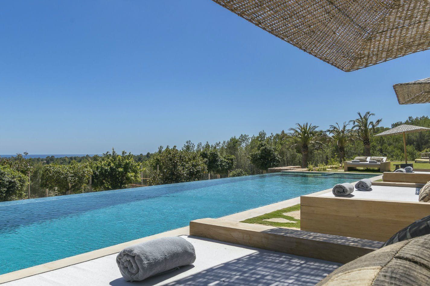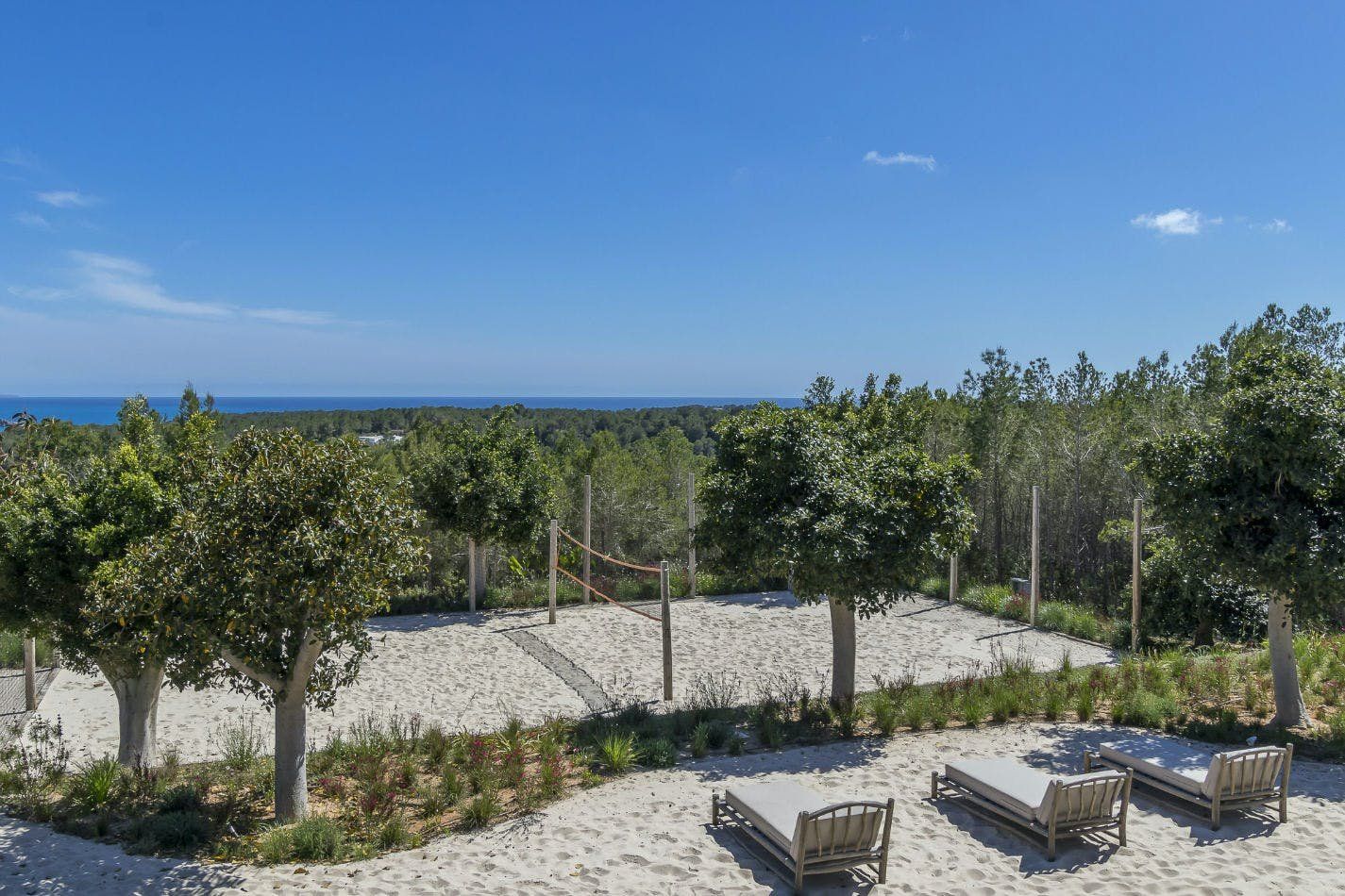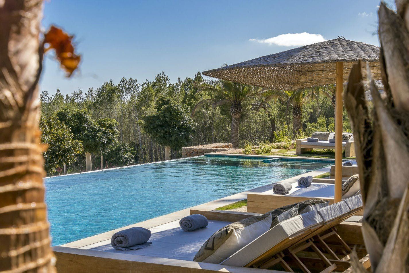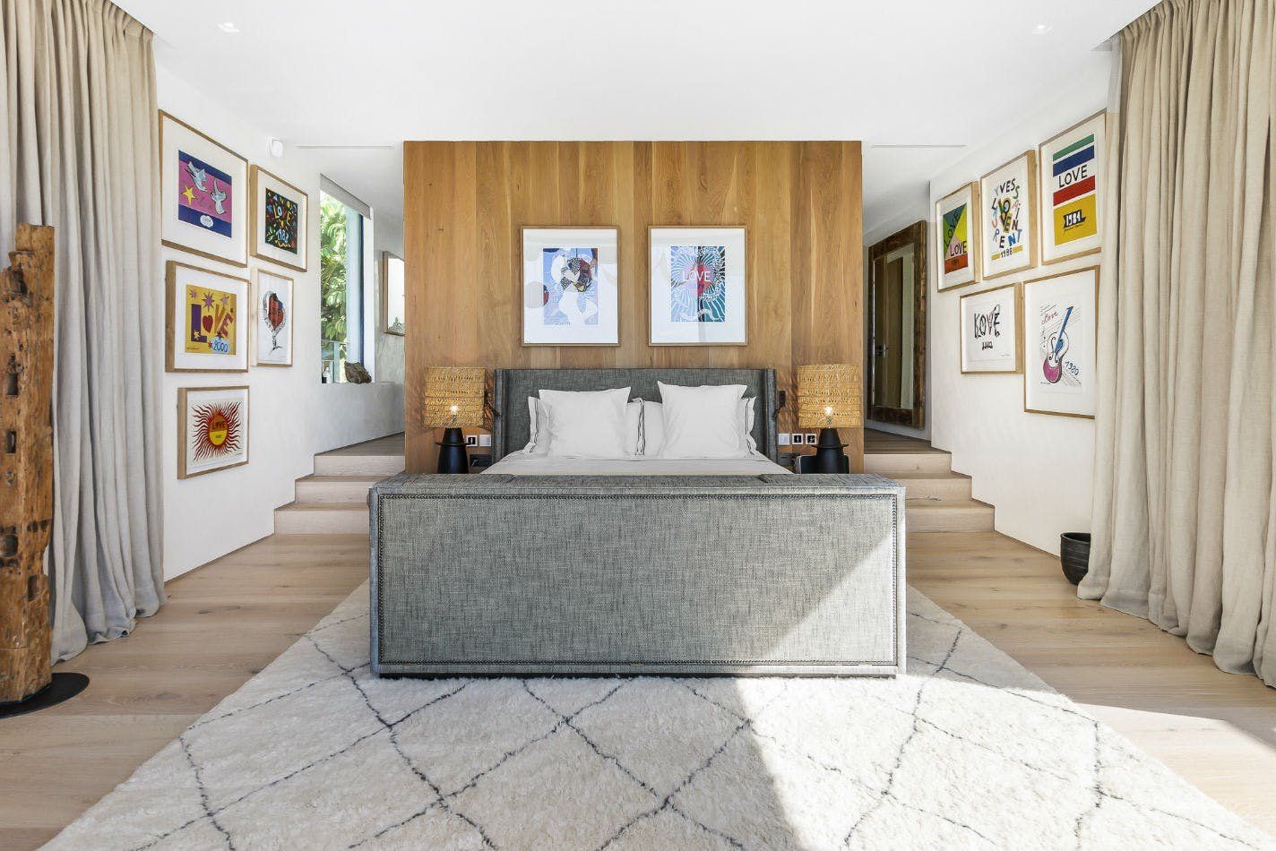 If we could pick one plot that best captures the spirit of Ibiza it would most likely be this stunning villa, found in the hills near Cala Jondal. Feeling more like a 5* hotel, this newly built home is luxury to its core. Find the island's chill side in the infinity pool, with views over the palm-strewn slopes and out towards the sea, or in one of the outdoor marble bathtubs, soaking underneath the stars. Renowned restaurants can be replicated in the chef's kitchen, with a dreamy, plant-filled dining room for big, joyful meals together. Things start to wind up a little in one of the spot's many bars, we suggest starting in the open-plan living room, with its folding doors and Balinese-inspired awnings, before padding across to the beach-style bar in the garden. Sundowners are best sipped at the roof terrace's bar – for the final picture-perfect moment, sit back in the plunge pool as the last rays dip behind Formentera. The Balearic's wild side is discovered down in the basement, where a fully soundproof nightclub area is on hand to dance the night away. Finish in true Ibiza style by greeting the sun on one of the long grey sofas on the terrace, before crashing out in a giant hanging chair or one of the beautiful bedrooms. When you wake up, it's time to do it all again.