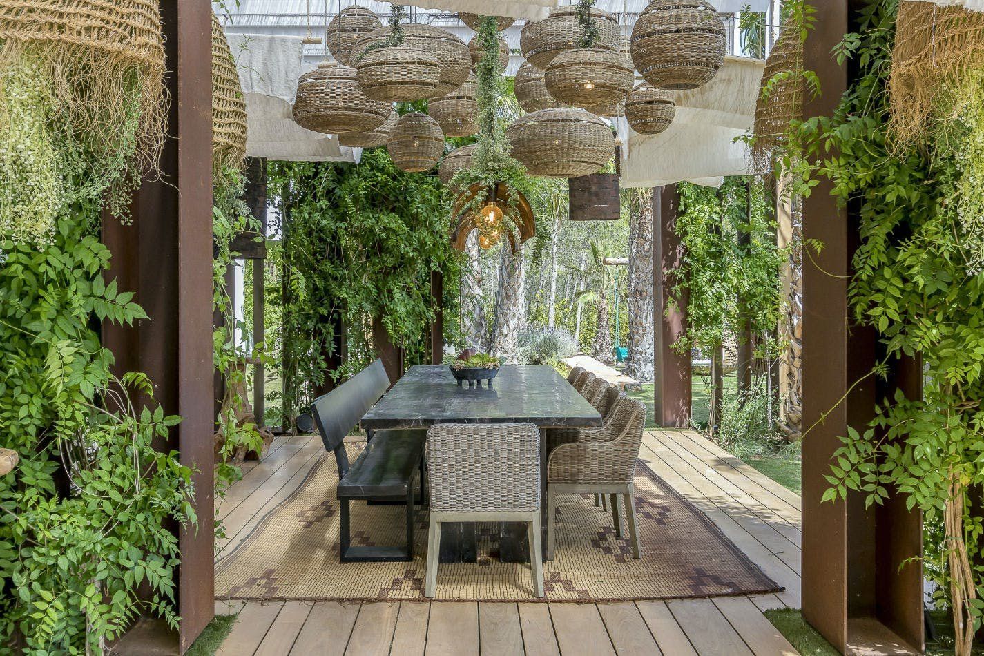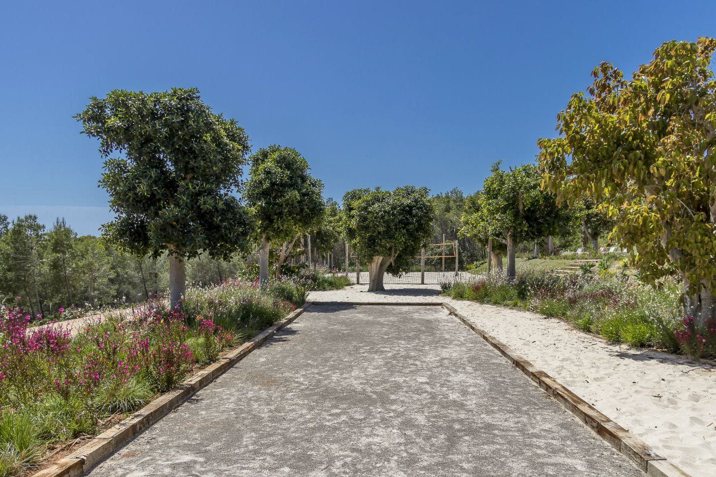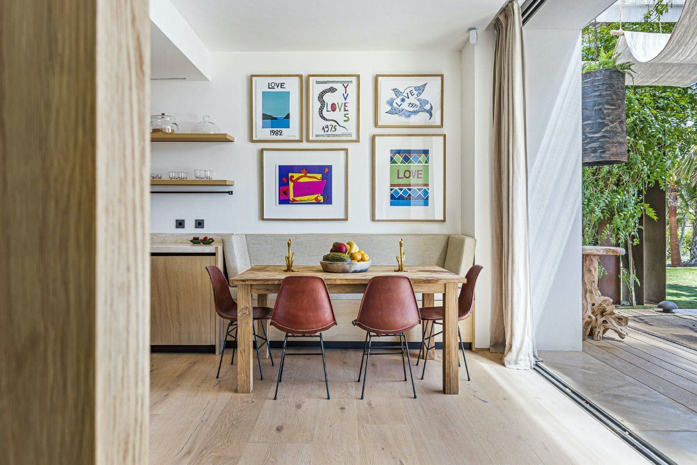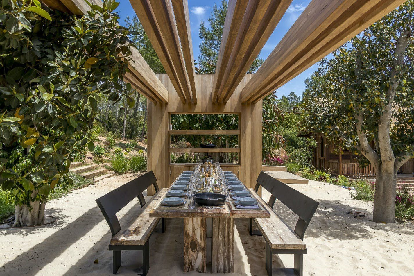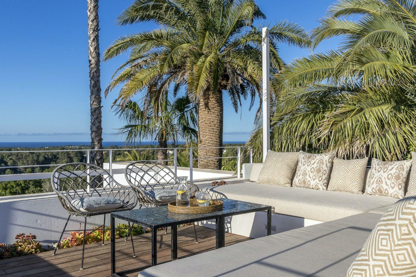 If we could pick one plot that best captures the spirit of Ibiza it would most likely be this stunning villa, found in the hills near Cala Jondal. Feeling more like a 5* hotel, this newly built home is luxury to its core. Find the island's chill side in the infinity pool, with views over the palm-strewn slopes and out towards the sea, or in one of the outdoor marble bathtubs, soaking underneath the stars. Renowned restaurants can be replicated in the chef's kitchen, with a dreamy, plant-filled dining room for big, joyful meals together. Things start to wind up a little in one of the spot's many bars, we suggest starting in the open-plan living room, with its folding doors and Balinese-inspired awnings, before padding across to the beach-style bar in the garden. Sundowners are best sipped at the roof terrace's bar – for the final picture-perfect moment, sit back in the plunge pool as the last rays dip behind Formentera. The Balearic's wild side is discovered down in the basement, where a fully soundproof nightclub area is on hand to dance the night away. Finish in true Ibiza style by greeting the sun on one of the long grey sofas on the terrace, before crashing out in a giant hanging chair or one of the beautiful bedrooms. When you wake up, it's time to do it all again.