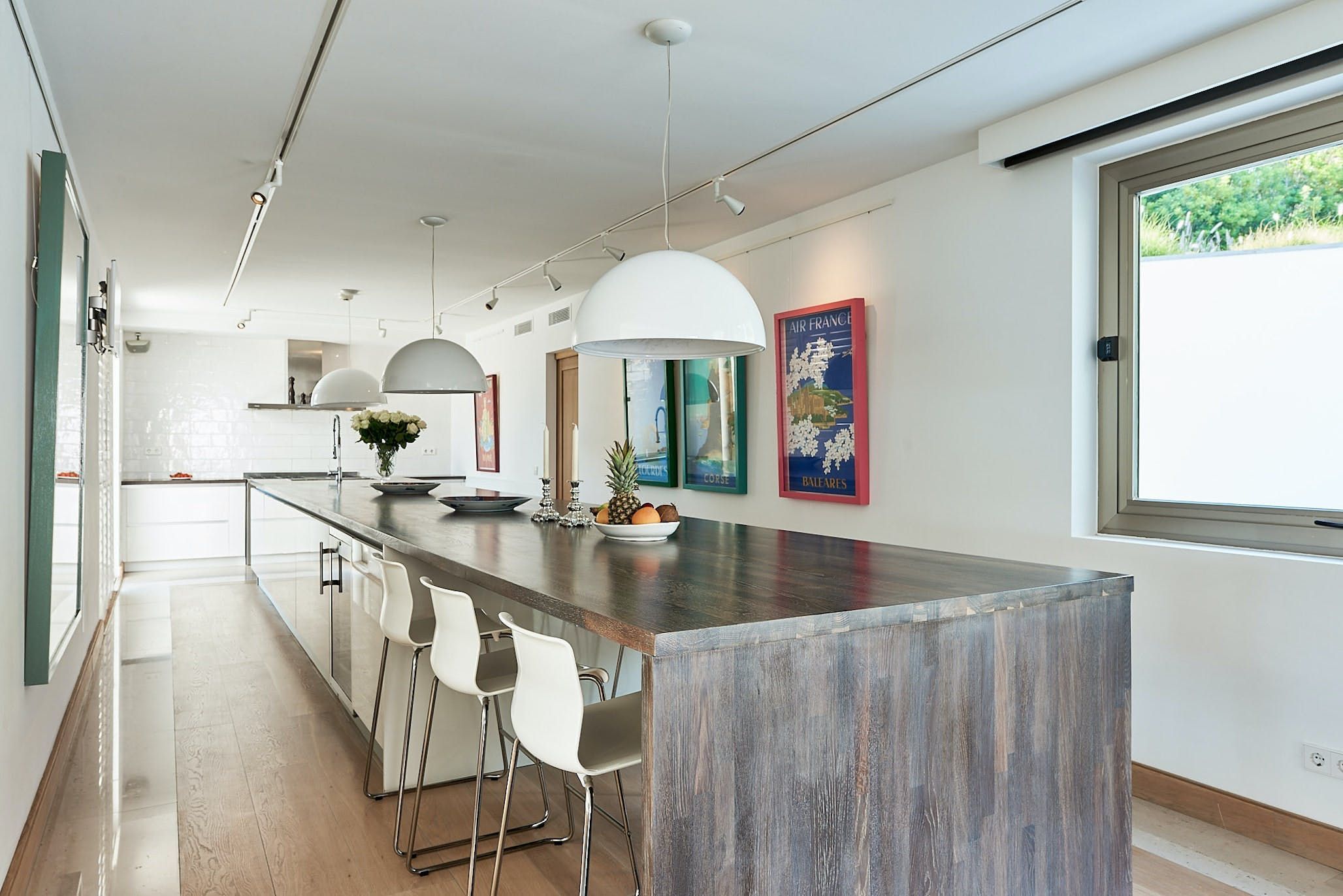 Peace and tranquillity spring to mind in this restful and secluded villa. Step into privacy and peace as you have everything you need to enjoy the wide-stretched views of Salinas to Porroig. The private gardens are a sight to behold from cosy by-the-fire moments on the sun terrace to feeling like you're swimming for miles in the infinity pool. A moment's bliss can be found around every hidden corner, as there are waterfalls and glistening, reflective decor to lead you to the next hidden gem.