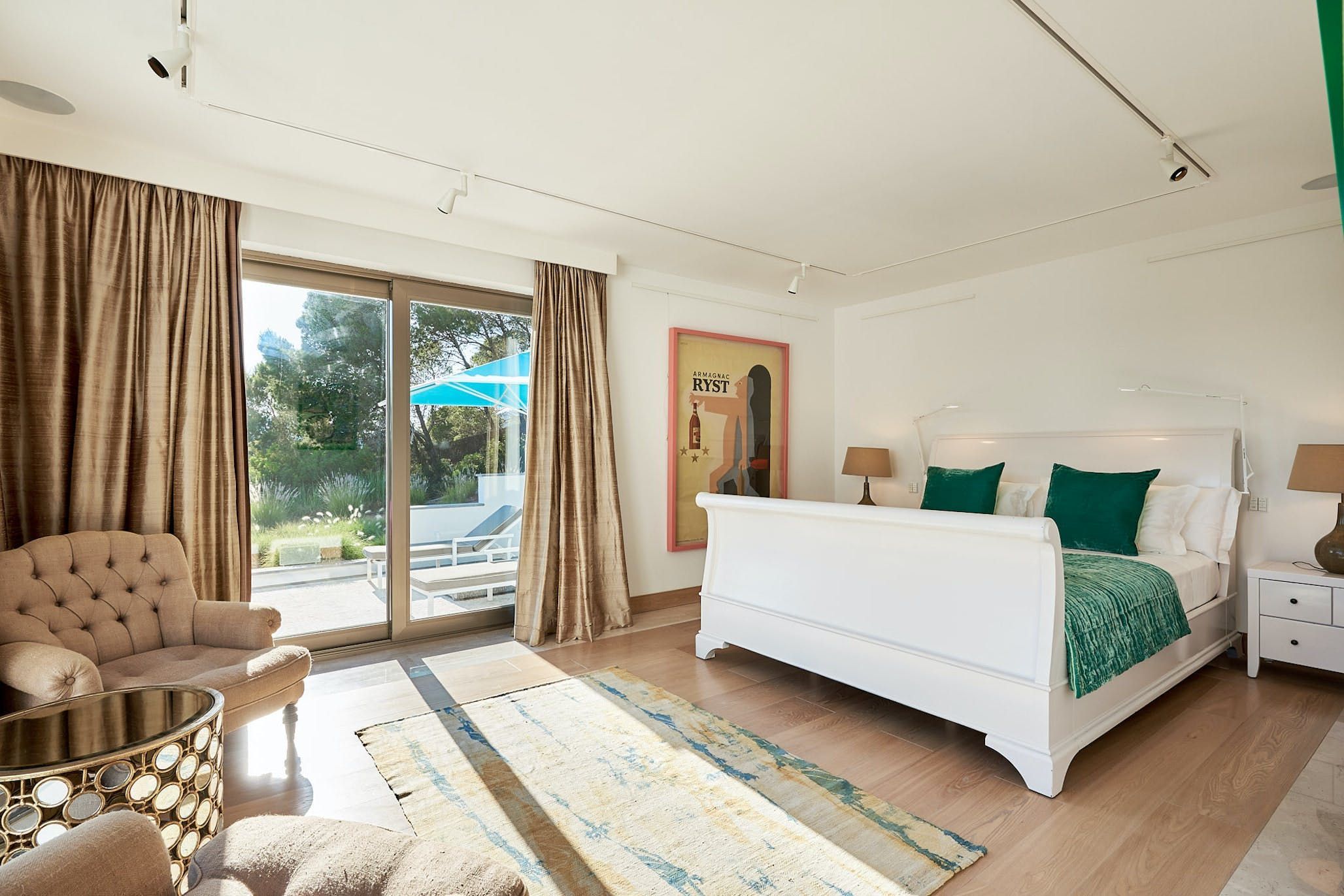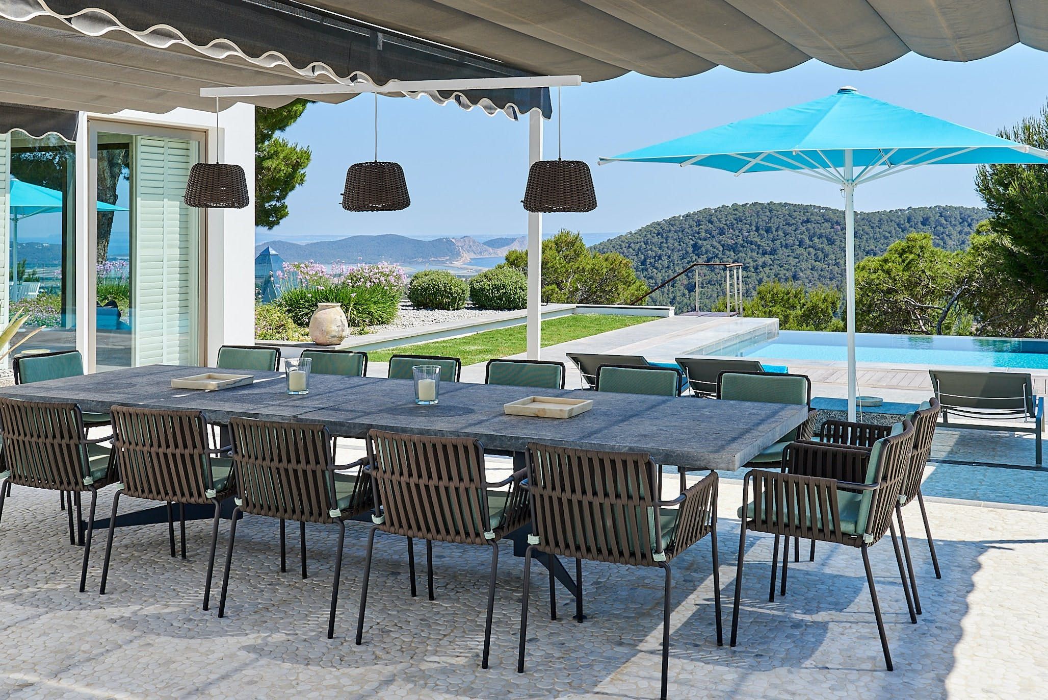 Escape to your private oasis as each bedroom has its own en-suite, giving you much-needed space after a family fun day by the pool. Even though the villa provides you with every creature comfort you'll need for a restful stay, there are endless places you'll want to discover right on your doorstep. From the UNESCO-awarded capital of Ibiza to Sa Caleta with its terracotta-coloured cliffs. On your return from a day of exploration, gather around the beautiful gas fireplaces and dine outside altogether. If you're feeling active and want some routine in your stay, make use of your own private fitness centre to catch a workout before the holiday is over.