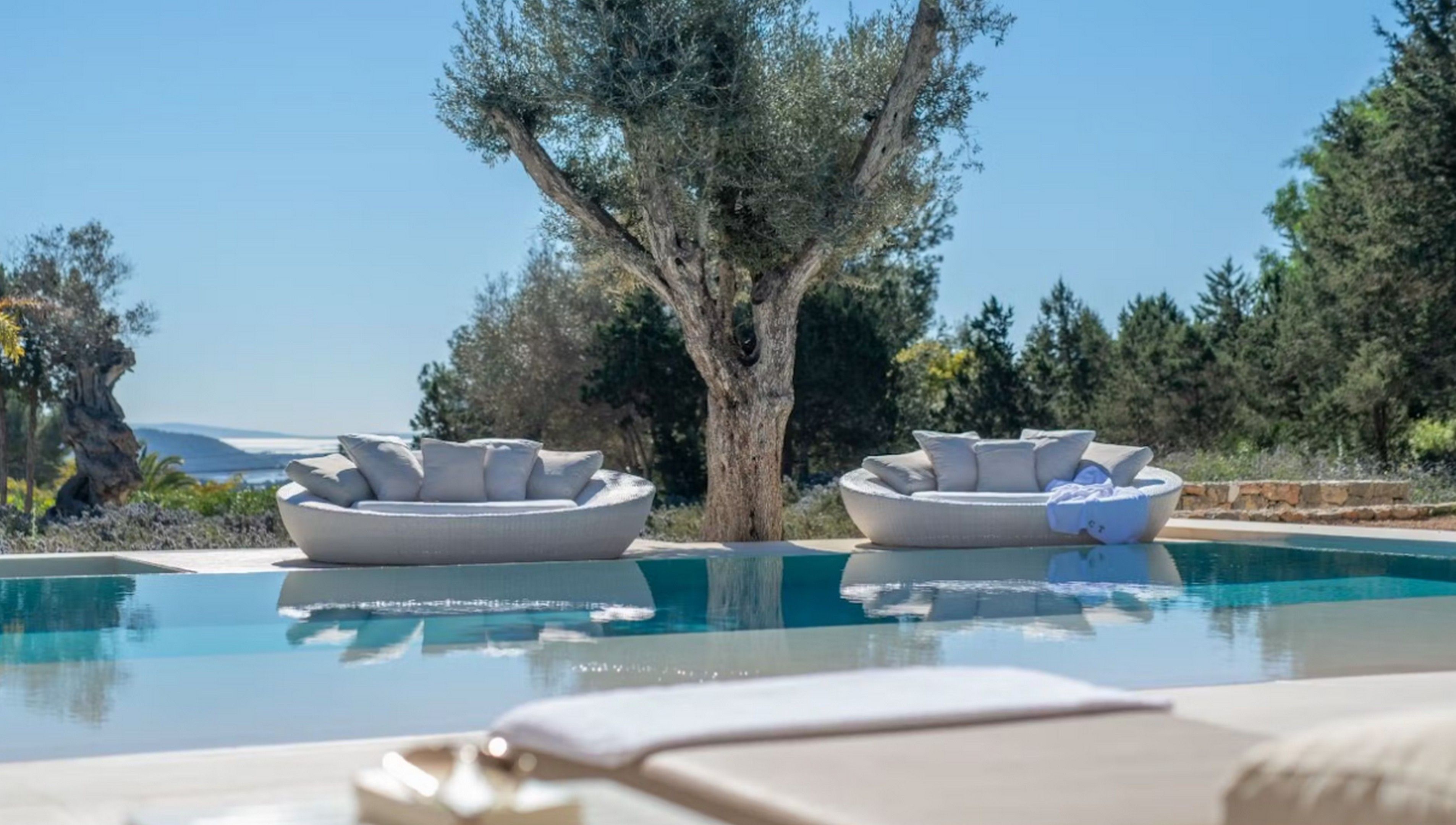 With stunning views over the Balearic Sea, multiple swimming pools and plenty of chill-out spaces, this villa is a true gem in Ibiza. Inside, this home offers modern furnishings and stylish decor, and guests can expect to rest in comfort in one of the five bedrooms, each with an ensuite bathroom and a private terrace. Outside, it’s a celebration of relaxation – there’s a summer pool and a warmer winter pool, plenty of space to dine alfresco, and multiple outdoor sofas to unwind in the shade, in the sun, or under the stars. It’s well-placed too – Ibiza Town is a mere fifteen-minute drive away.