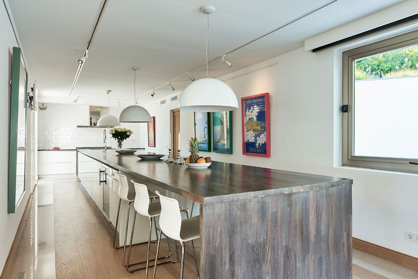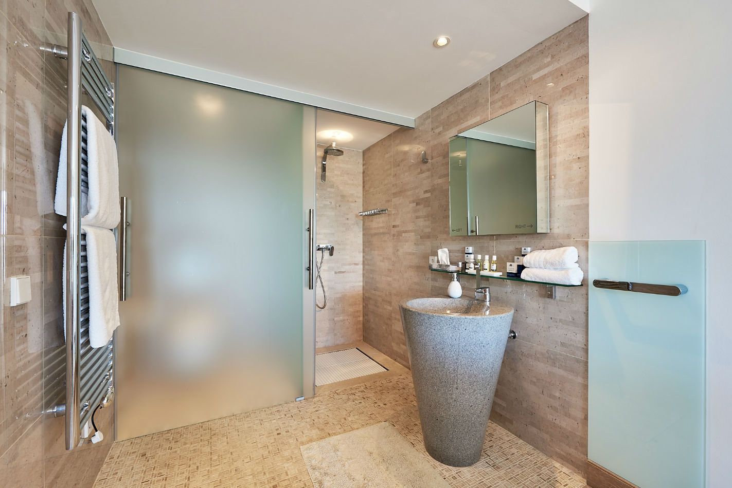 You’ll find this hilltop haven just outside Ibiza Town and a short drive from the airport. This pristine villa boasts panoramic views towards the sea and of the surrounding countryside. Spread out over several buildings and terraces, this place is ideal for larger groups who still like a little privacy. That’s not to say there isn’t plenty of space to come together in – this home is designed with open-plan living in mind, and there are more than enough chill-out areas to host the whole crew, from the grand living round around the stone fireplace, to the long dining table set for 16, and the rattan chairs under parasols outside. Surrounding the infinity pool you’ll find enough sun loungers to keep everybody happy, all set up to make the most of that breathtaking view. There are terraces on all levels, with lush lawns, sun-bleached wood, and a long line of granite daybeds under the shade of an olive tree. Inside, and this home channels Miami cool with a Mediterranean twist. Soft, luxurious textiles sit side by side with original art, mid-century modern inspired furniture, and just a dash of boho chic. That reading nook might be the best we’ve seen – a platform of cushions tucked into the corner with bookshelves above. The sleek kitchen is enough to convince even the biggest takeout fan to take up cooking, while each of the bedrooms radiates a chic, serene elegance and sea views – some even come with direct terrace access.