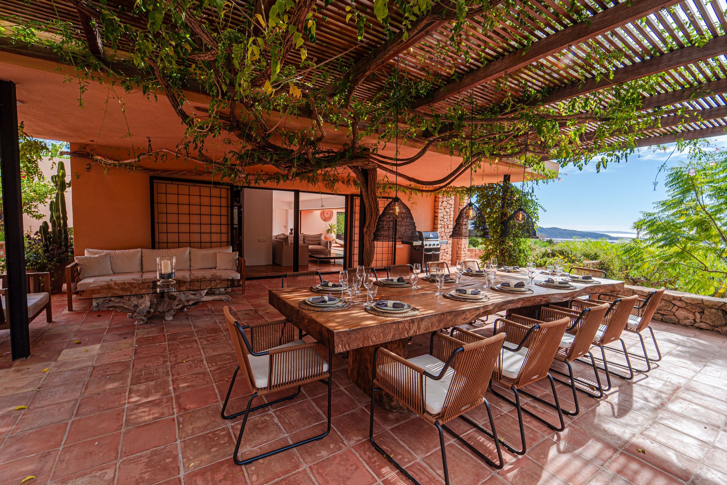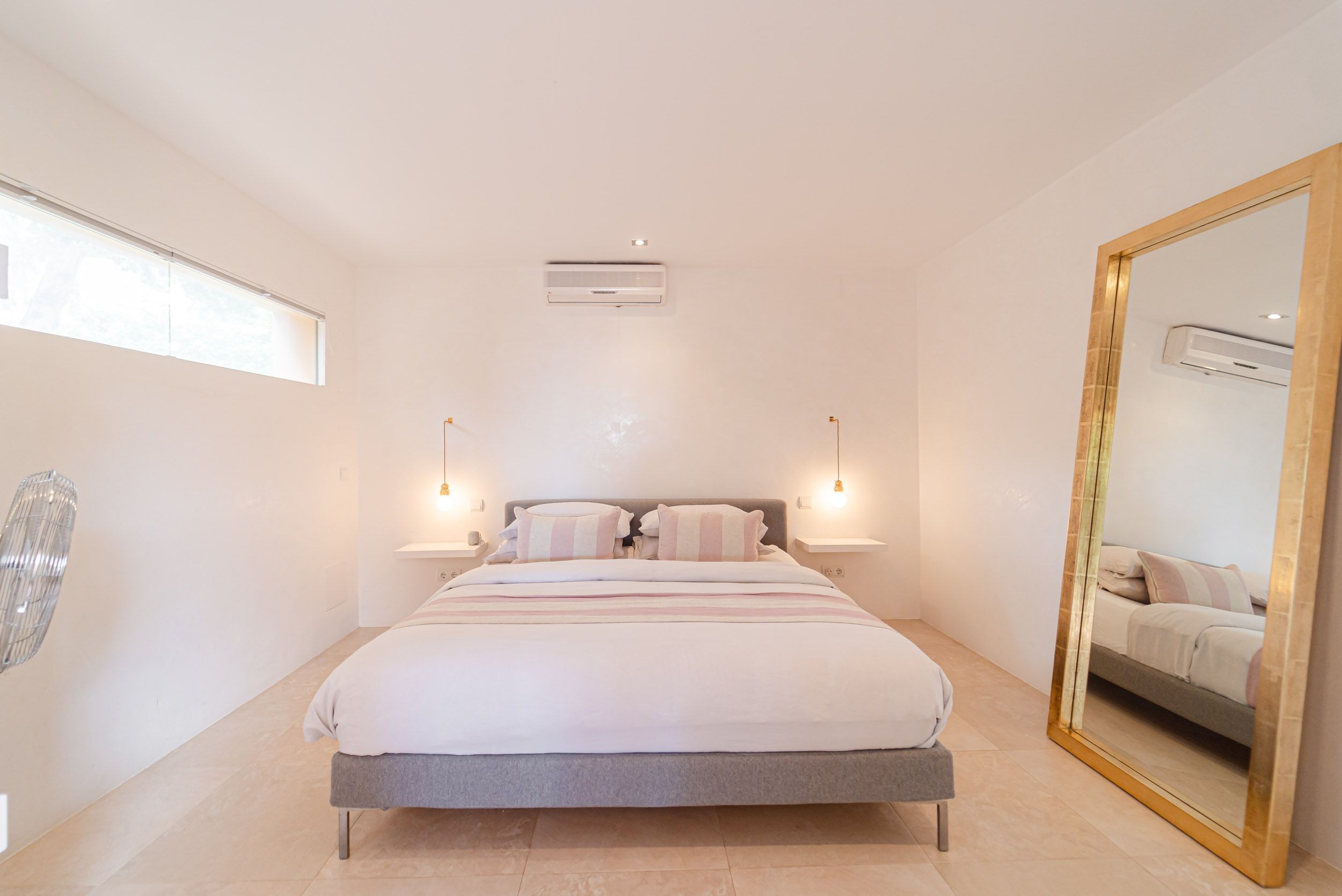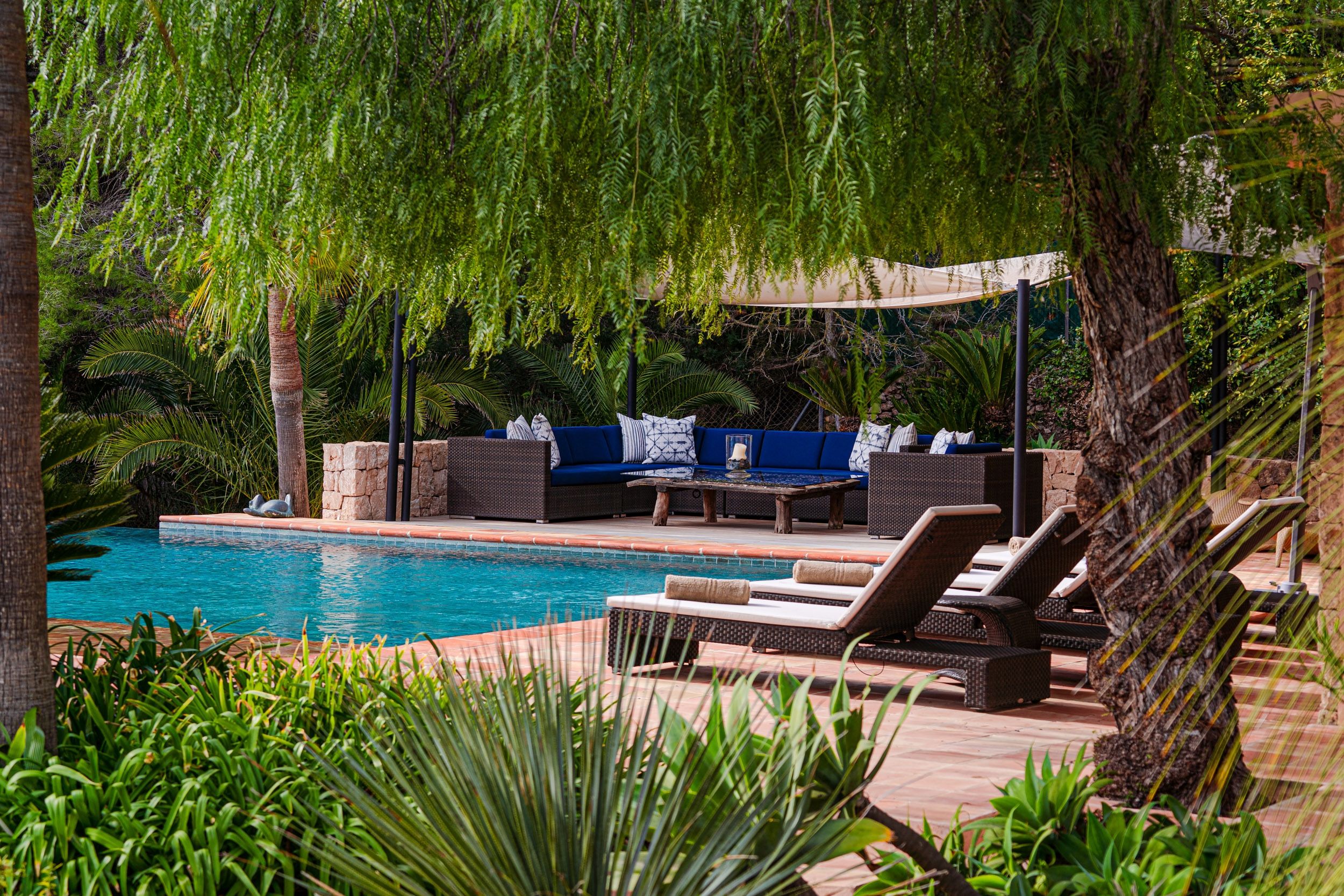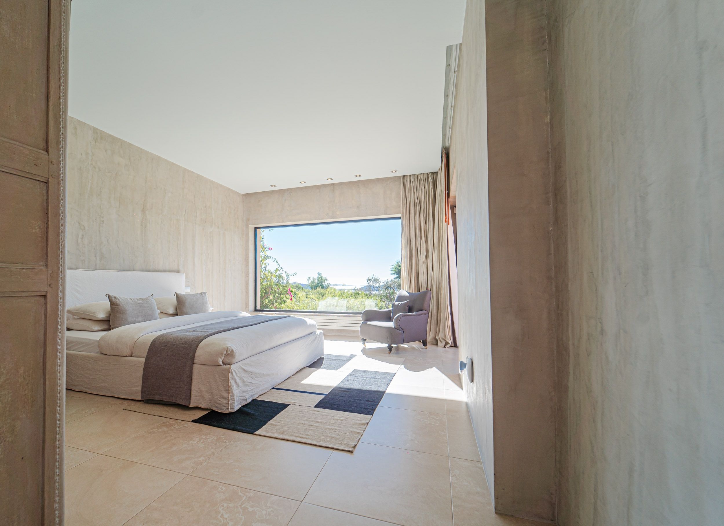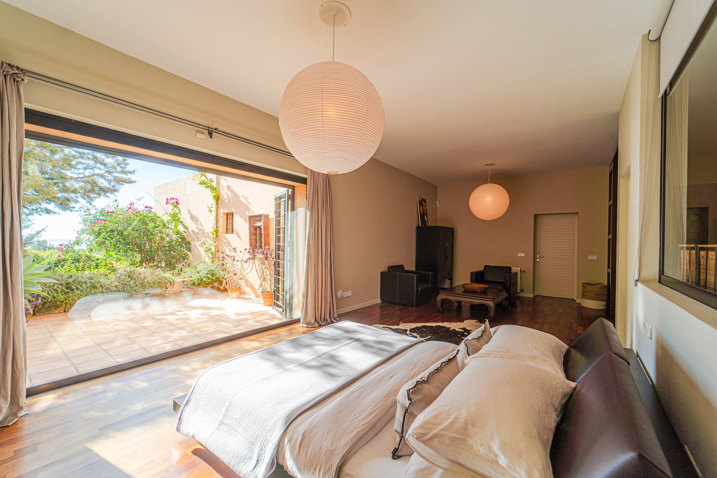 Overlooking the salt flats of Las Salinas, it's no surprise that this villa caught our eye. We think the best views are from the infinity pool, though you can also bask in the panoramas while relaxing in the sunken lounge. The home is built around a courtyard and various terraces, so you'll find plenty of opportunities to soak up the sunshine. There's also plenty of space – the six en-suite bedrooms are spread across the main house, garden suite, and courtyard suite. Keen to explore? Both Ibiza Town and the beach are a short drive away.