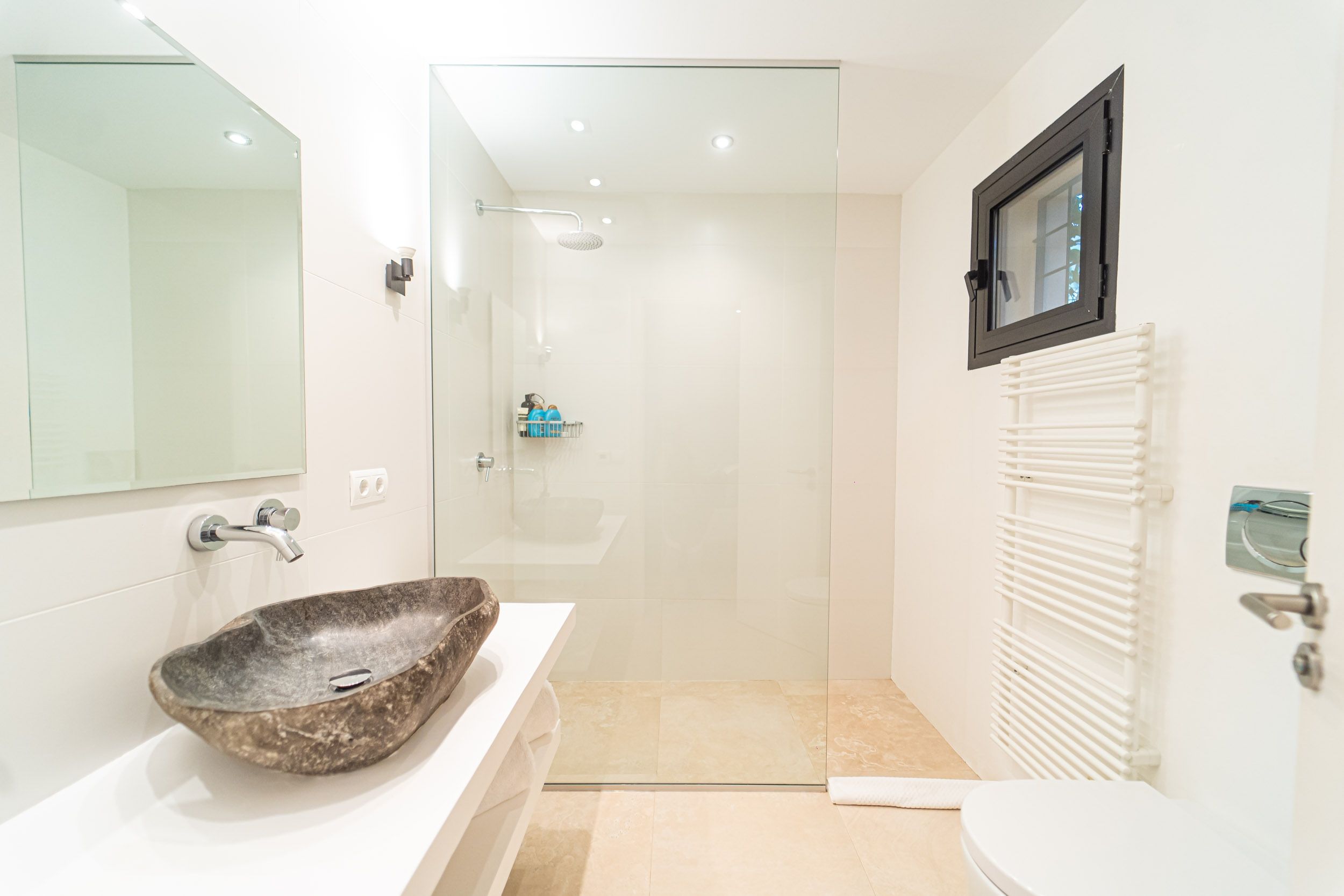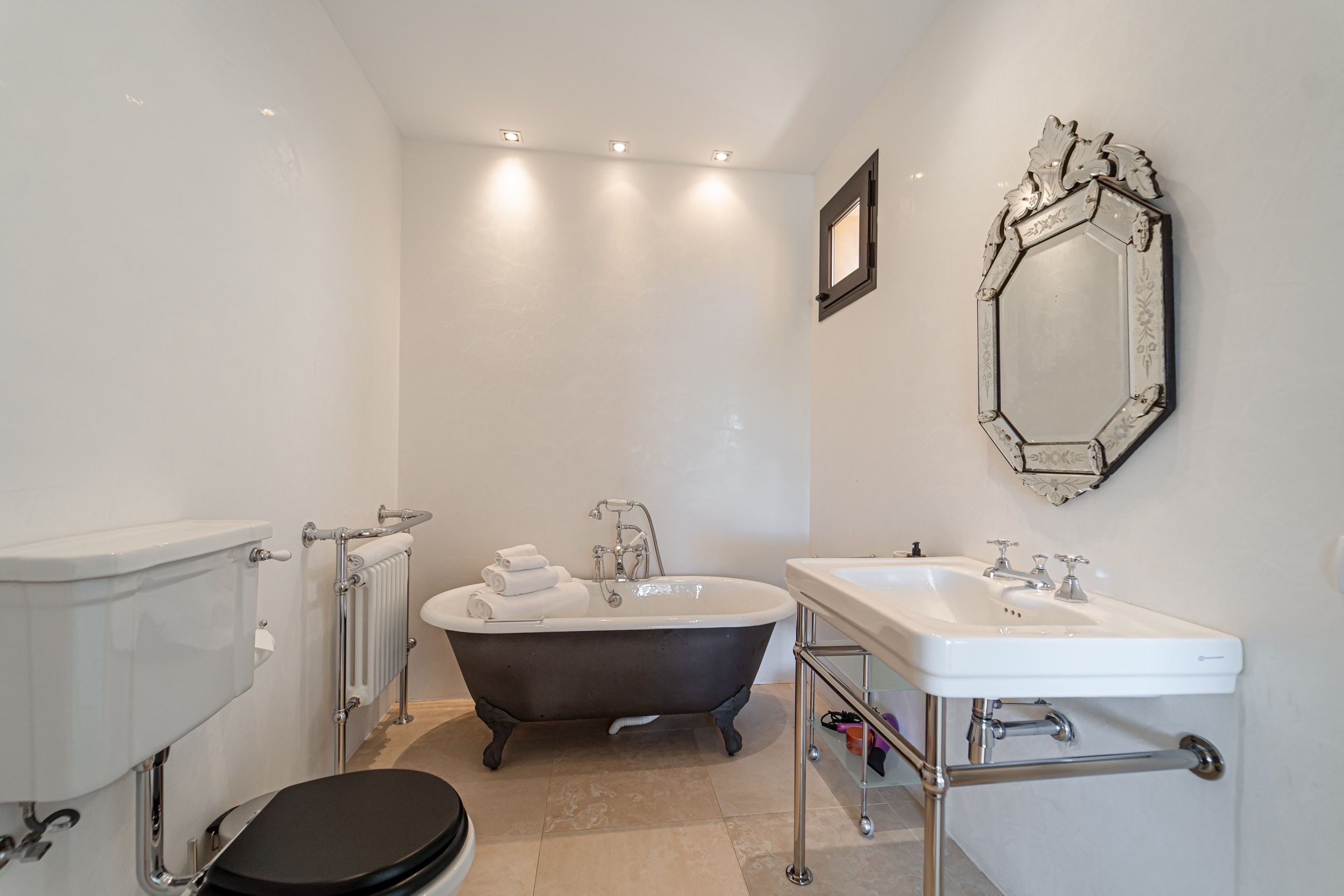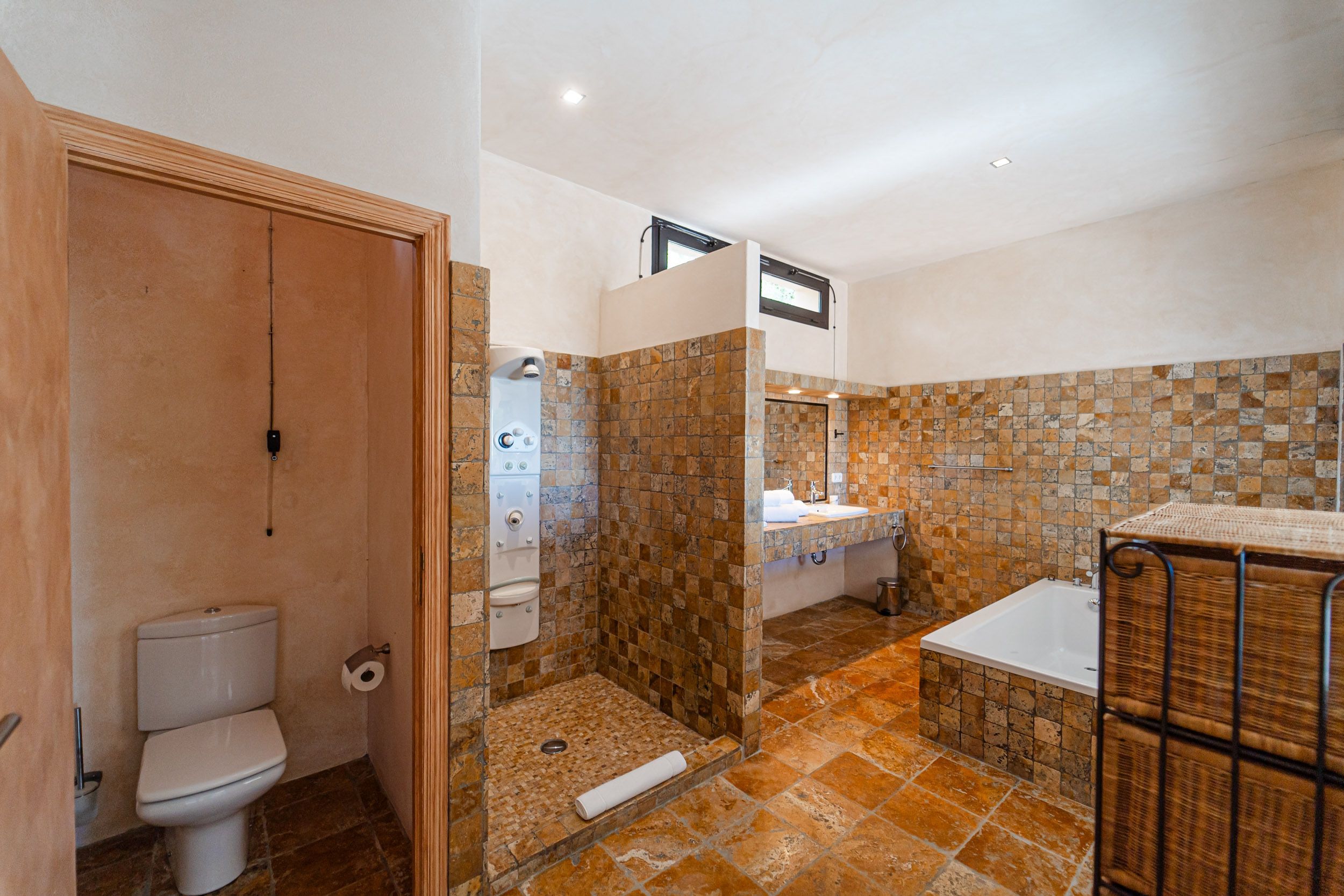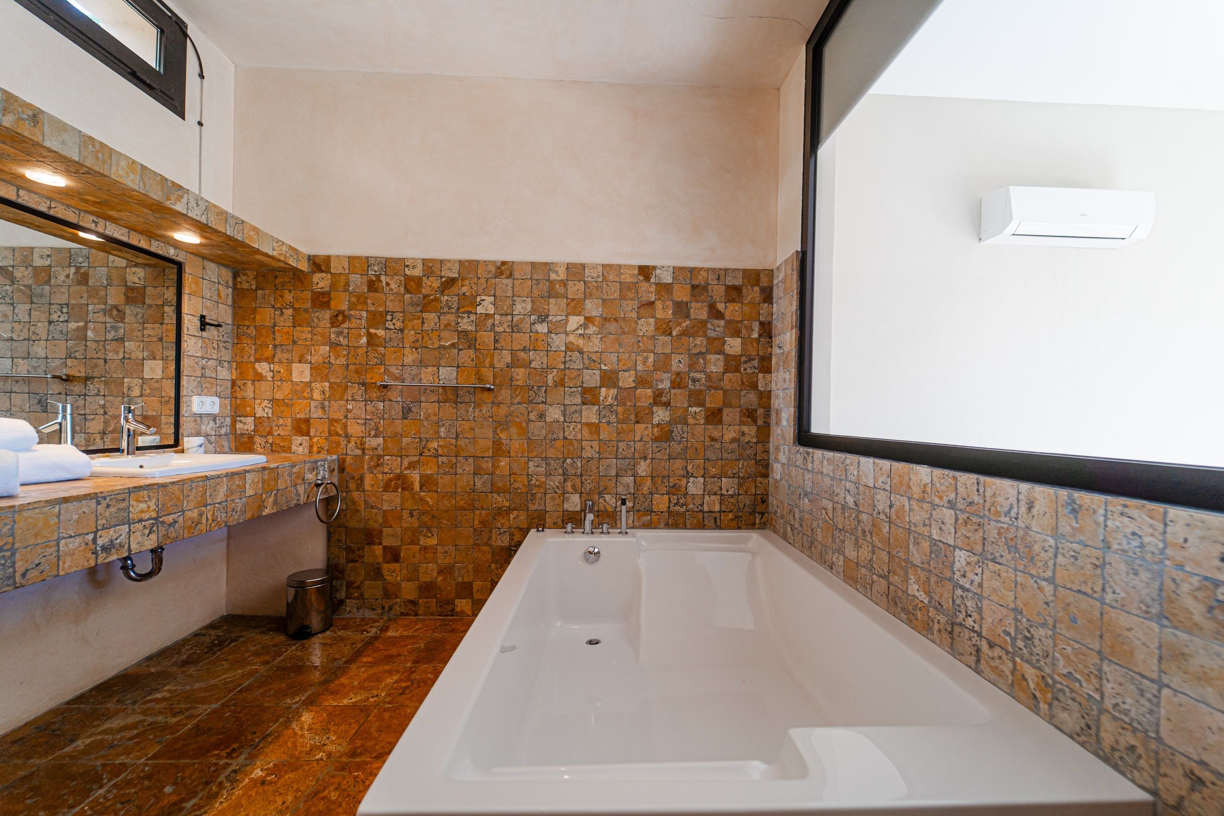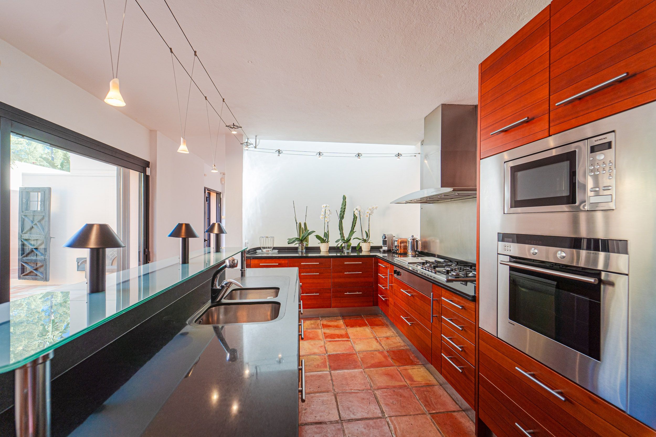 Overlooking the salt flats of Las Salinas, it's no surprise that this villa caught our eye. We think the best views are from the infinity pool, though you can also bask in the panoramas while relaxing in the sunken lounge. The home is built around a courtyard and various terraces, so you'll find plenty of opportunities to soak up the sunshine. There's also plenty of space – the six en-suite bedrooms are spread across the main house, garden suite, and courtyard suite. Keen to explore? Both Ibiza Town and the beach are a short drive away.